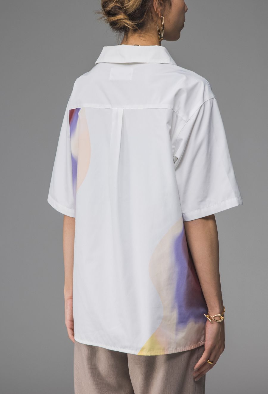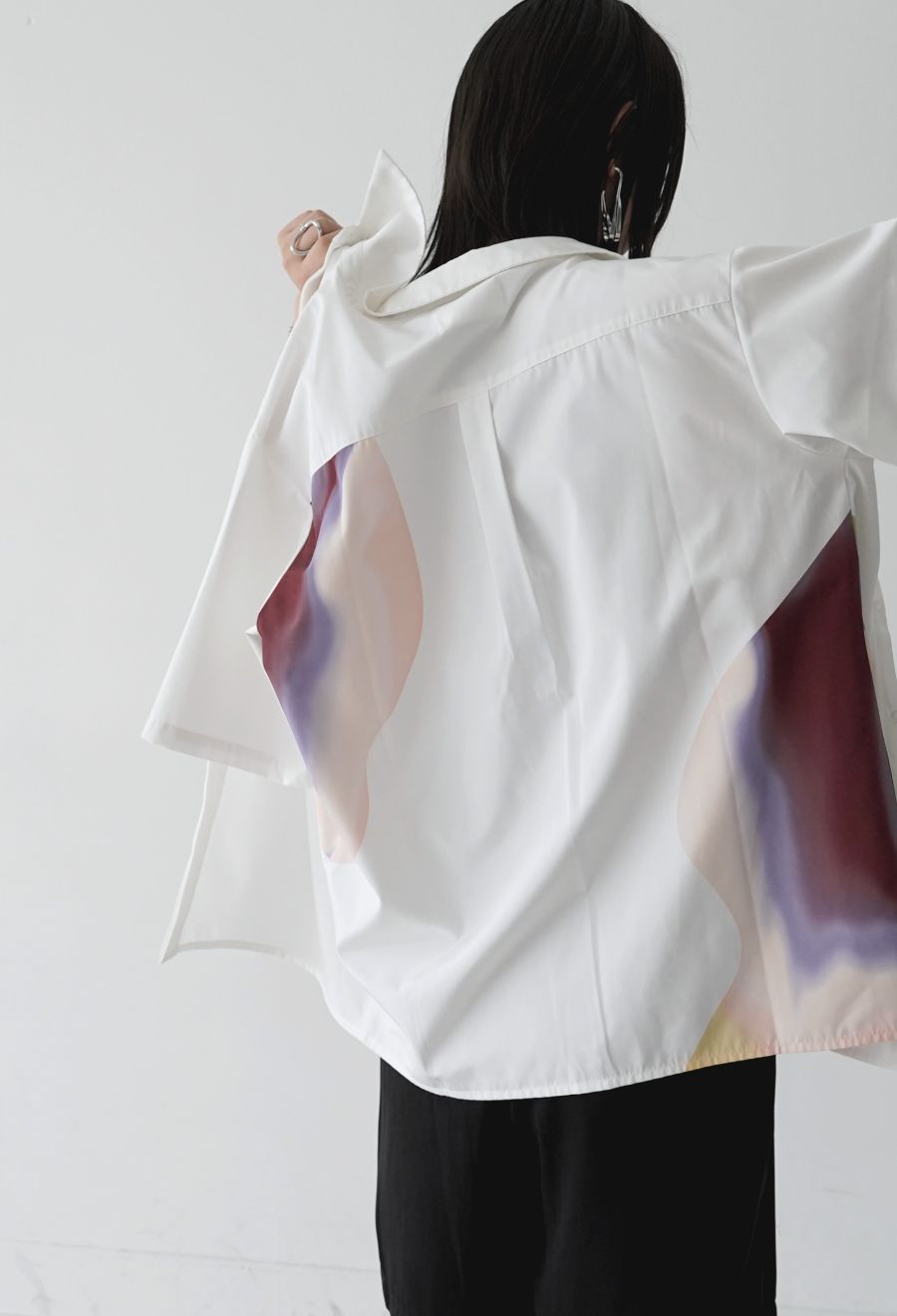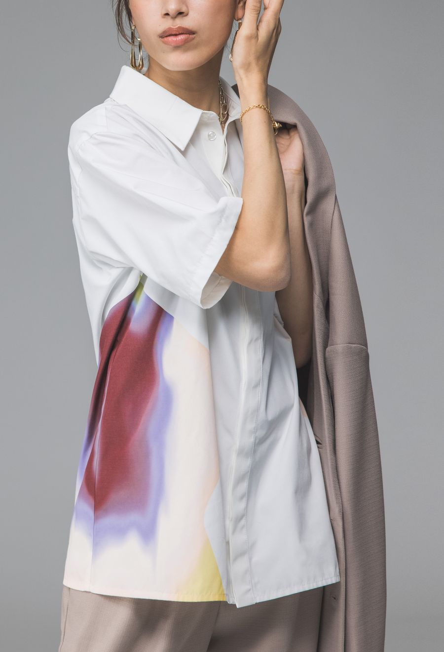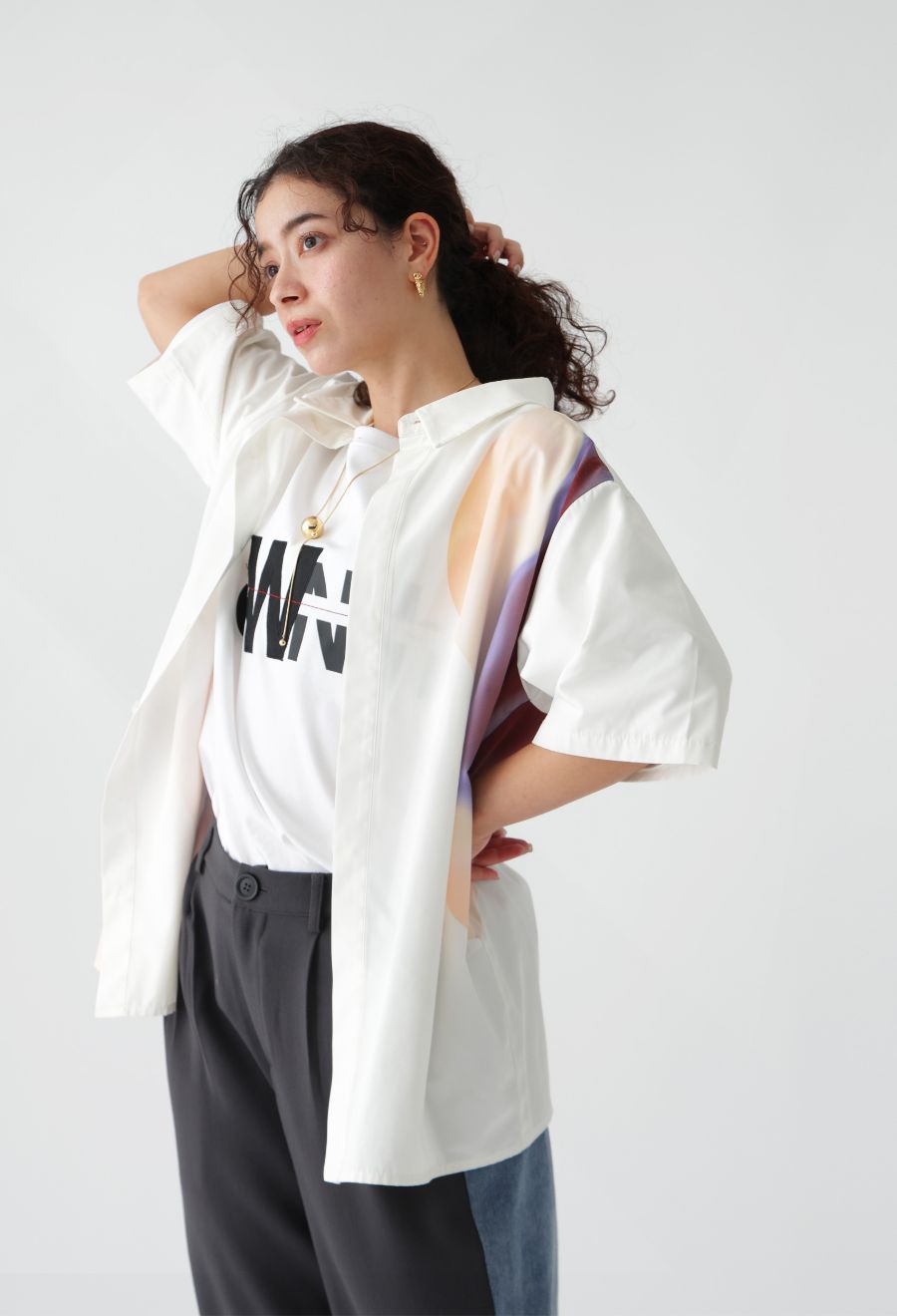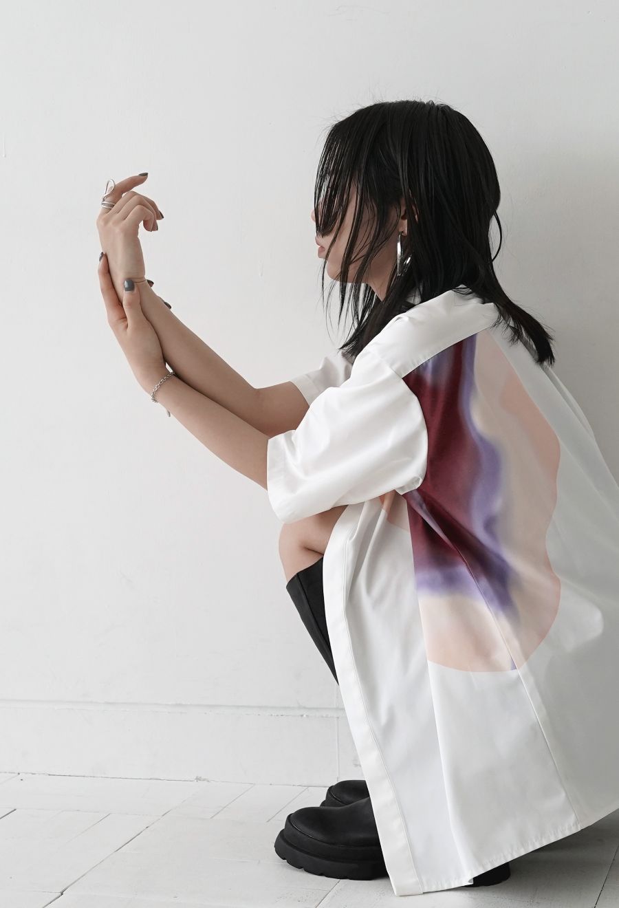 流れるようなウェーブ柄が視線を惹きつける、感度高めなオーバーサイズのレギュラーカラーシャツです。