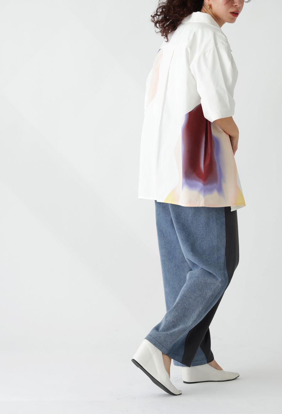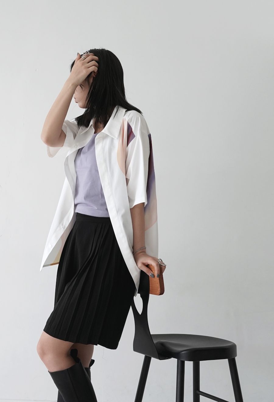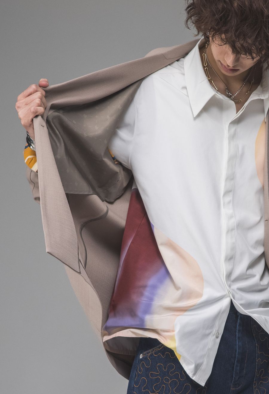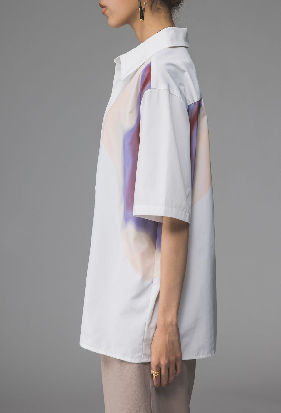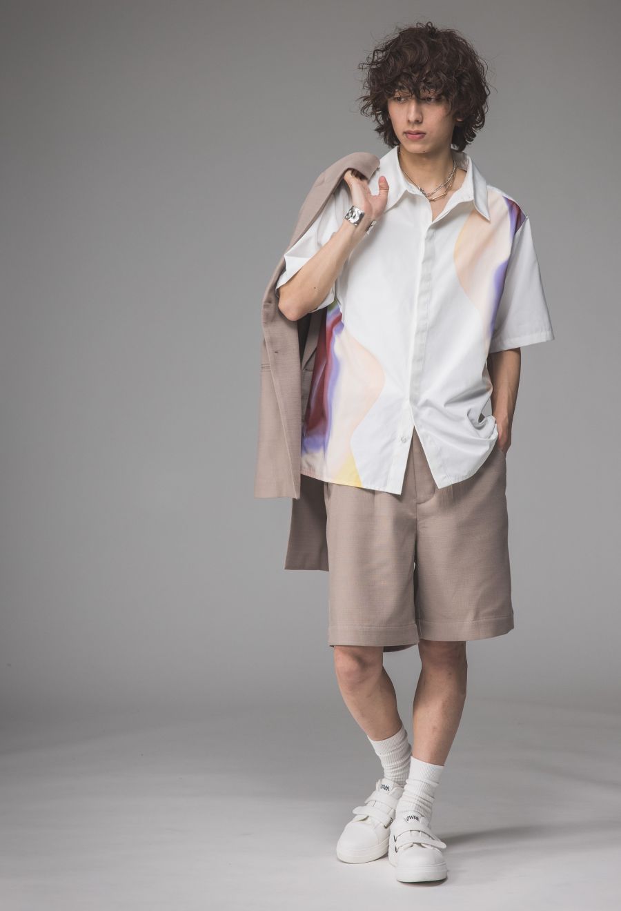 流れるようなウェーブ柄が視線を惹きつける、感度高めなオーバーサイズのレギュラーカラーシャツです。