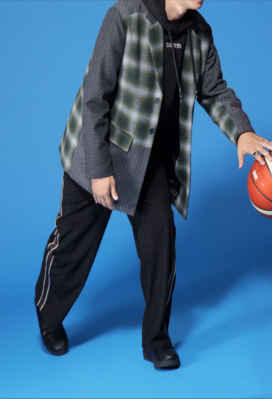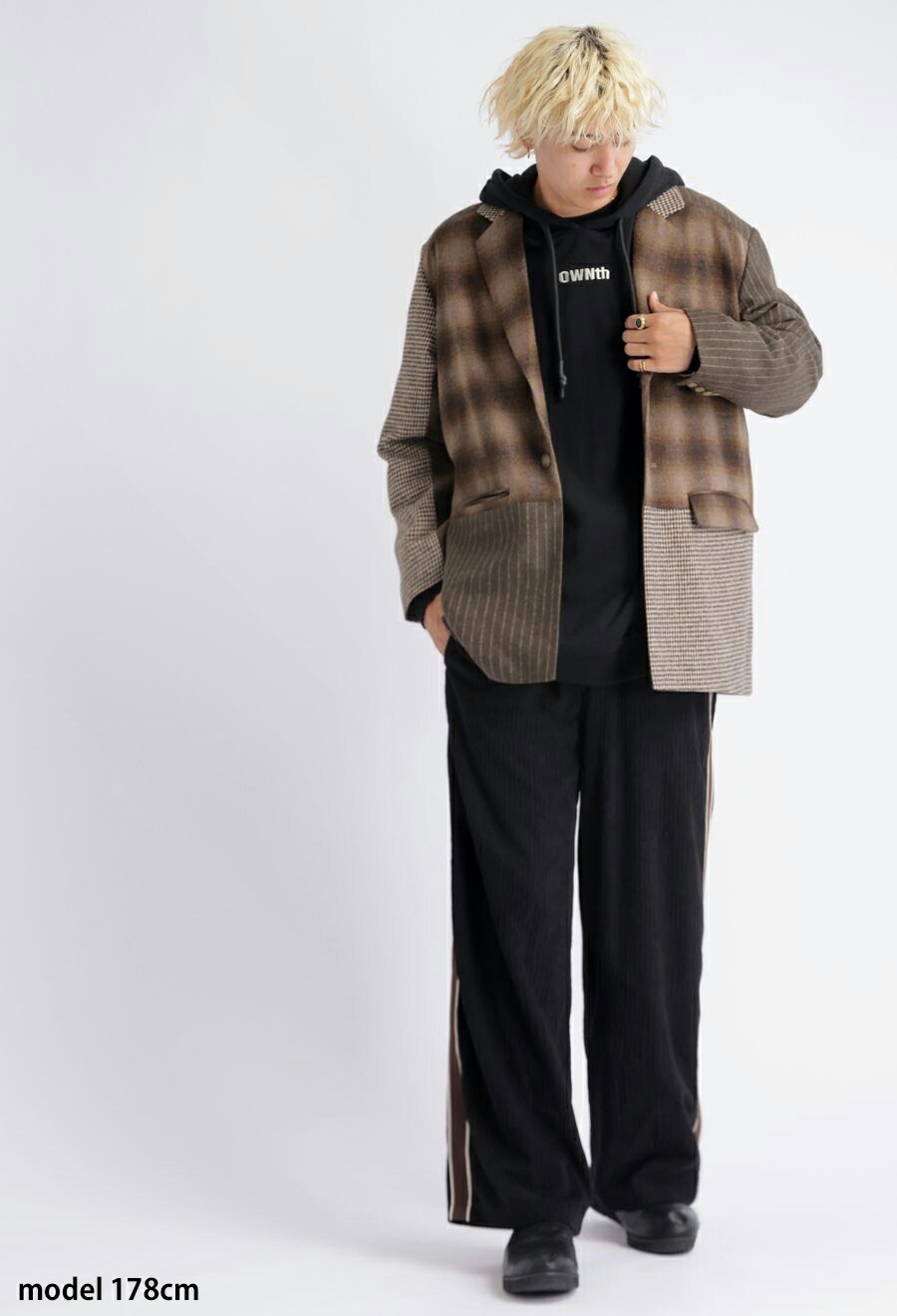 同素材のジャケット(品番OWT-0032)とセットアップでの着用も可能です。