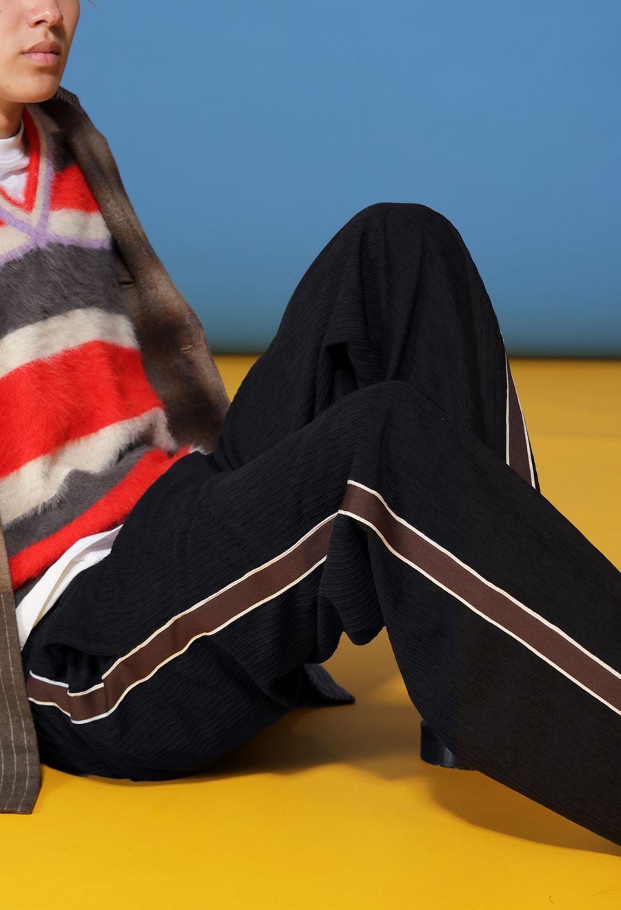 素材には柔らかな太畝(うね)のコーデュロイを採用し、軽くしなやかで光沢感もほんのりあるため、リラックス感と品の良さを兼ね備えています。