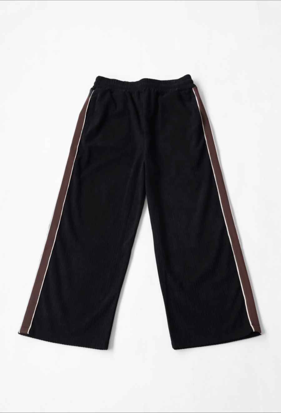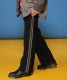 クラシカルな配色ラインがアクセントになった、ワイドシルエットのトラックパンツです。