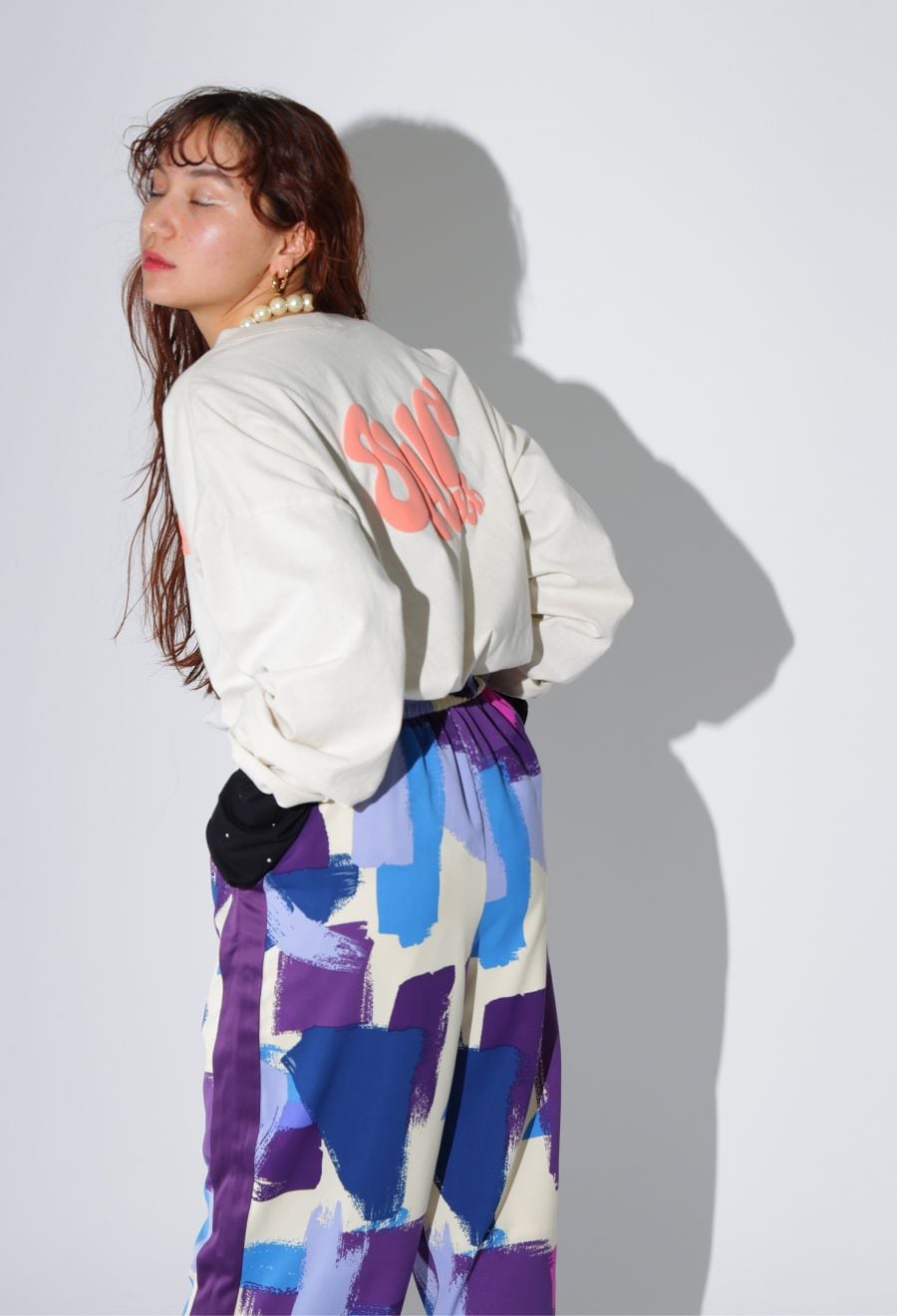 大胆な色彩のペイント柄が印象的なアートテイストの柄パンツです。