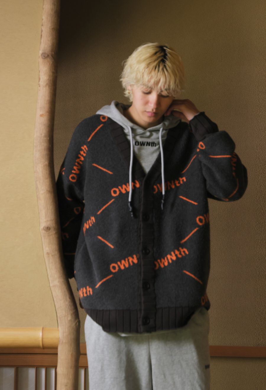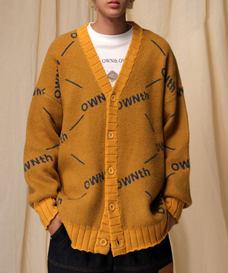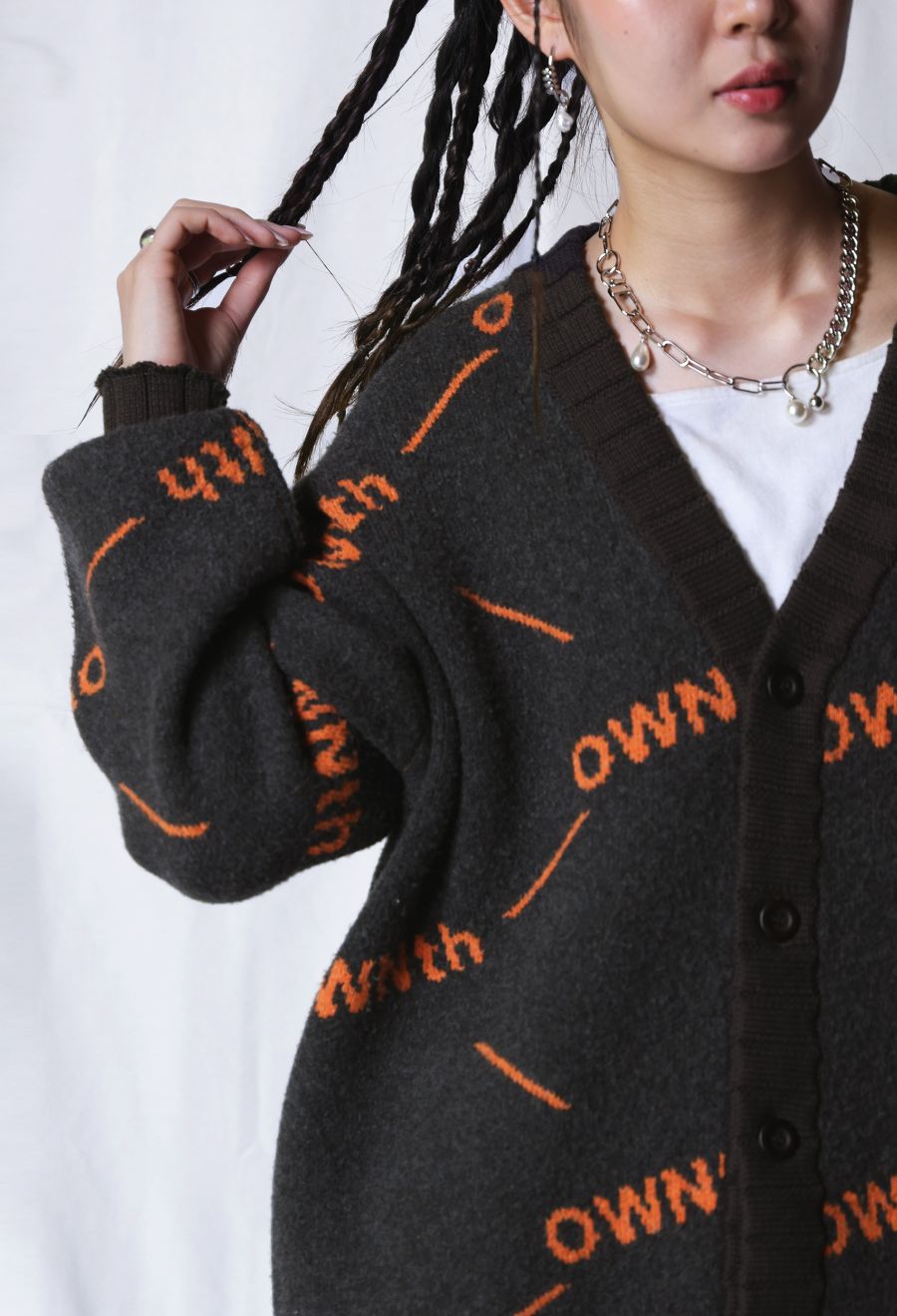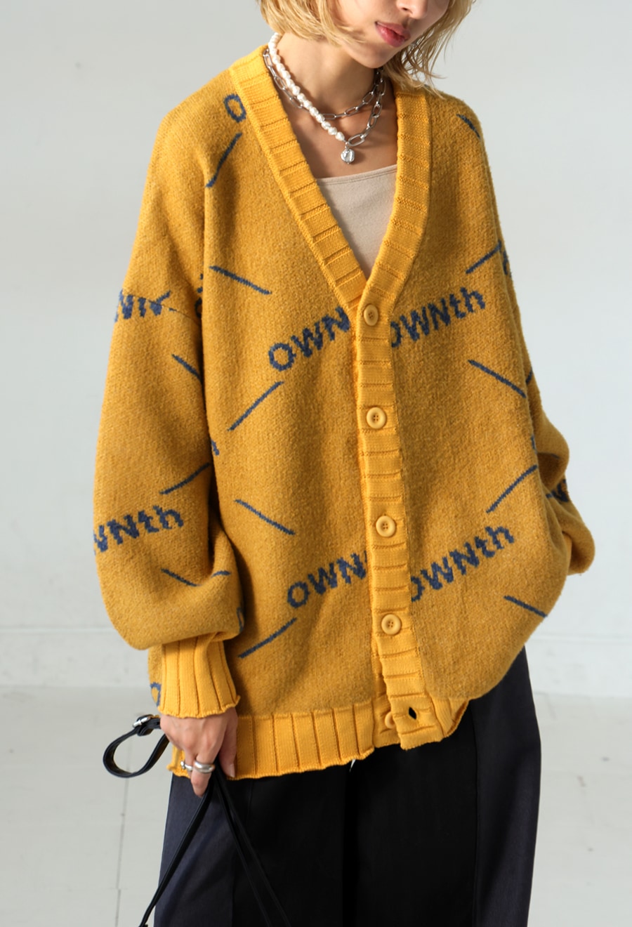 モノグラムカーディガン ユニセックス 長袖 Vネック 送料無料・メール便不可