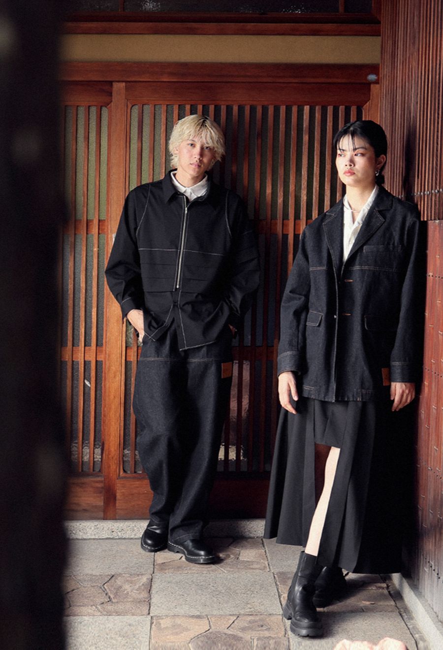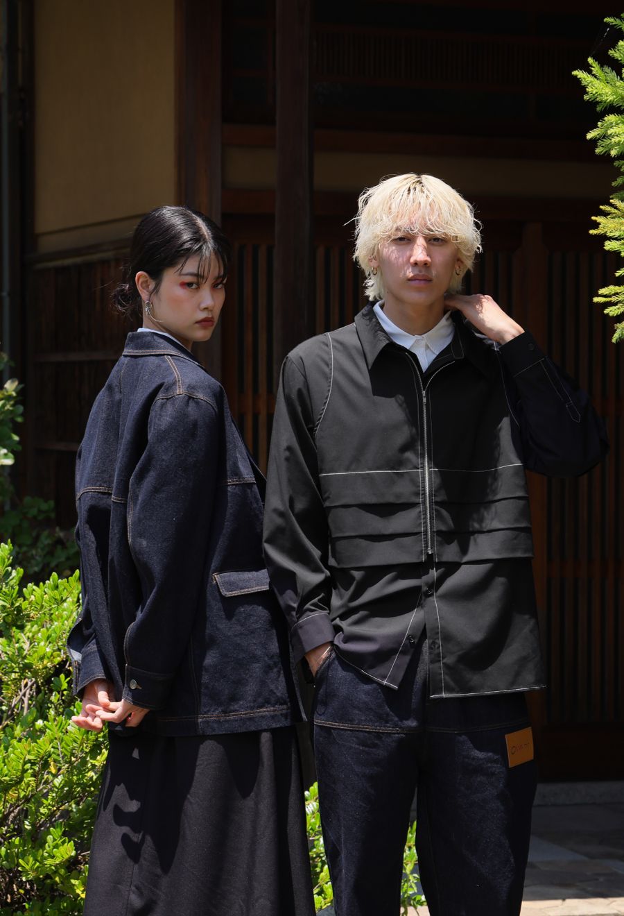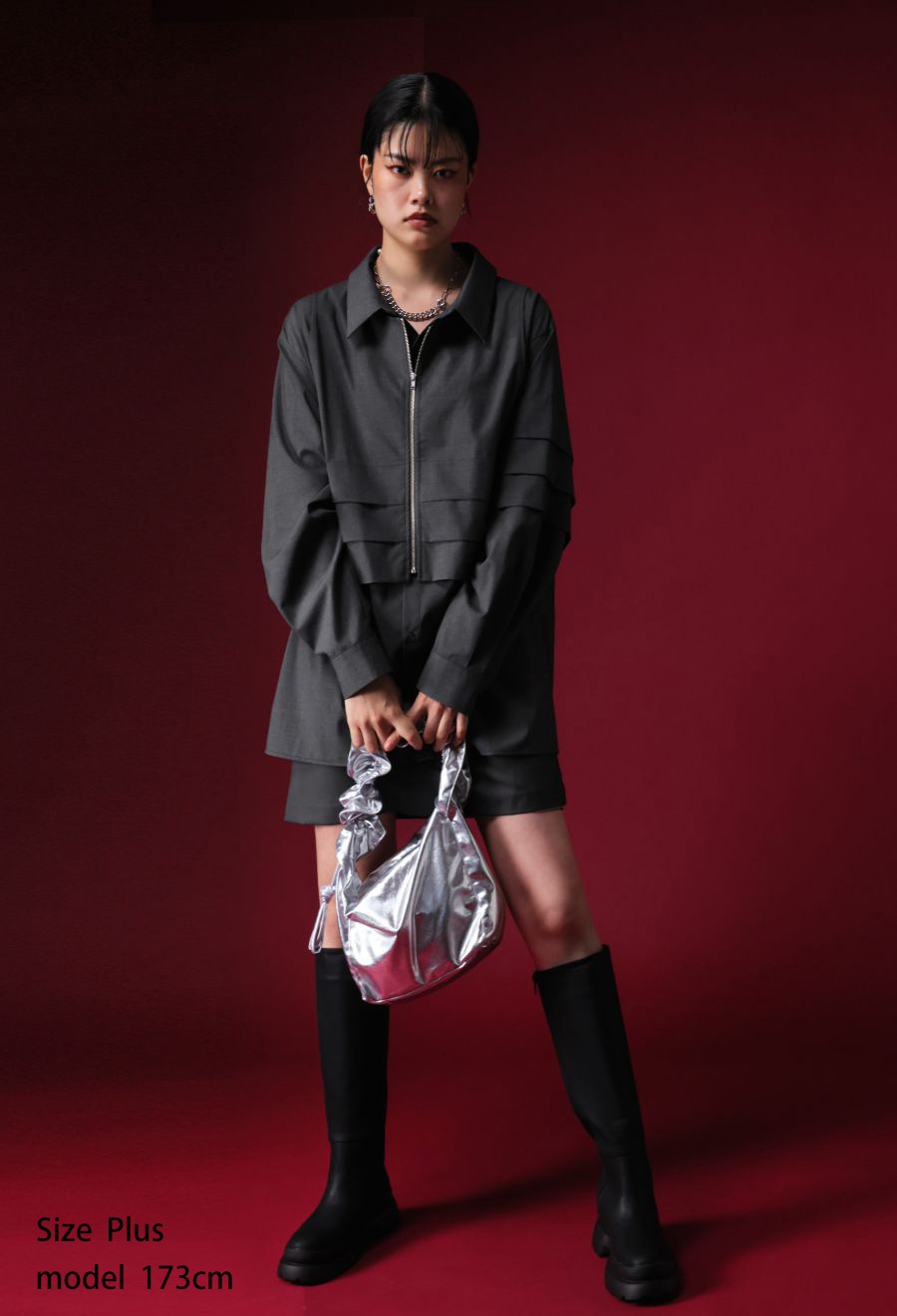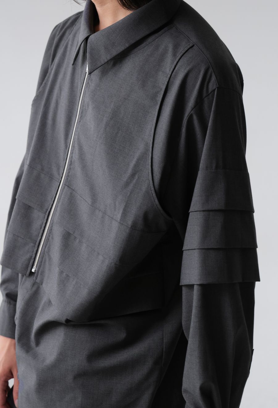 前開き仕様のジップ×ボタンのフロントがアクセントになり、アレンジの効いた着こなしが楽しめます。