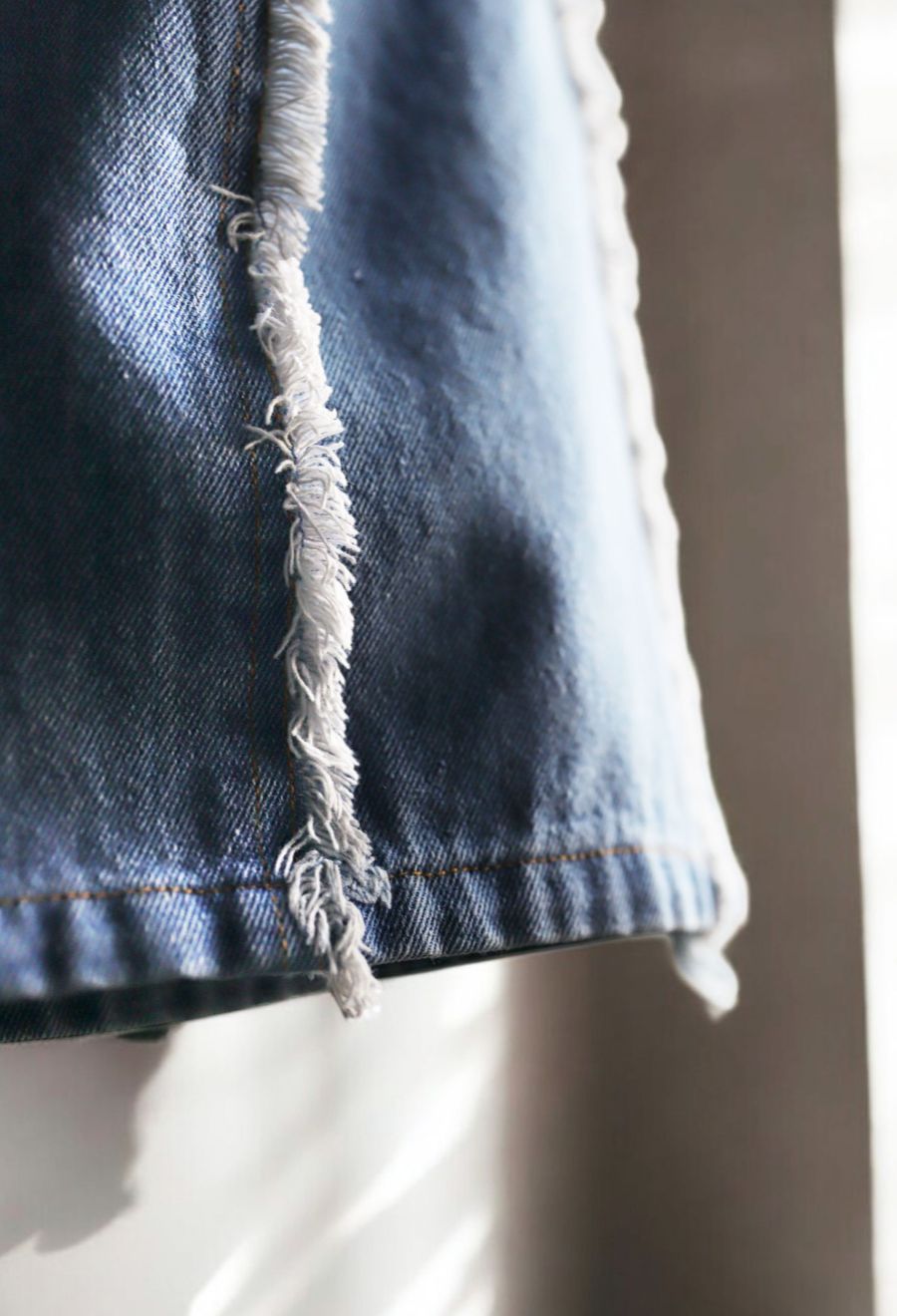 エッジの効いたフリンジラインが目を惹くデニムパンツです。