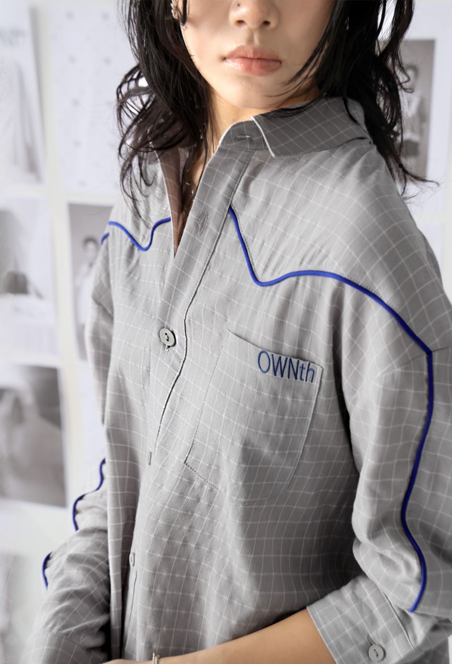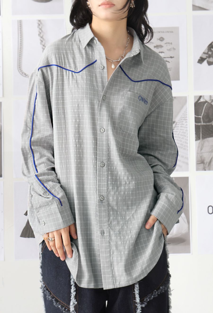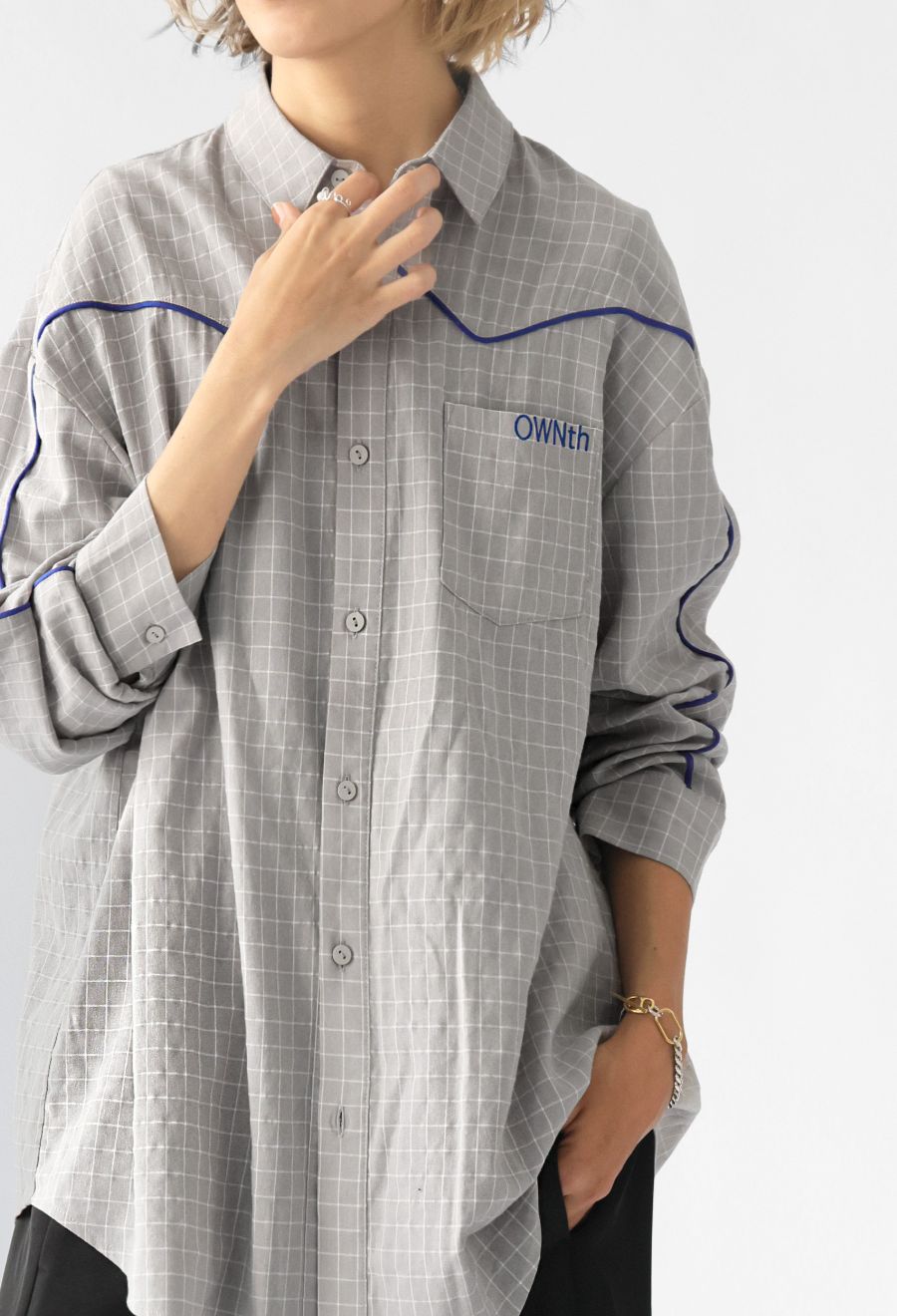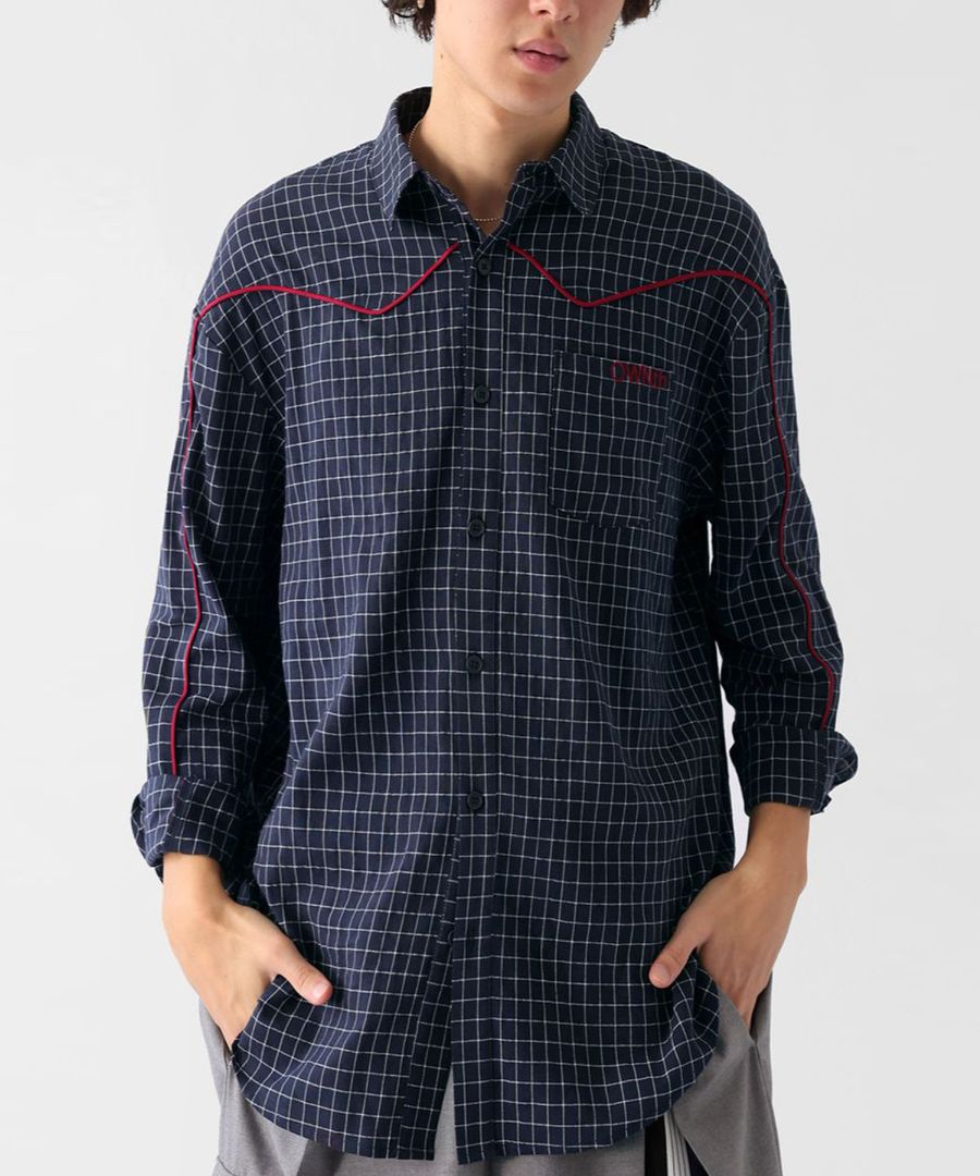 クラシカルな存在感を放つパイピングデザインのチェック柄シャツ。