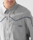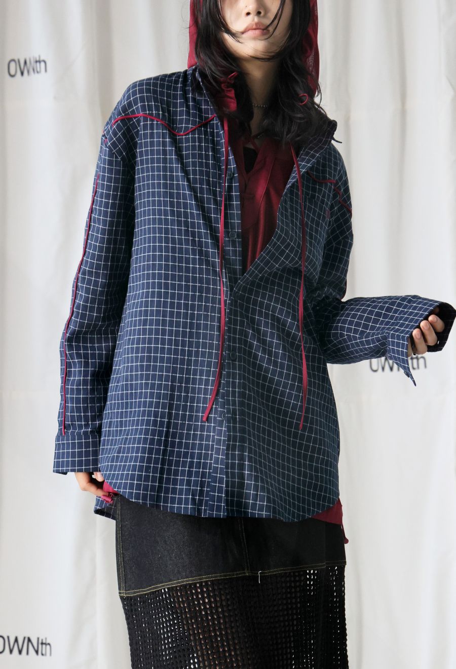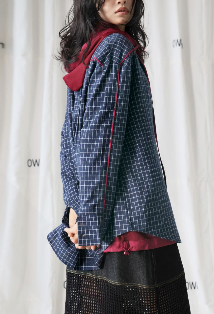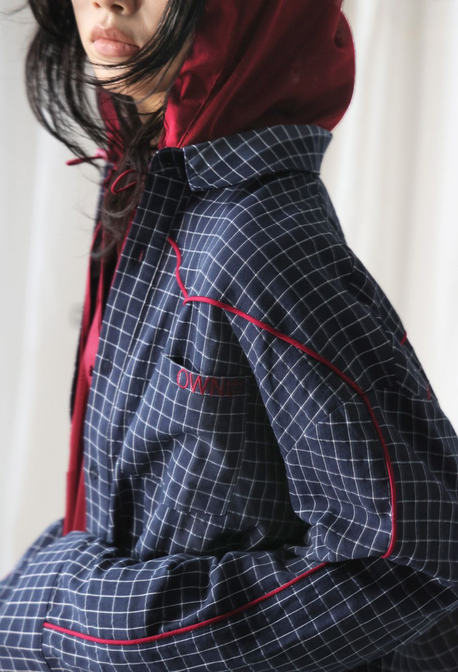 クラシカルな存在感を放つパイピングデザインのチェック柄シャツ。