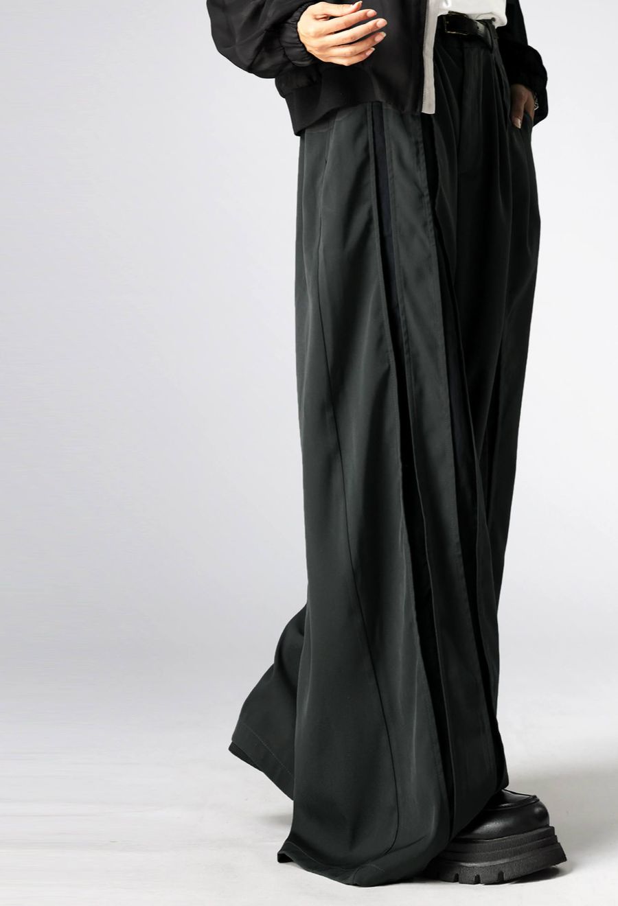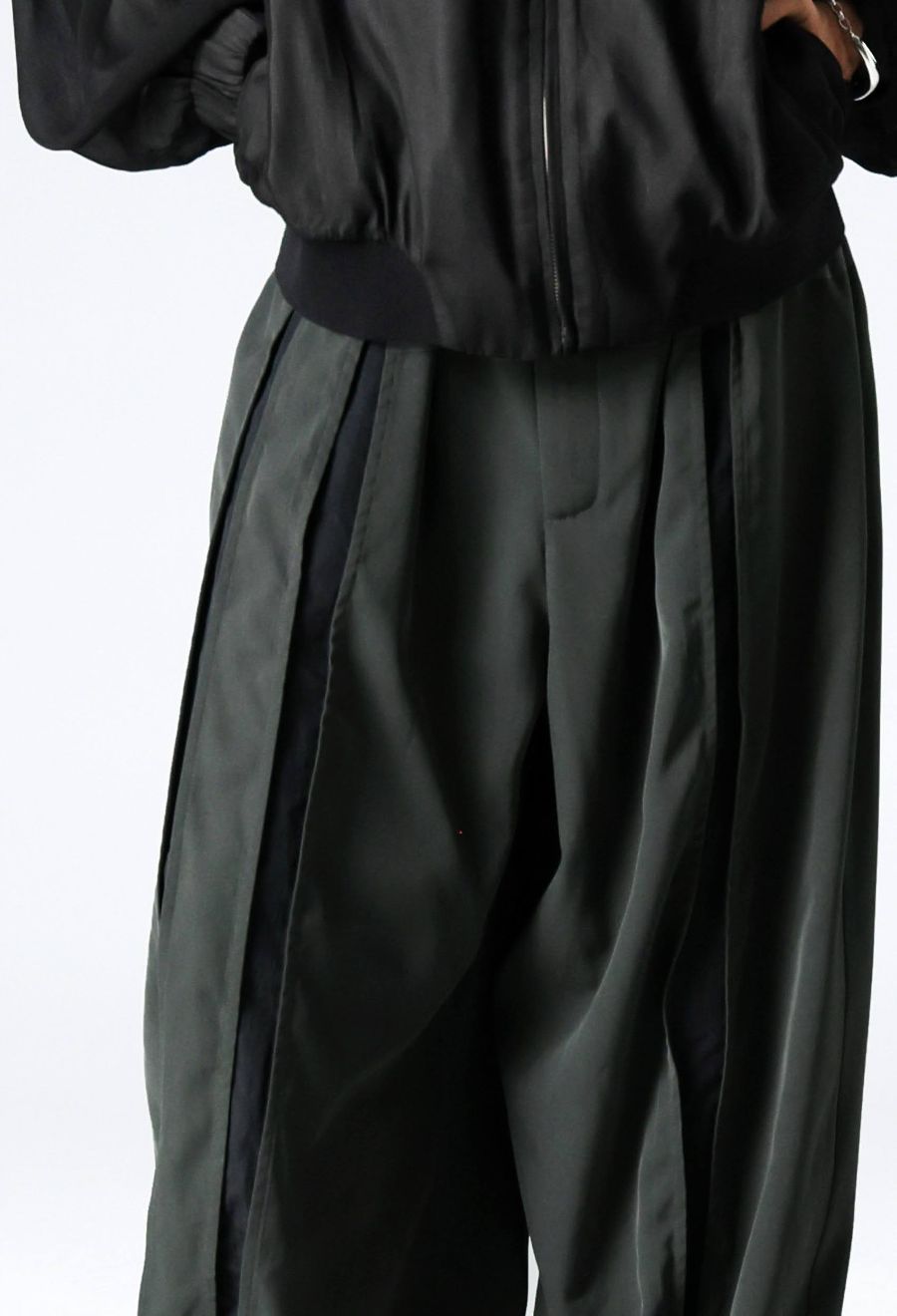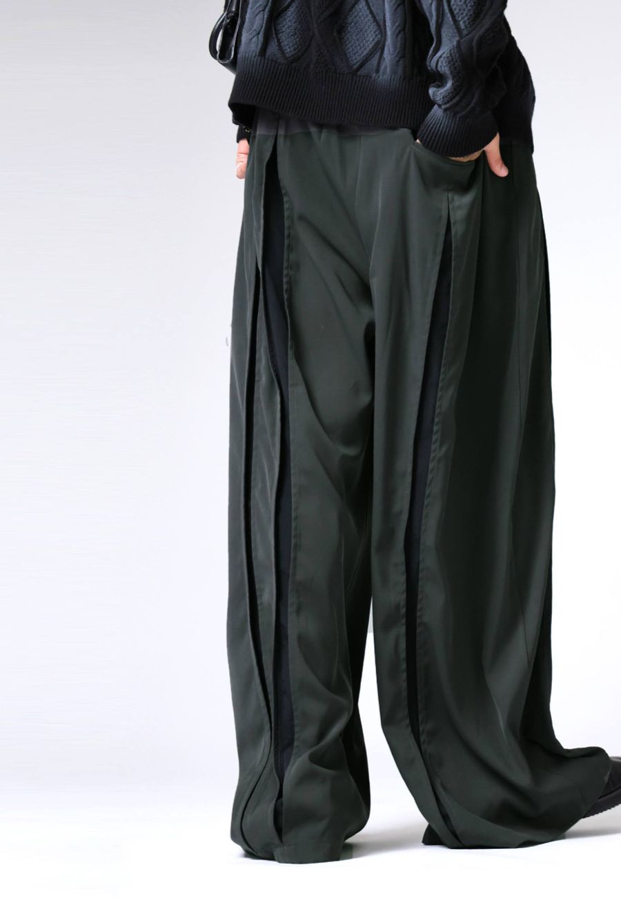 モードとスポーティーをミックスした、大人のための切替スラックスパンツ。