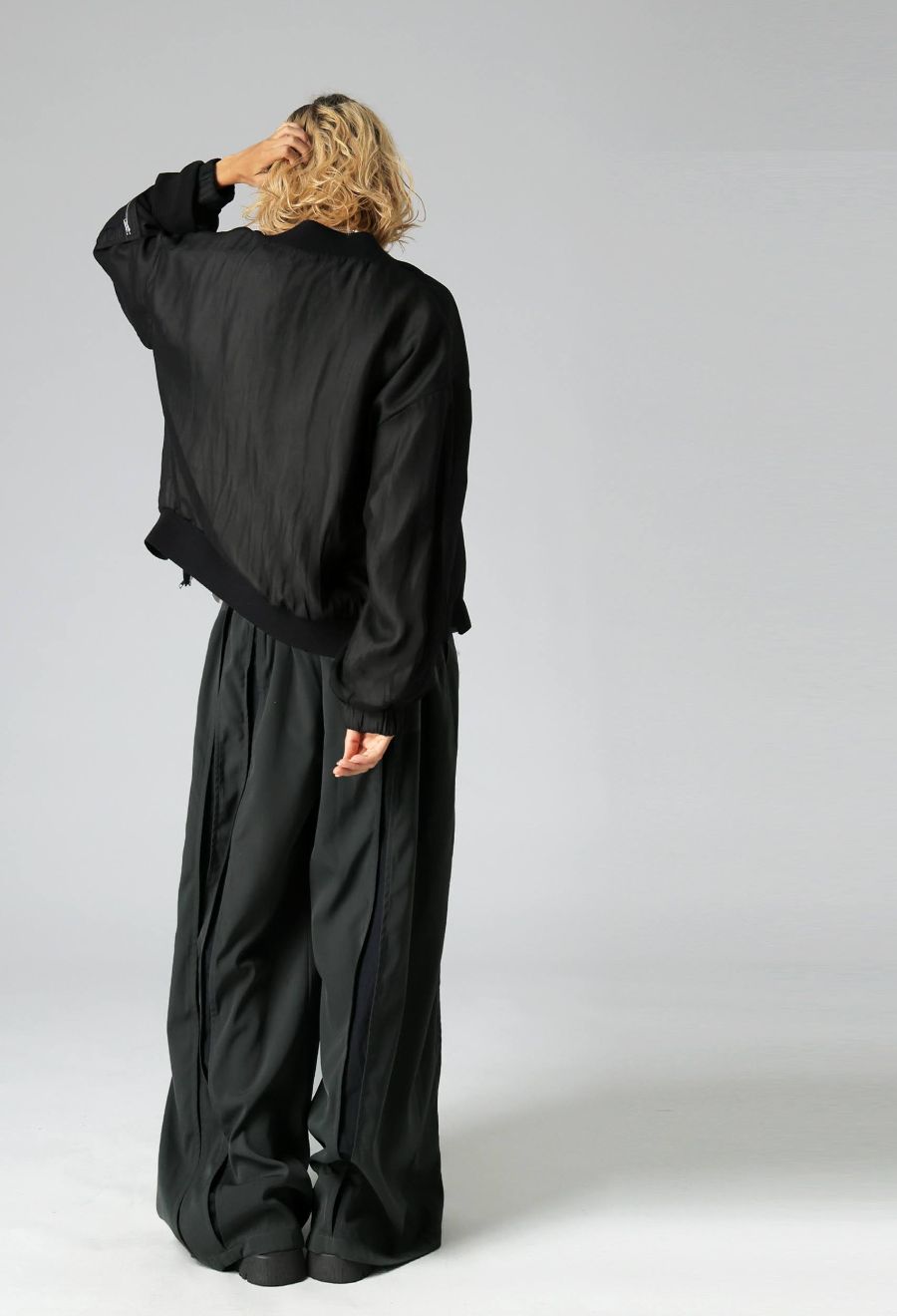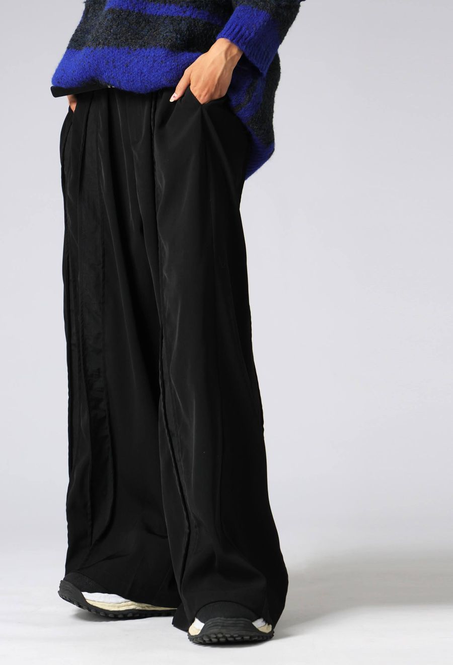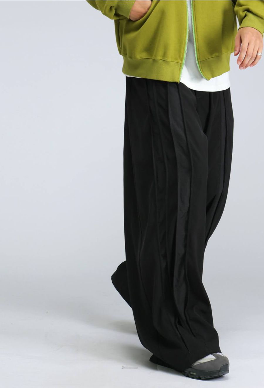 モードとスポーティーをミックスした、大人のための切替スラックスパンツ。