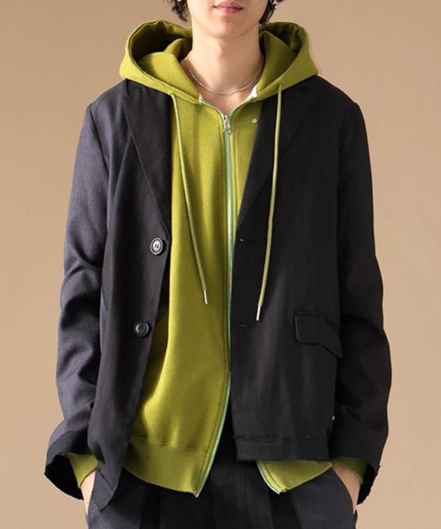 異素材切替 ジャケット ユニセックス テーラード 送料無料・メール便不可