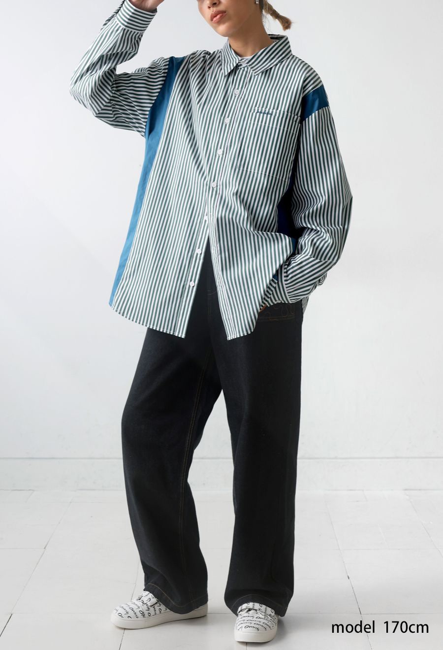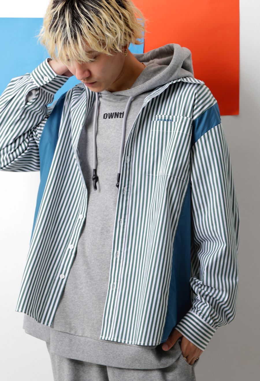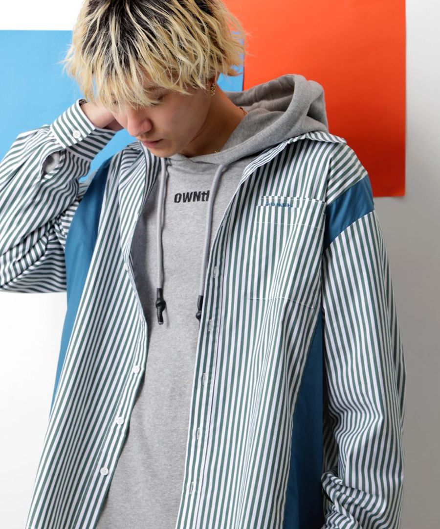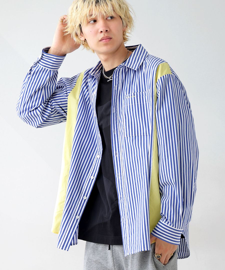 配色 ドッキング ストライプシャツ メンズ 長袖 送料無料・(80)メール便可