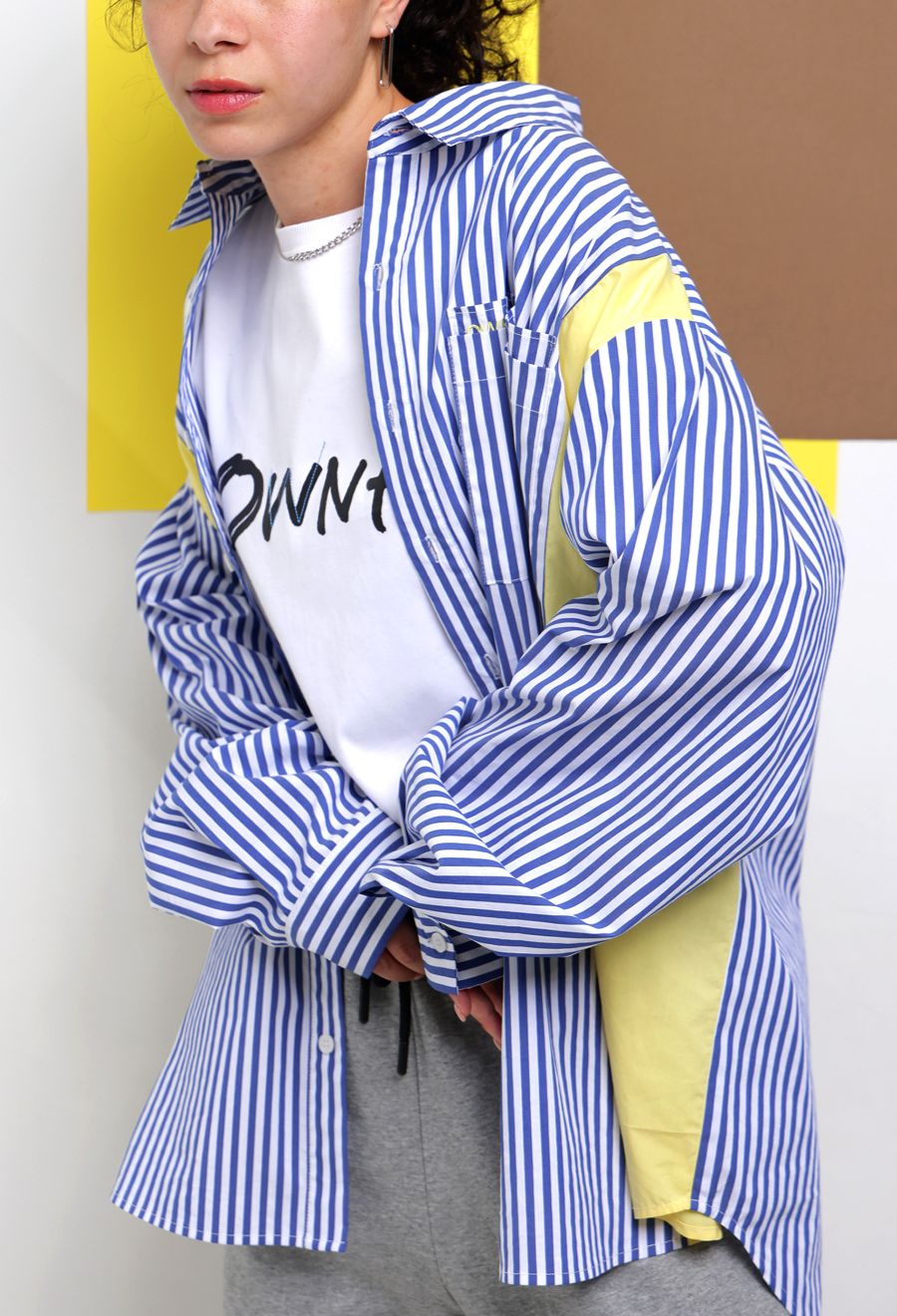 ベーシックなストライプ柄にポップな配色を取り入れ、個性を演出するデザインシャツです。