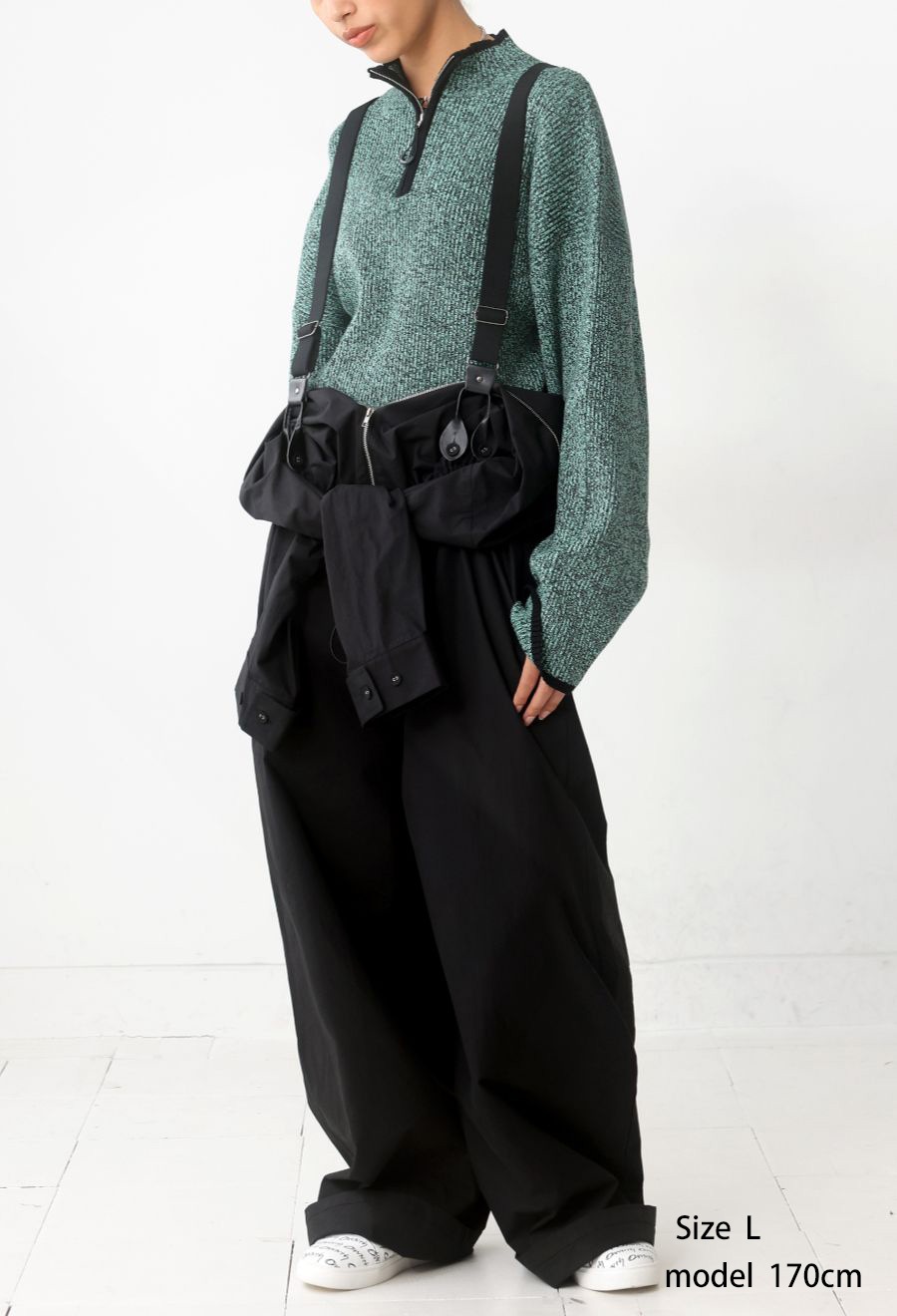 袖をウエストで巻いてパンツ感覚で着こなせる2WAY仕様もポイント。