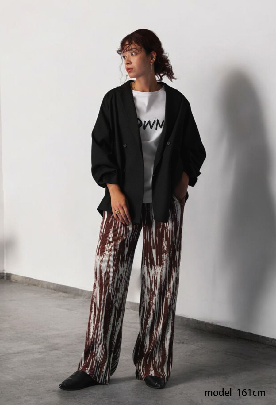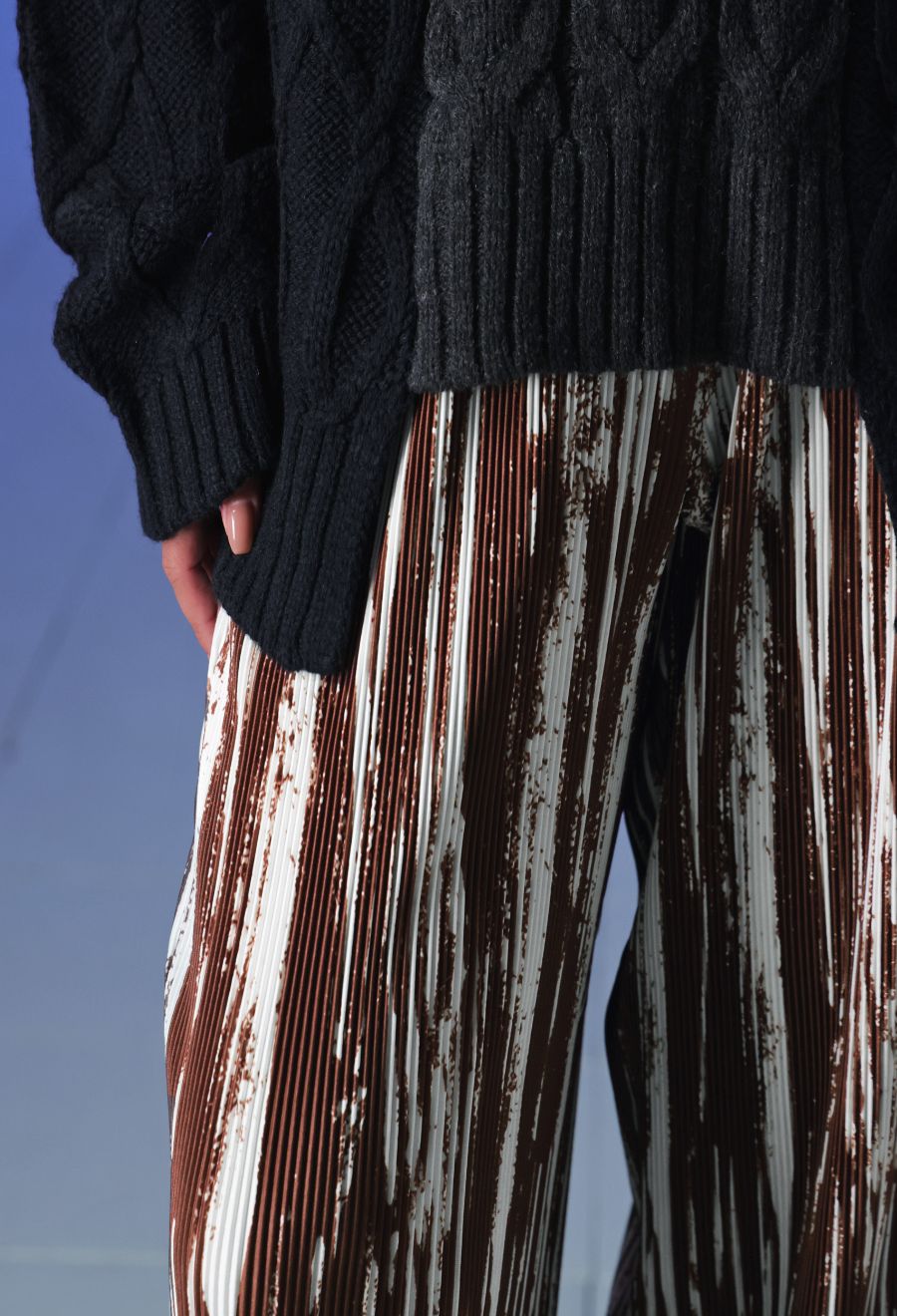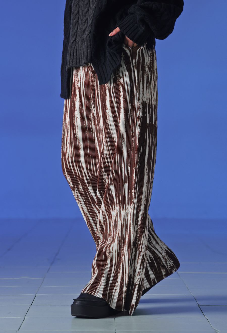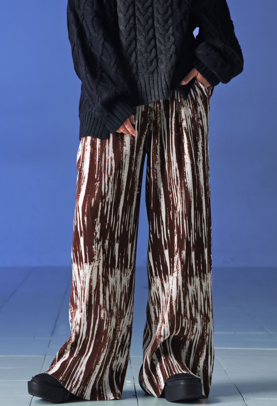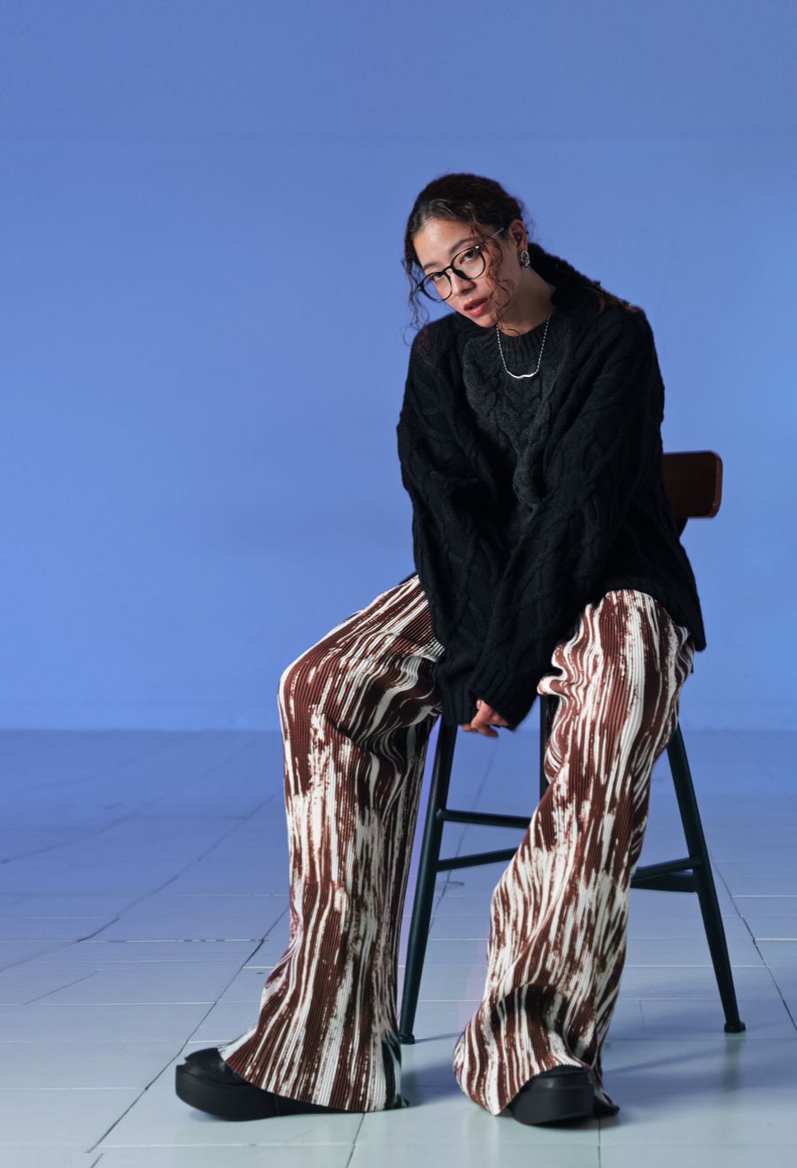 柄は雪解けの地面をモチーフにした茶白のモノトーンデザインで、モードからカジュアルまで幅広く対応。