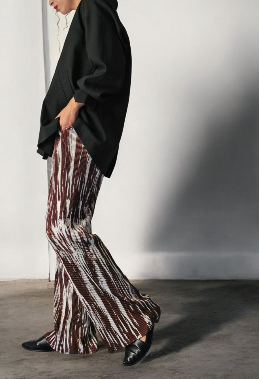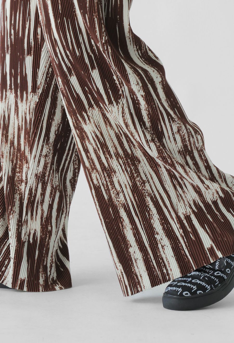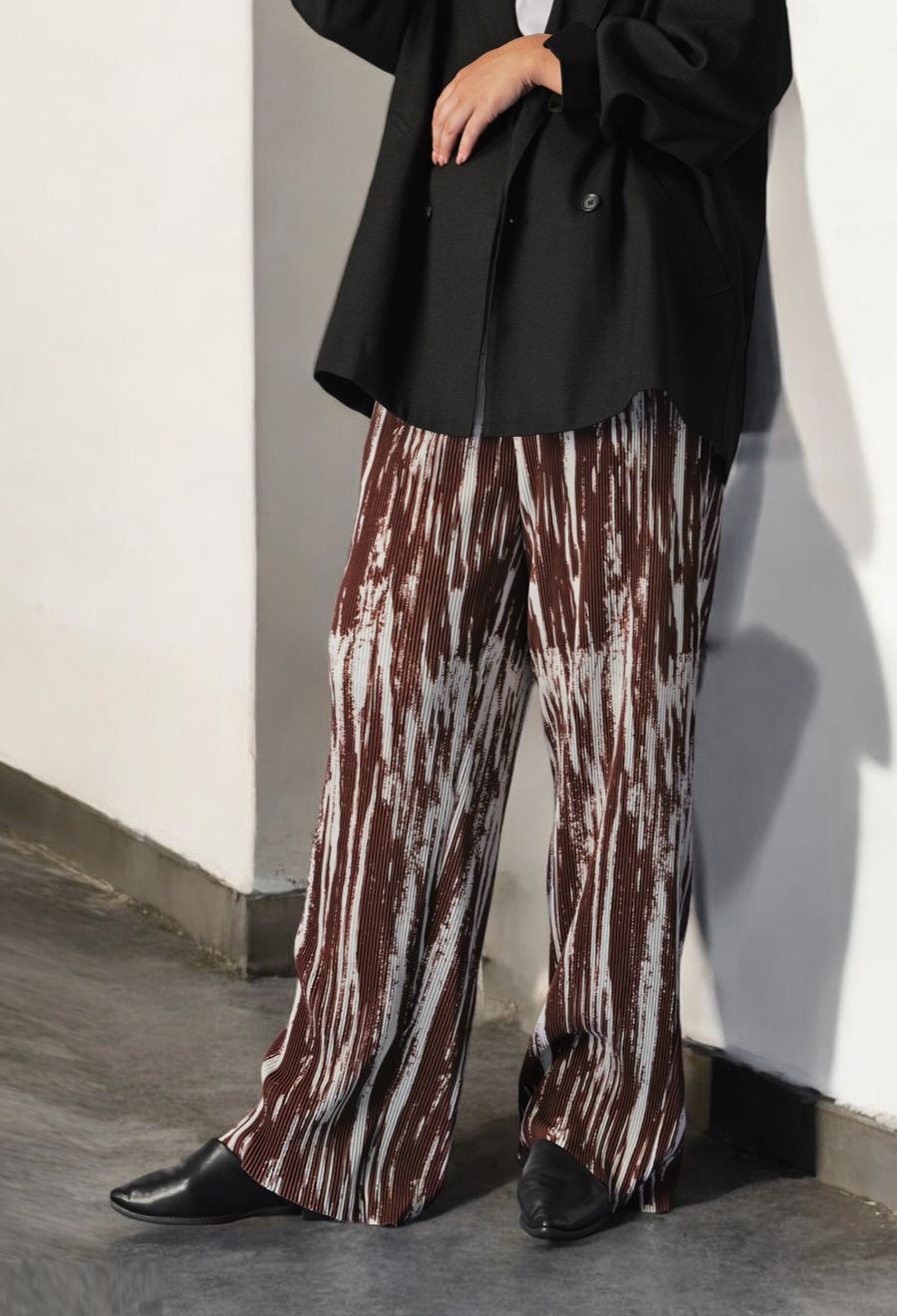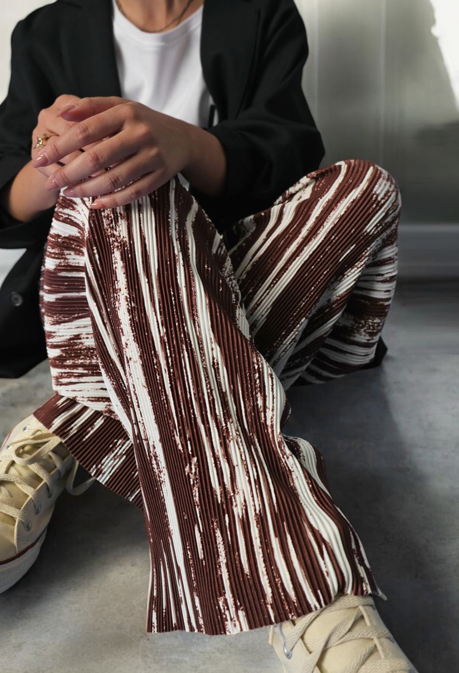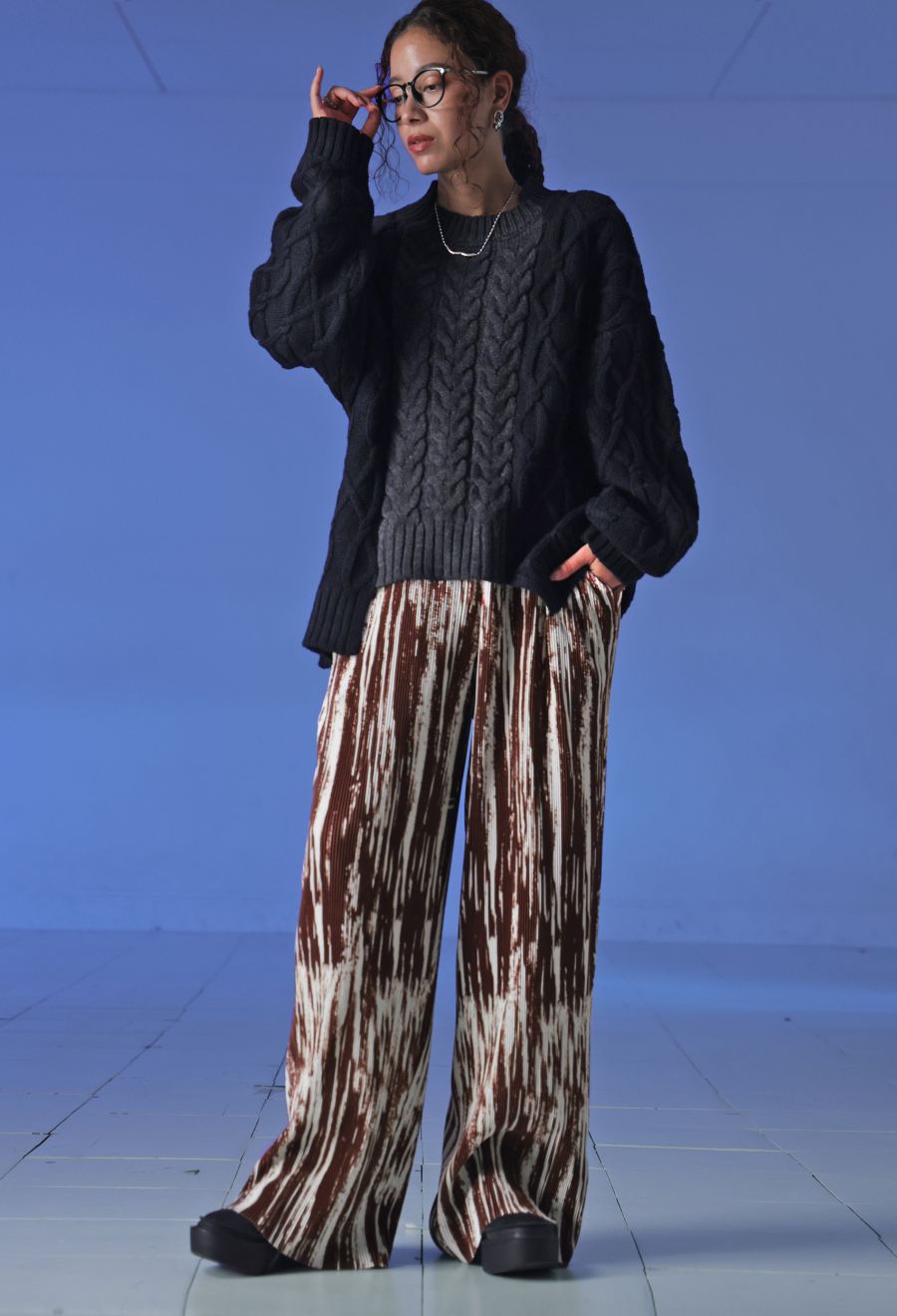 柄は雪解けの地面をモチーフにした茶白のモノトーンデザインで、モードからカジュアルまで幅広く対応。