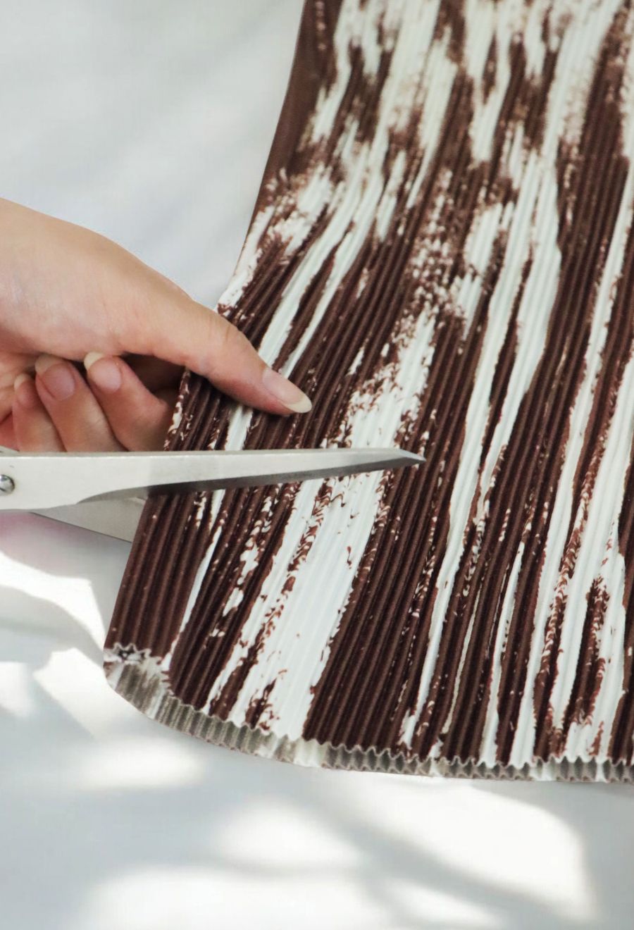 布切り専用ハサミで裾を簡単にカットできるため、自分好みの丈感に調整可能。
