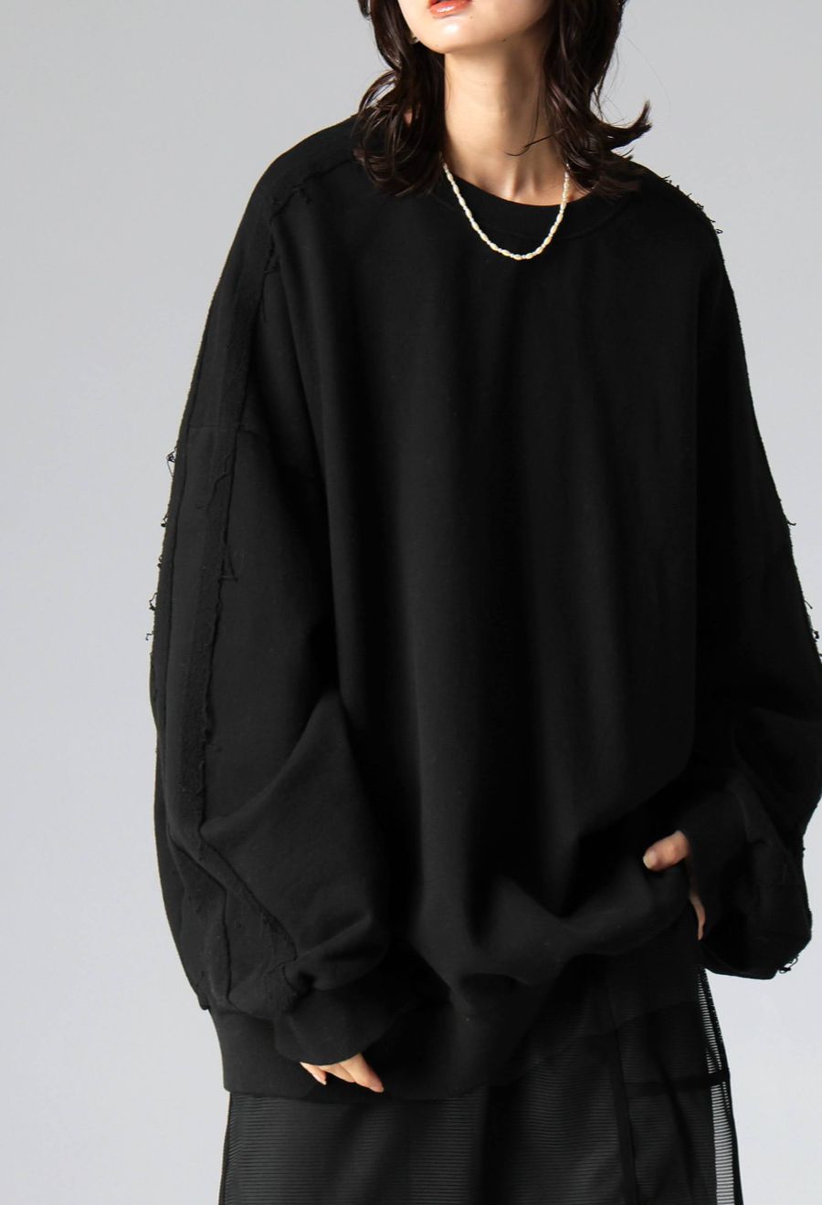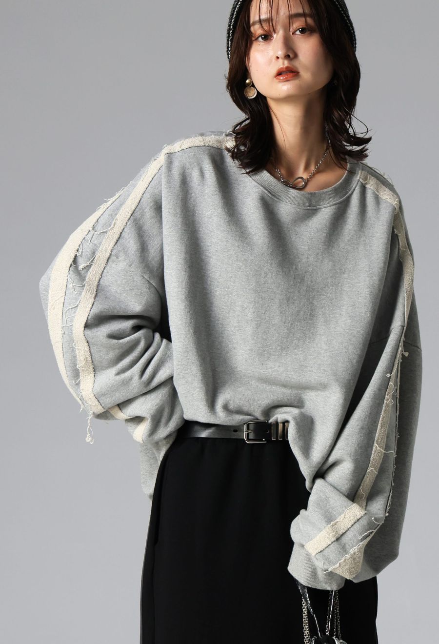 袖丈はたっぷりと長めで、リブ仕様がメリハリをプラス。