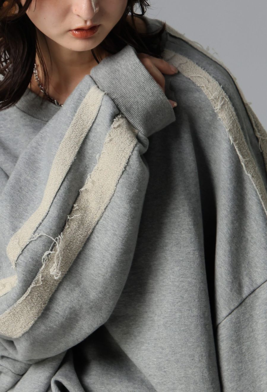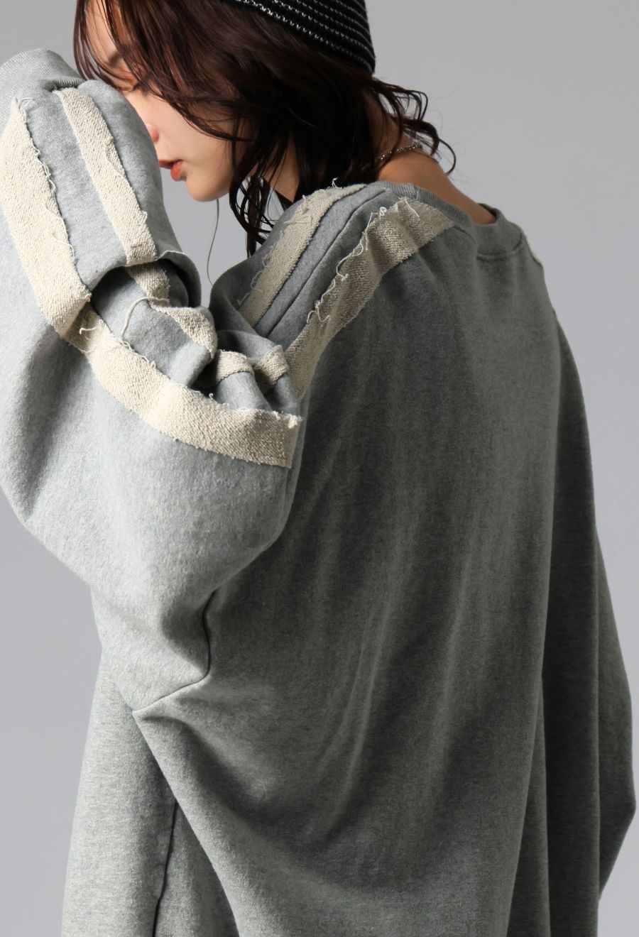 肩から袖にかけて裏パイルを配色ライン状にあしらい、ナチュラルな抜け感と立体感を演出します。