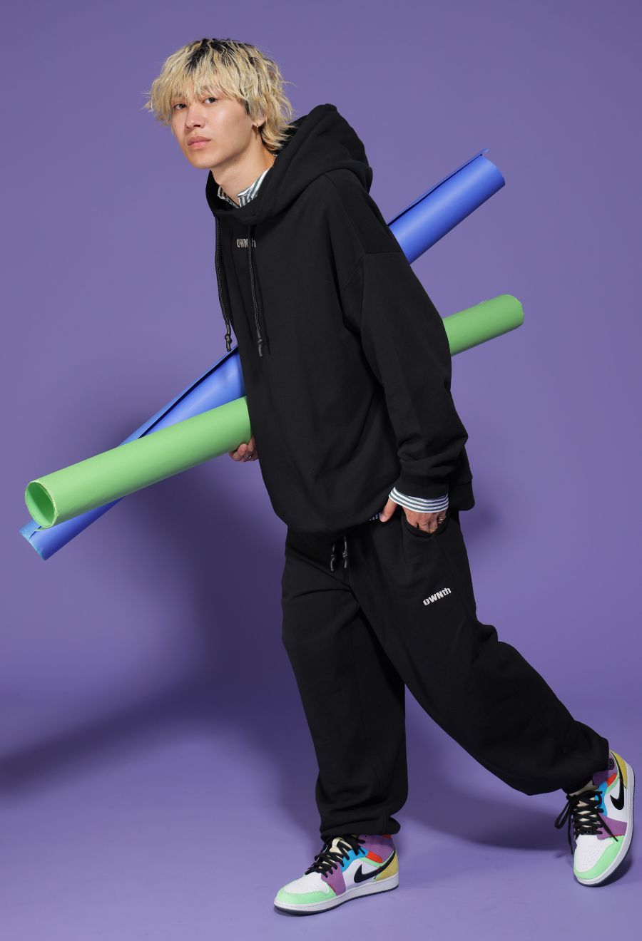 同素材のフーディーと合わせれば、統一感のあるユニセックスセットアップに。さらに、レディース向けには、同素材のギャザースリーブフルジップトップスも展開しており、女性らしいシルエットのセットアップコーデも楽しめます。