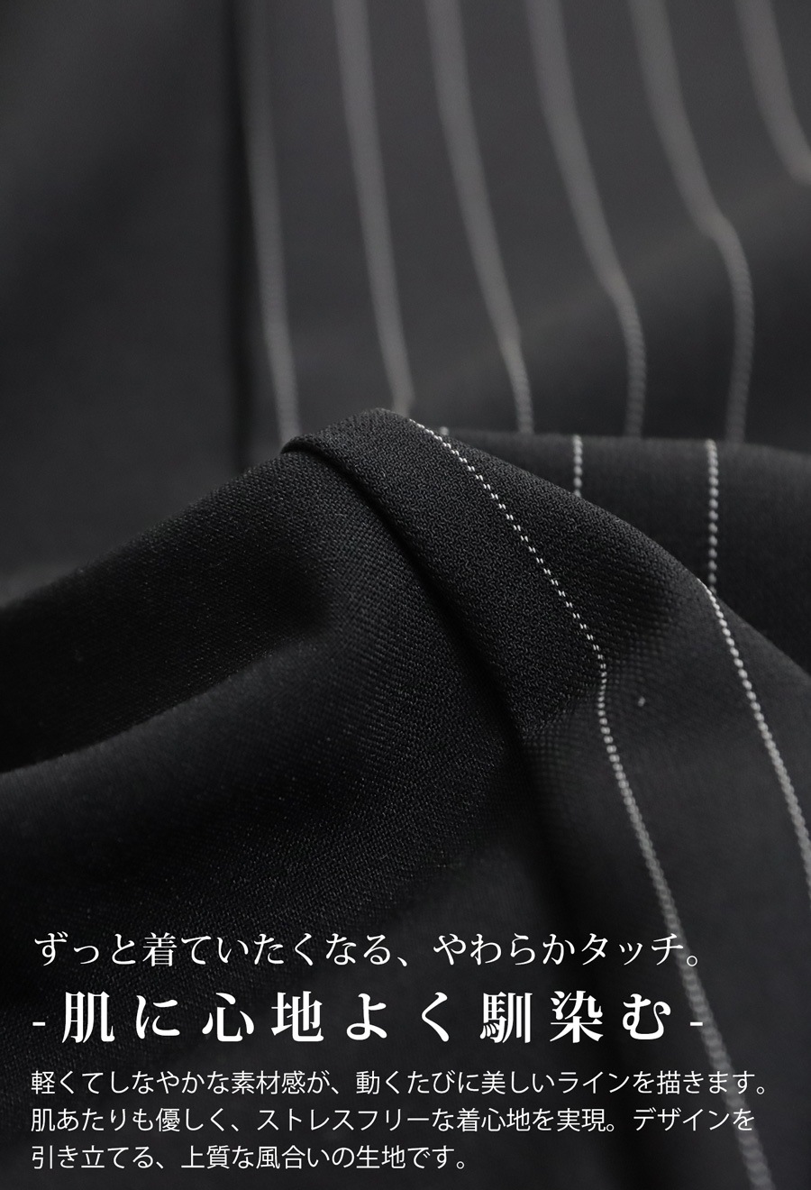 素材は軽やかで肌触りもよく、ストレスフリーな着心地を実現。