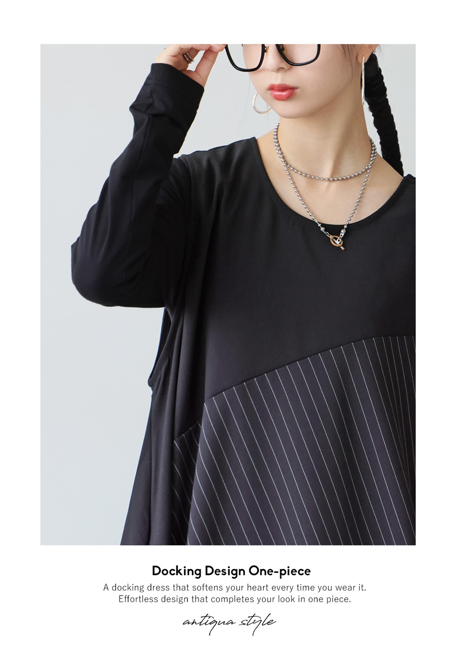 異素材の切替とギャザーが生み出す立体感が魅力のデザインワンピース。