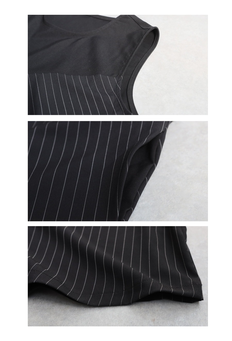 ノースリーブの袖丈はインナーとのレイヤードがしやすく、着回し力も抜群です。