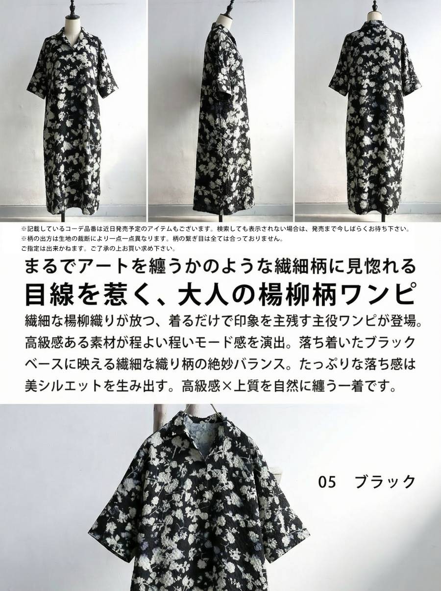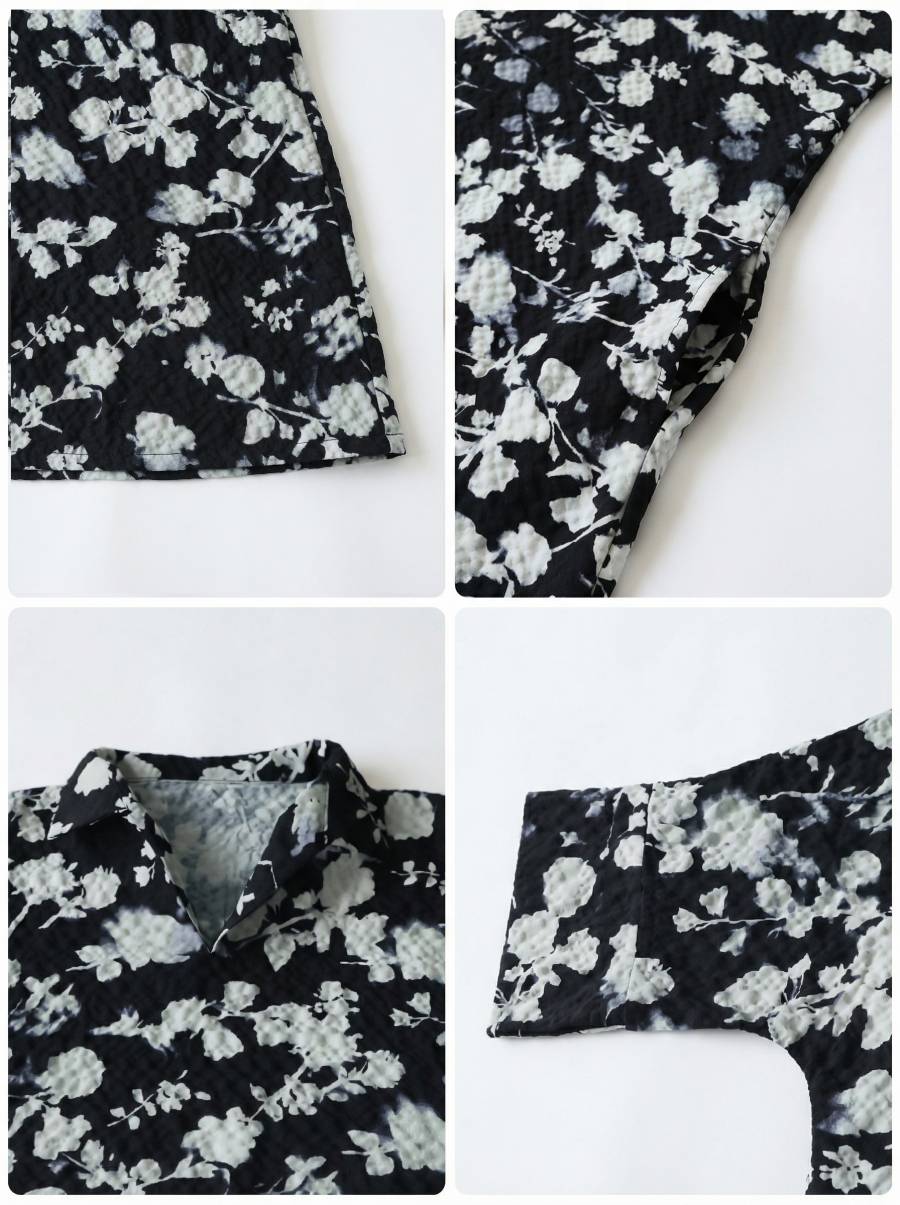 凹凸感のある楊柳素材を使用した花柄ワンピースです。