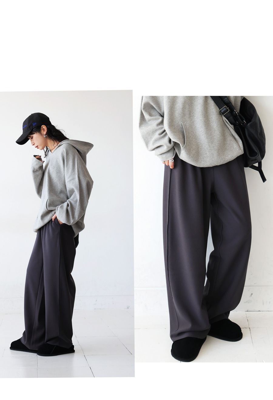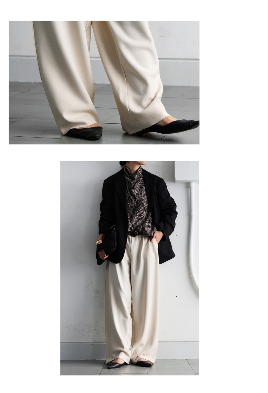 スラックスのような上品さと、裏起毛ならではのふんわりとした暖かさを両立した優秀ボトムスです。