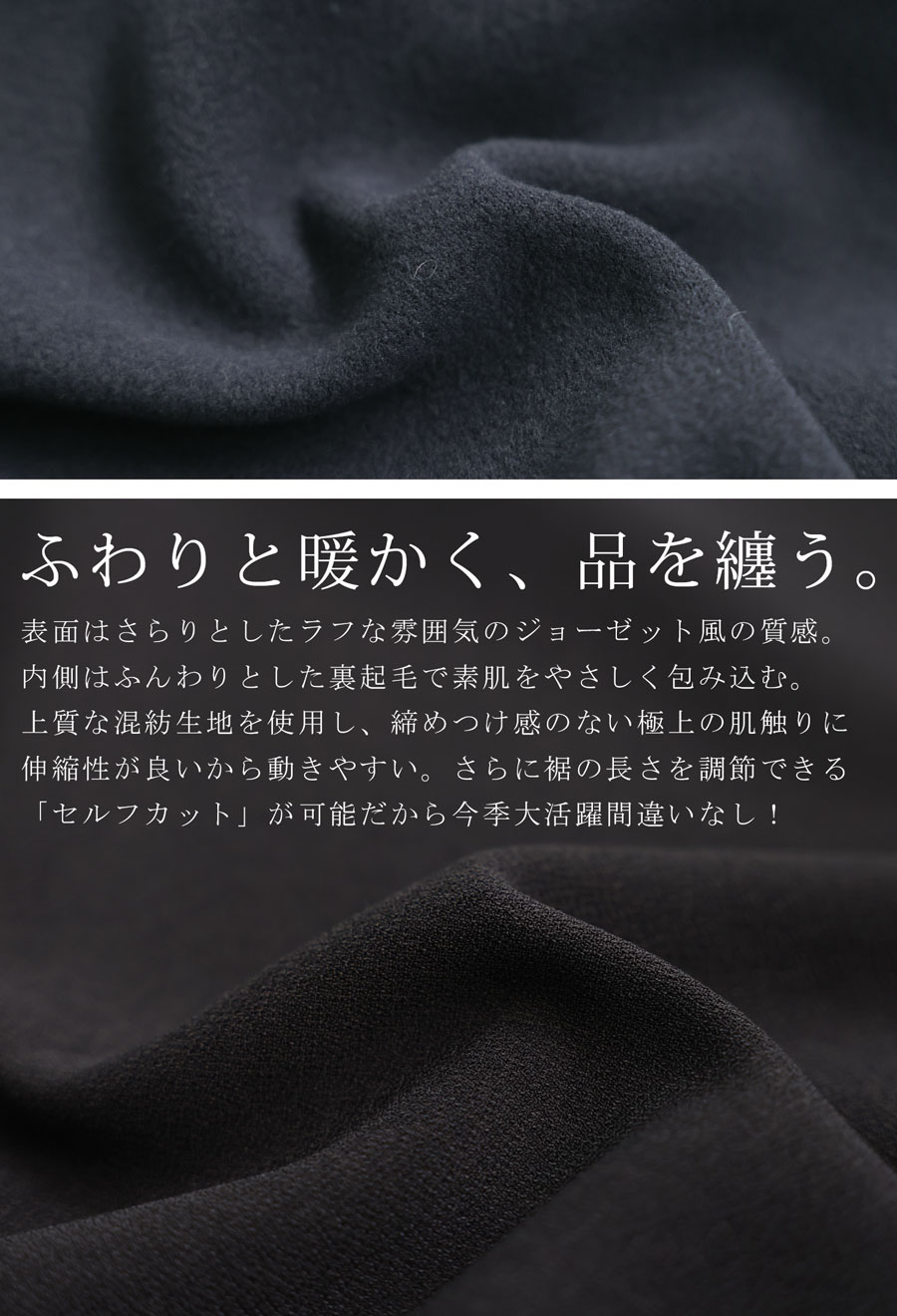 寒い季節もきれいめに決まる、裏起毛ジョーゼットのテーパードパンツが登場。