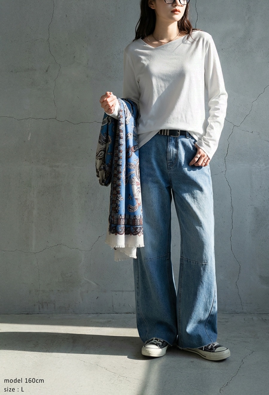 レイヤードスタイルにも取り入れやすく、体型カバーしながら上品な印象を演出します。