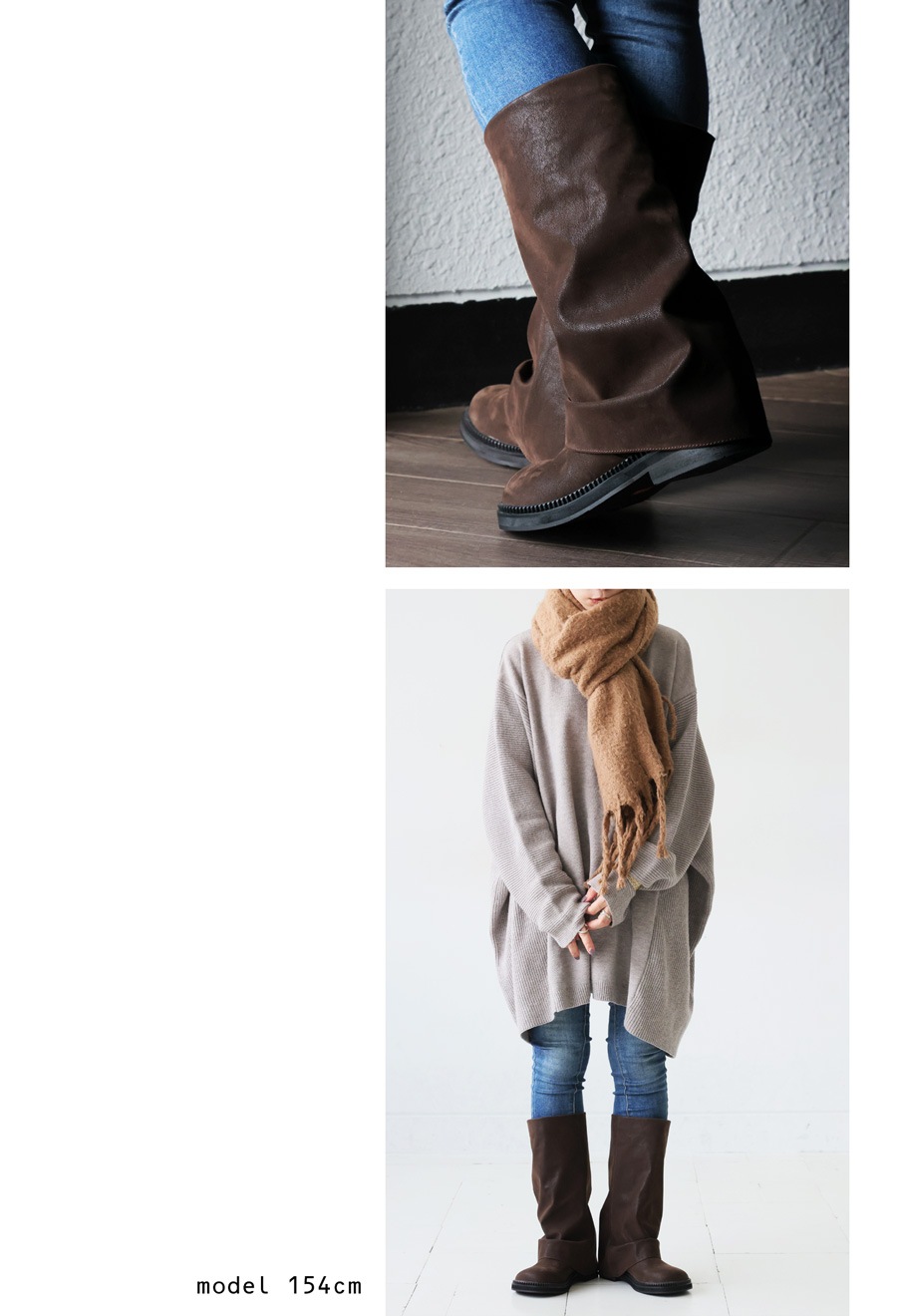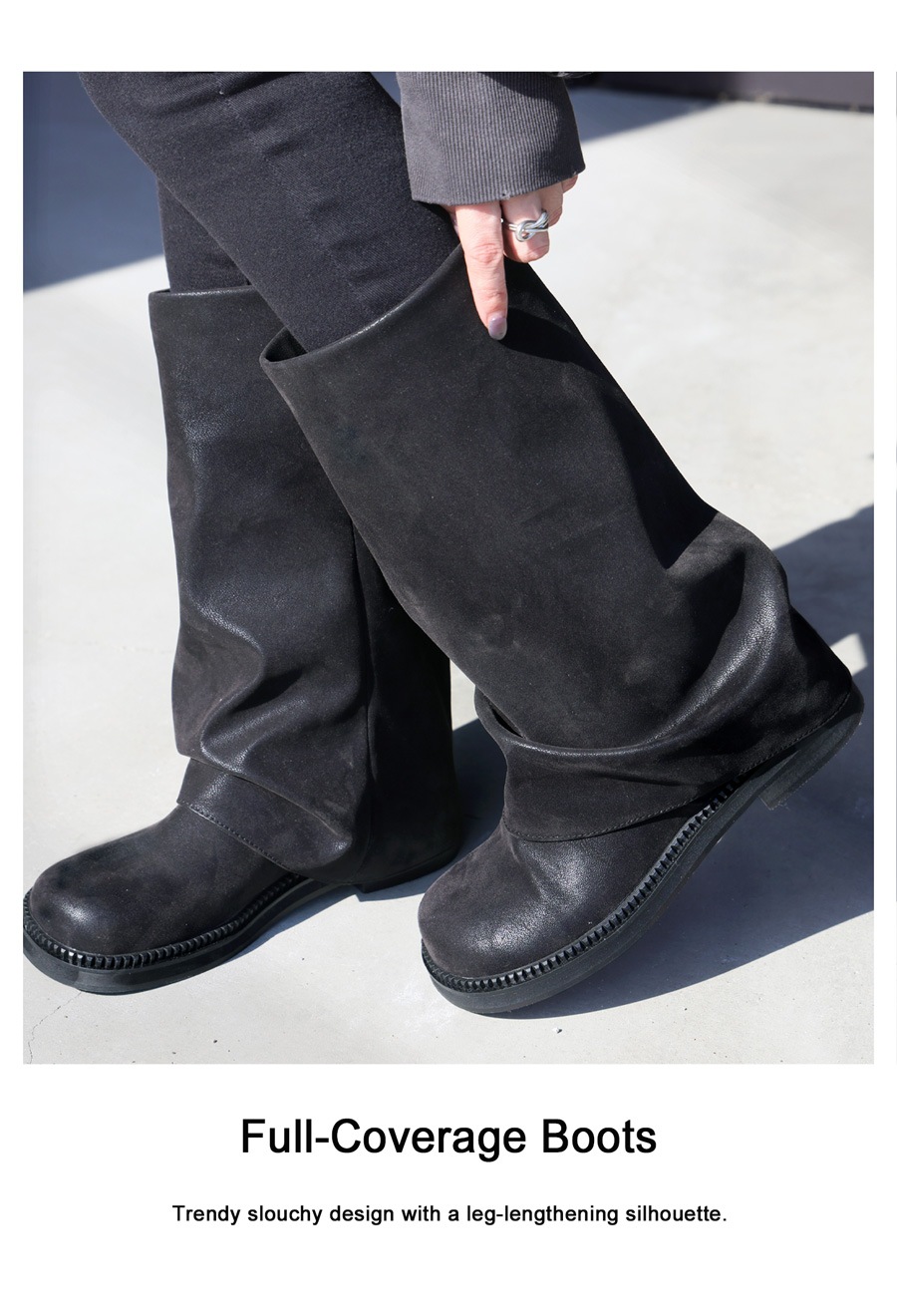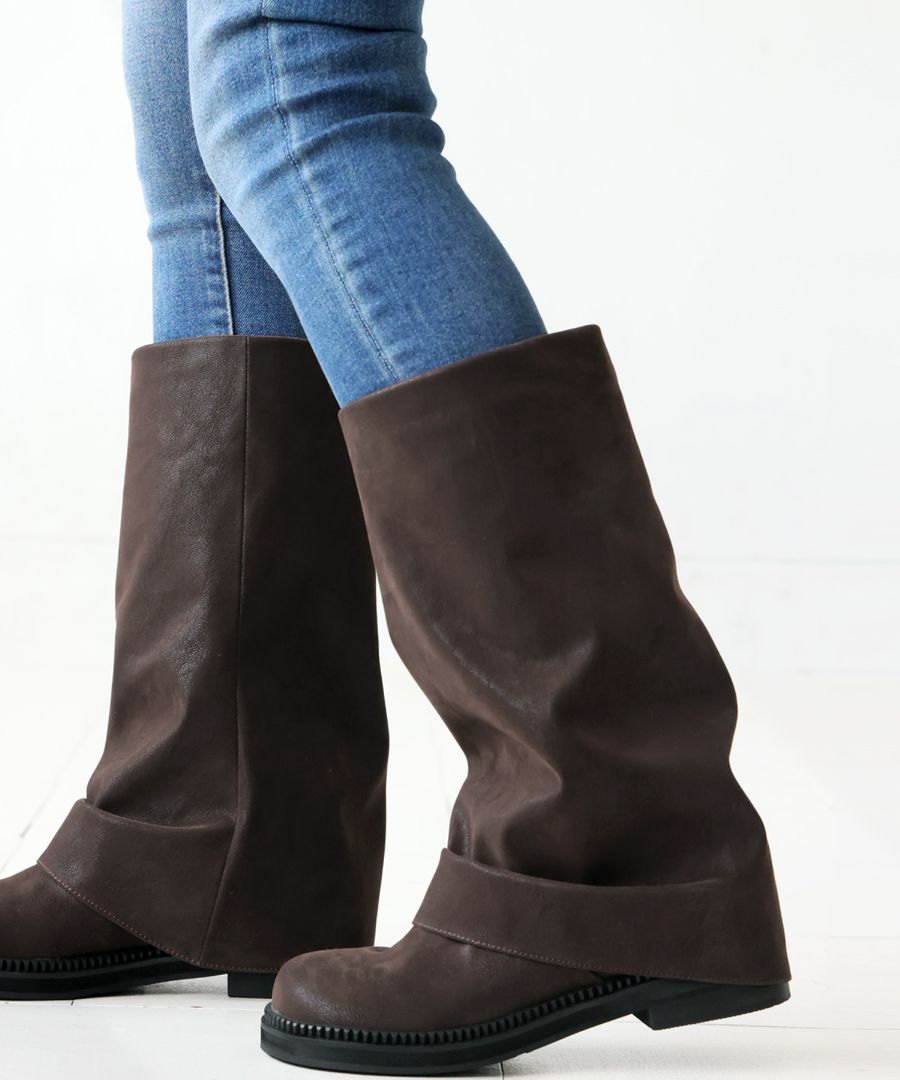 くしゅっとした立体フォルムとマット質感が魅力の、スエード調ロングブーツ。