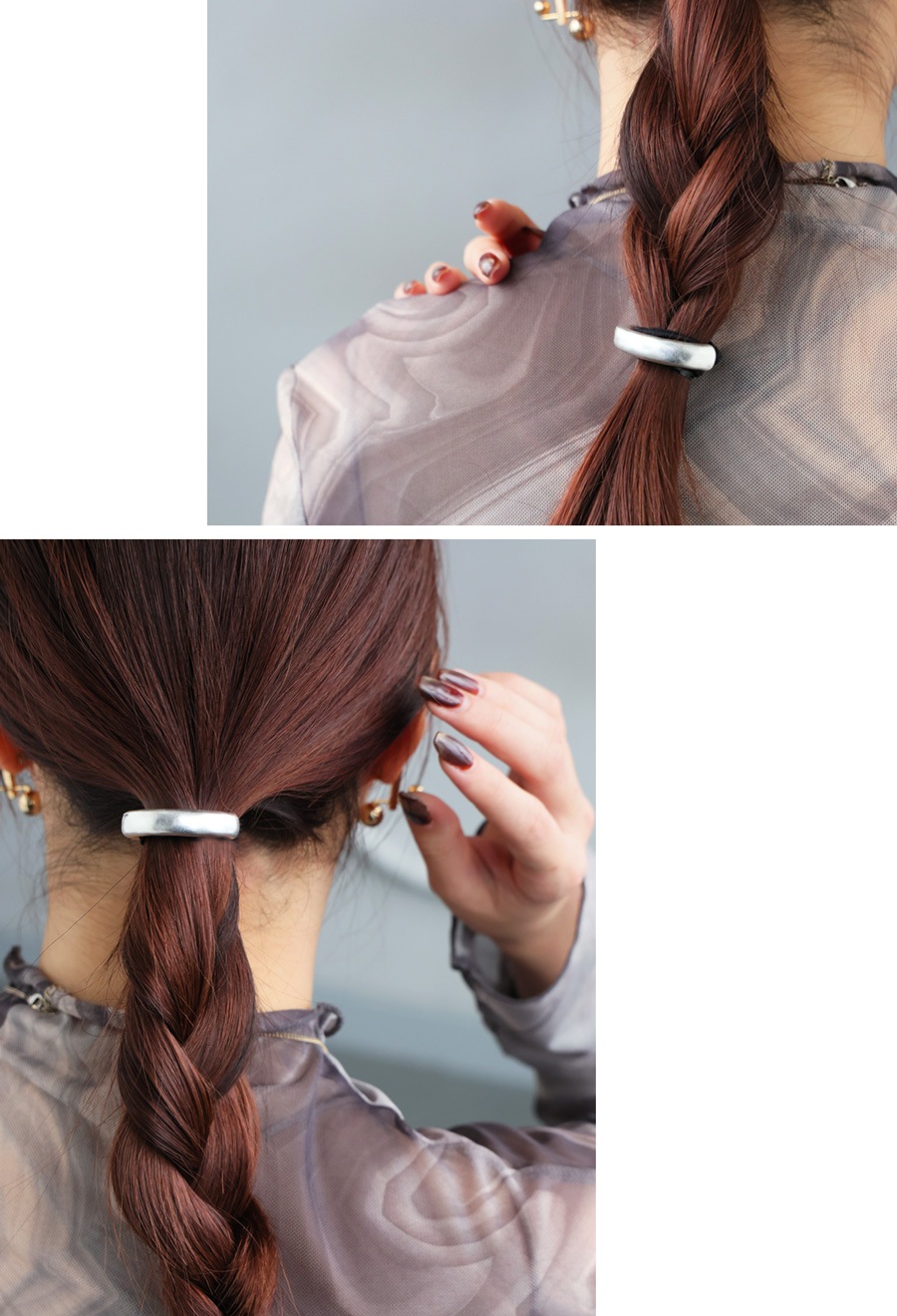 アーチ状の形状が髪に立体感を与えるヘアゴム(ヘアーカフ)です。