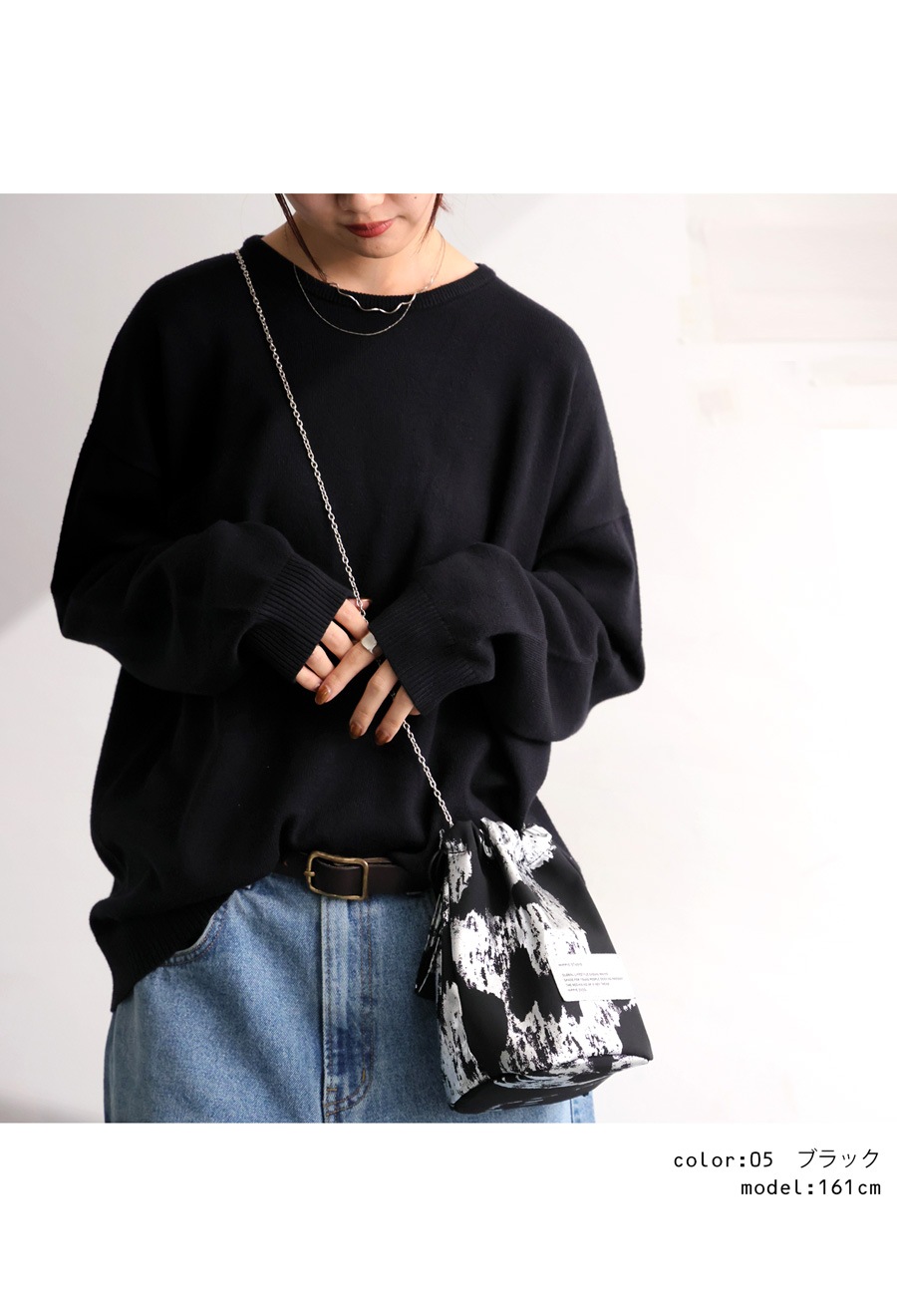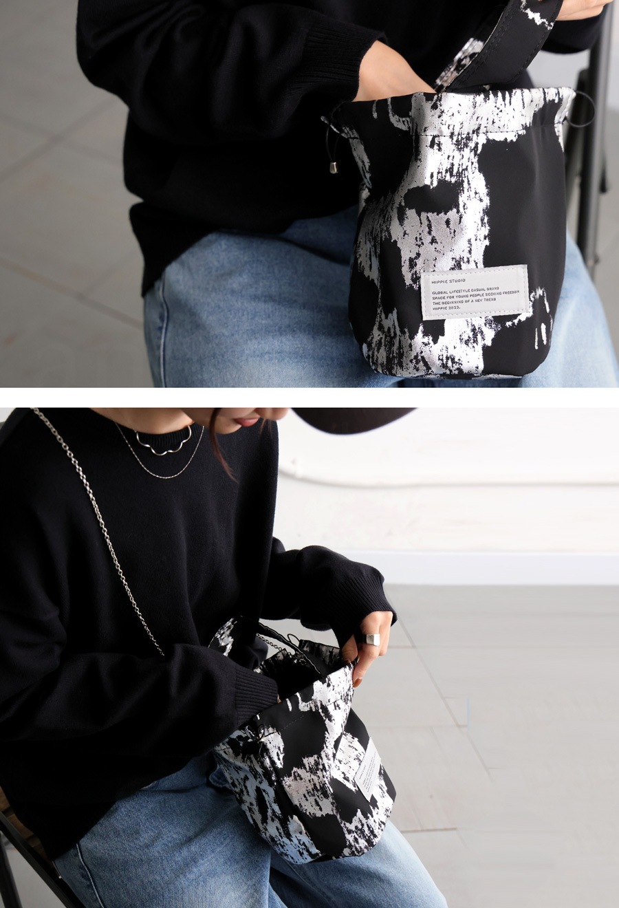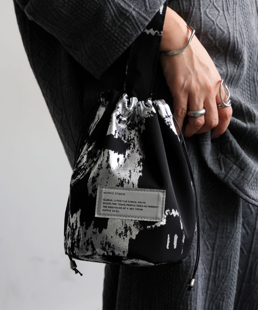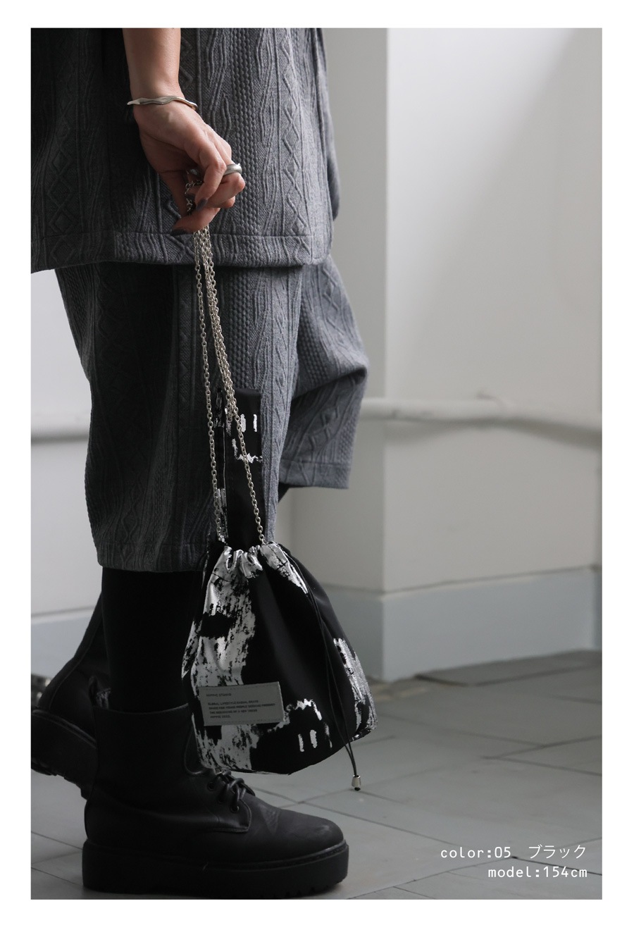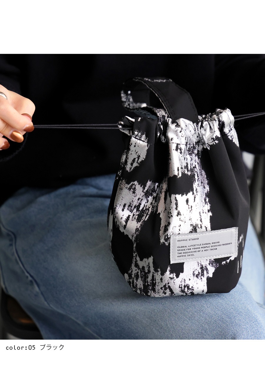 モノトーンのアート柄が視線を惹きつける巾着バッグです。