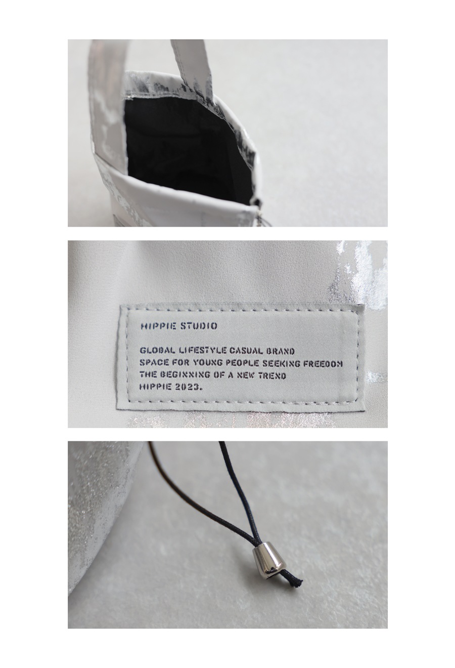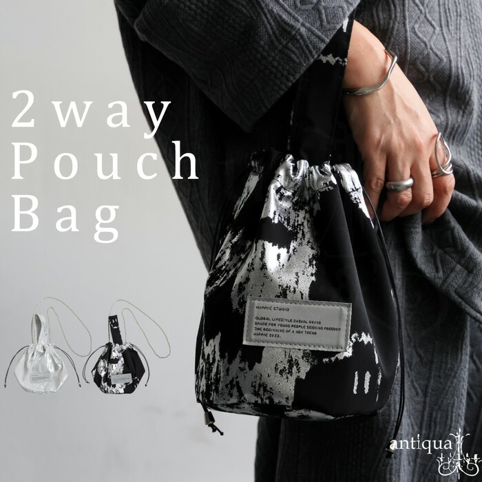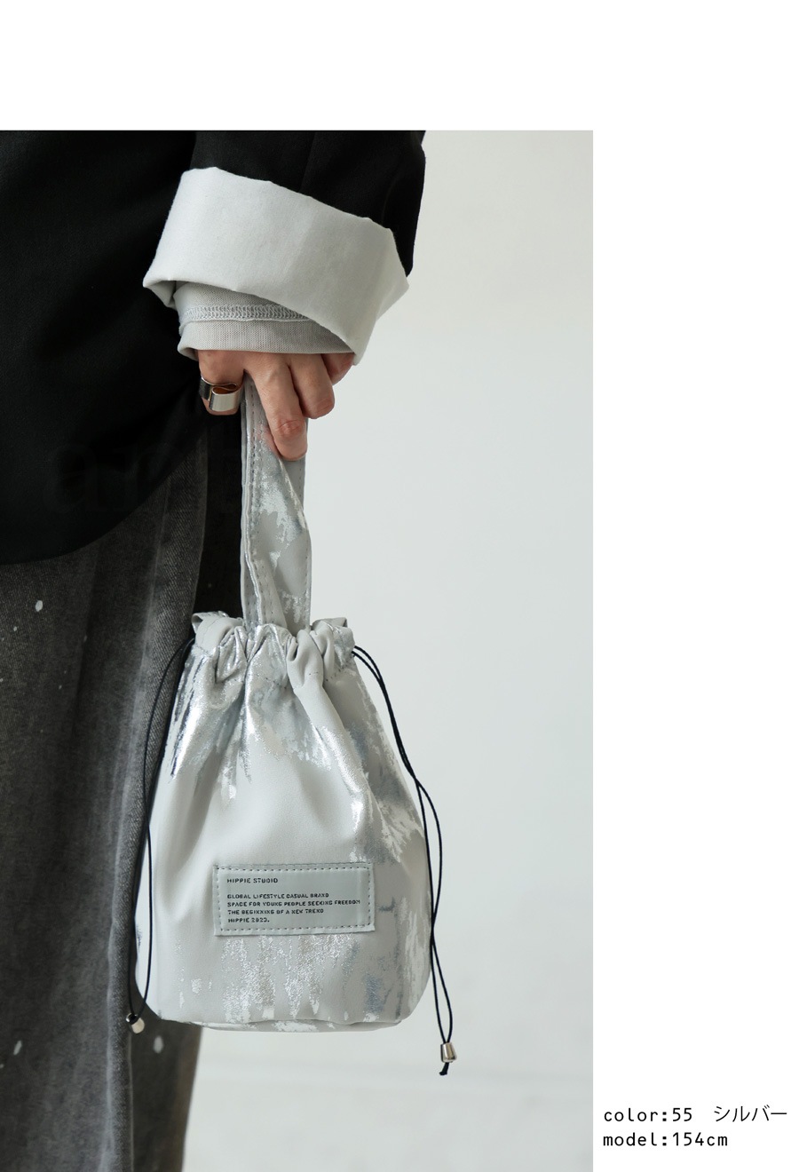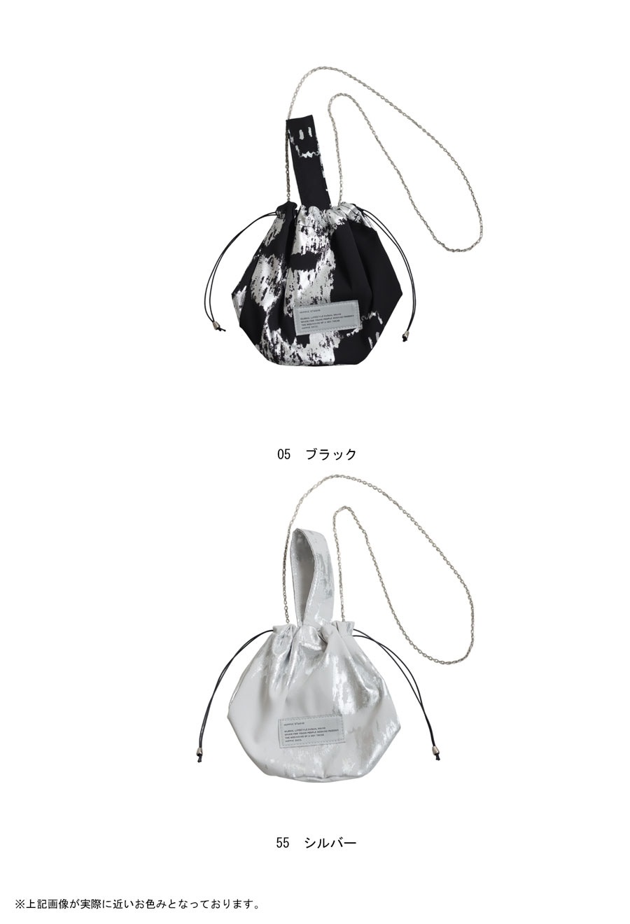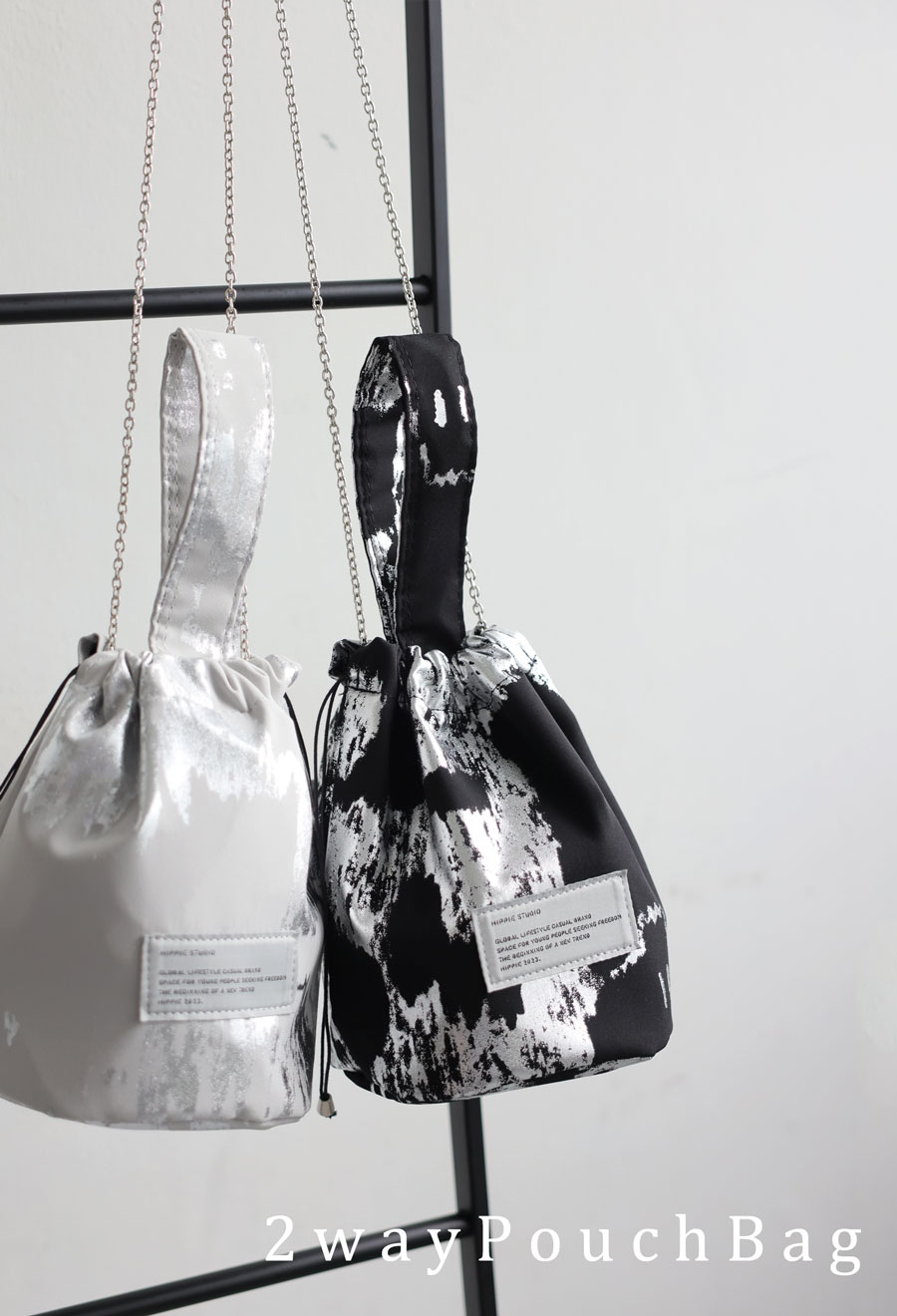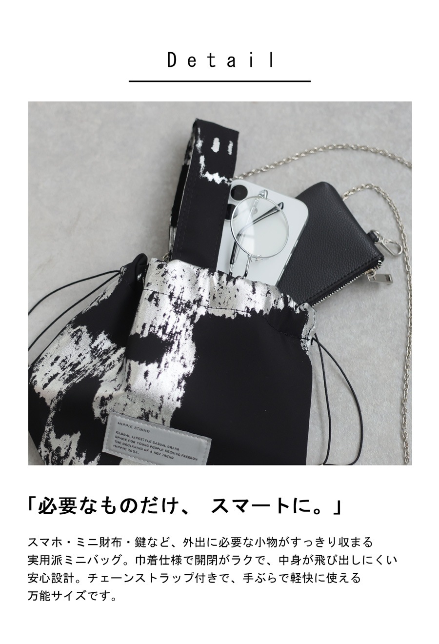 モノトーンのアート柄が視線を惹きつける巾着バッグです。