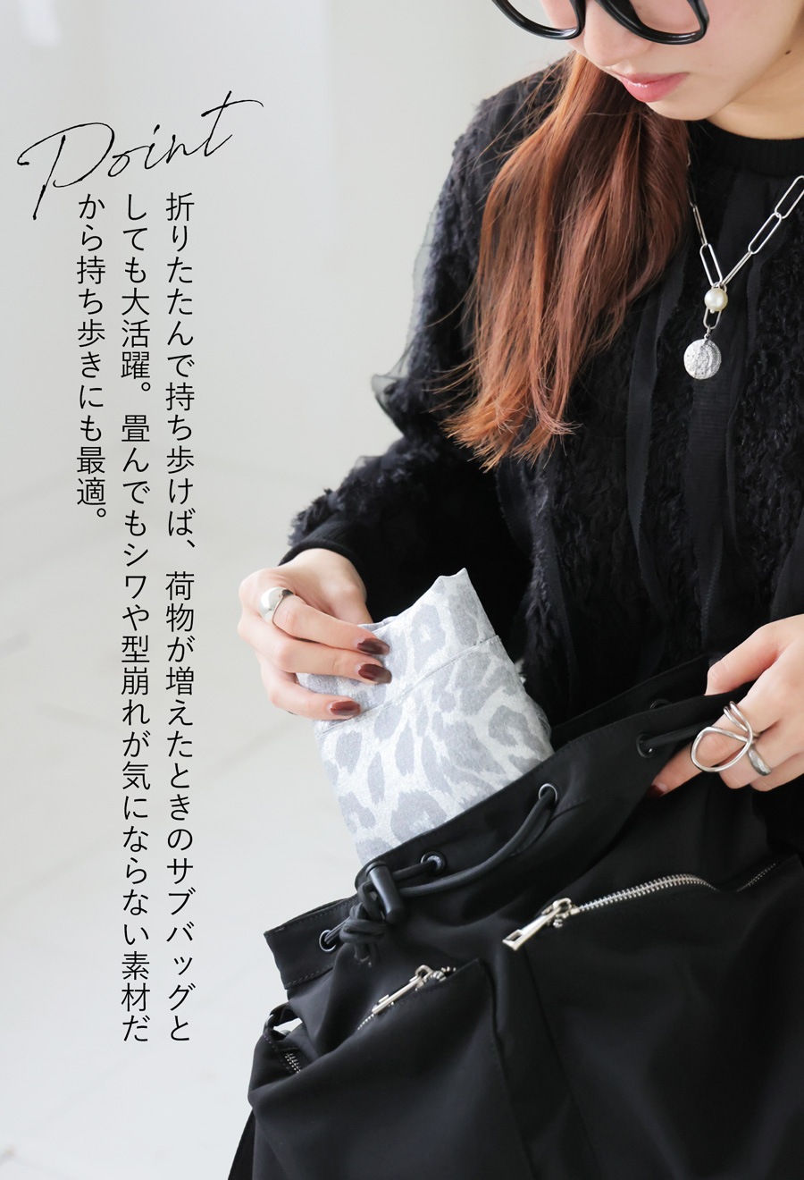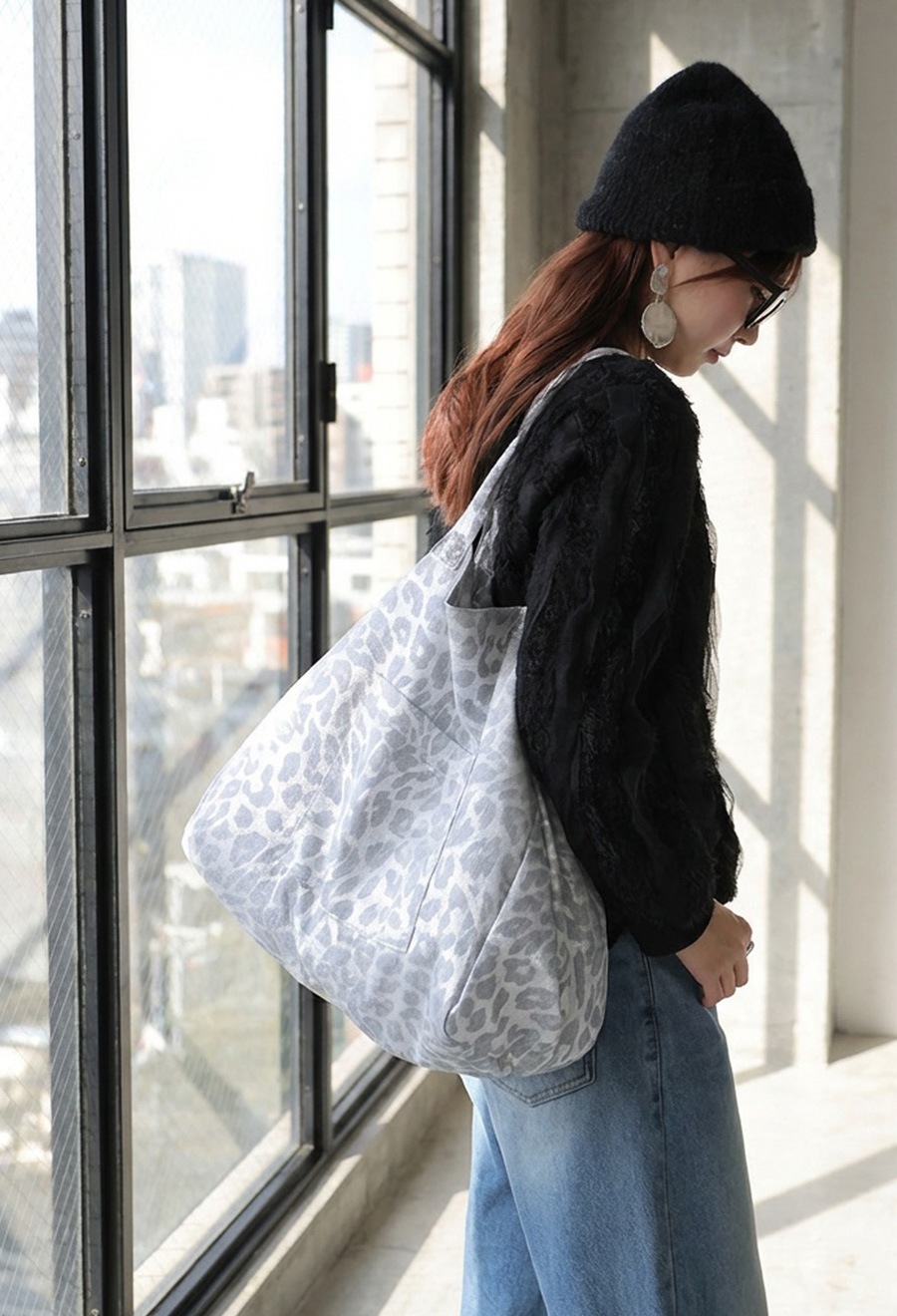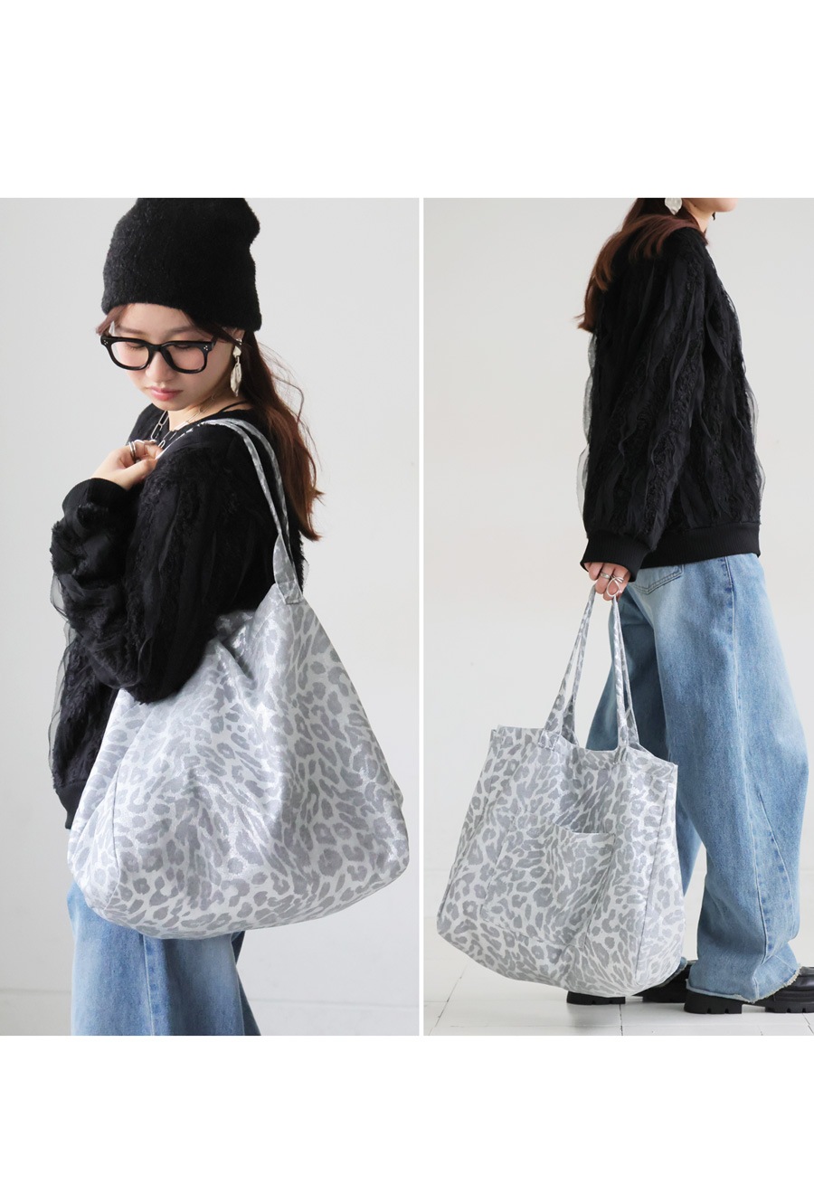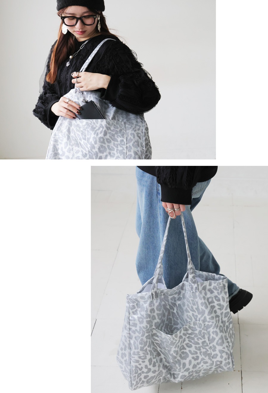 淡い光沢が魅力のレオパード柄が上品な印象を添える、大人顔のトートバッグです。