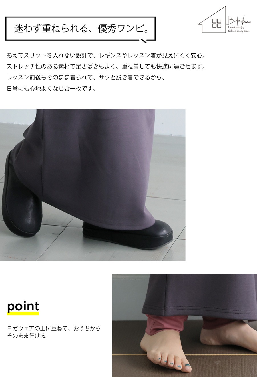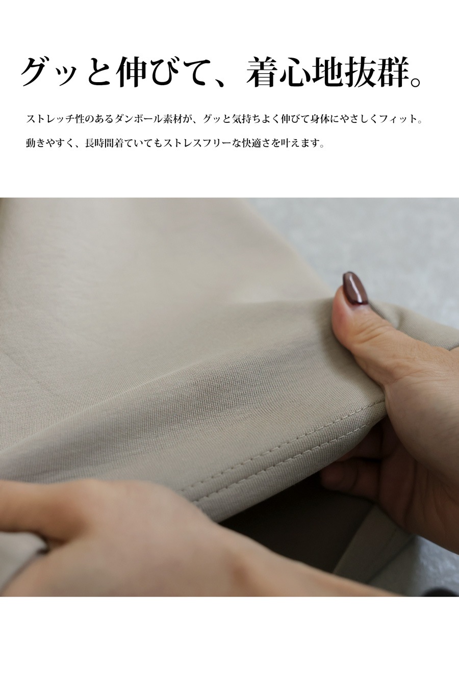 シワになりにくく動きやすいため、日常使いはもちろんレッスンやワンマイルウェアとしても活躍します。