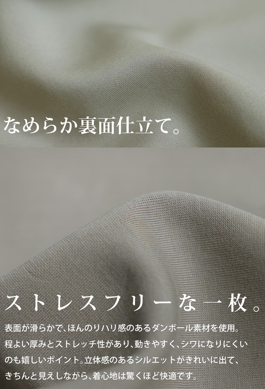 柄のない無地のためコーディネートしやすく、ゆったりとした形状で体型カバーも叶えます。