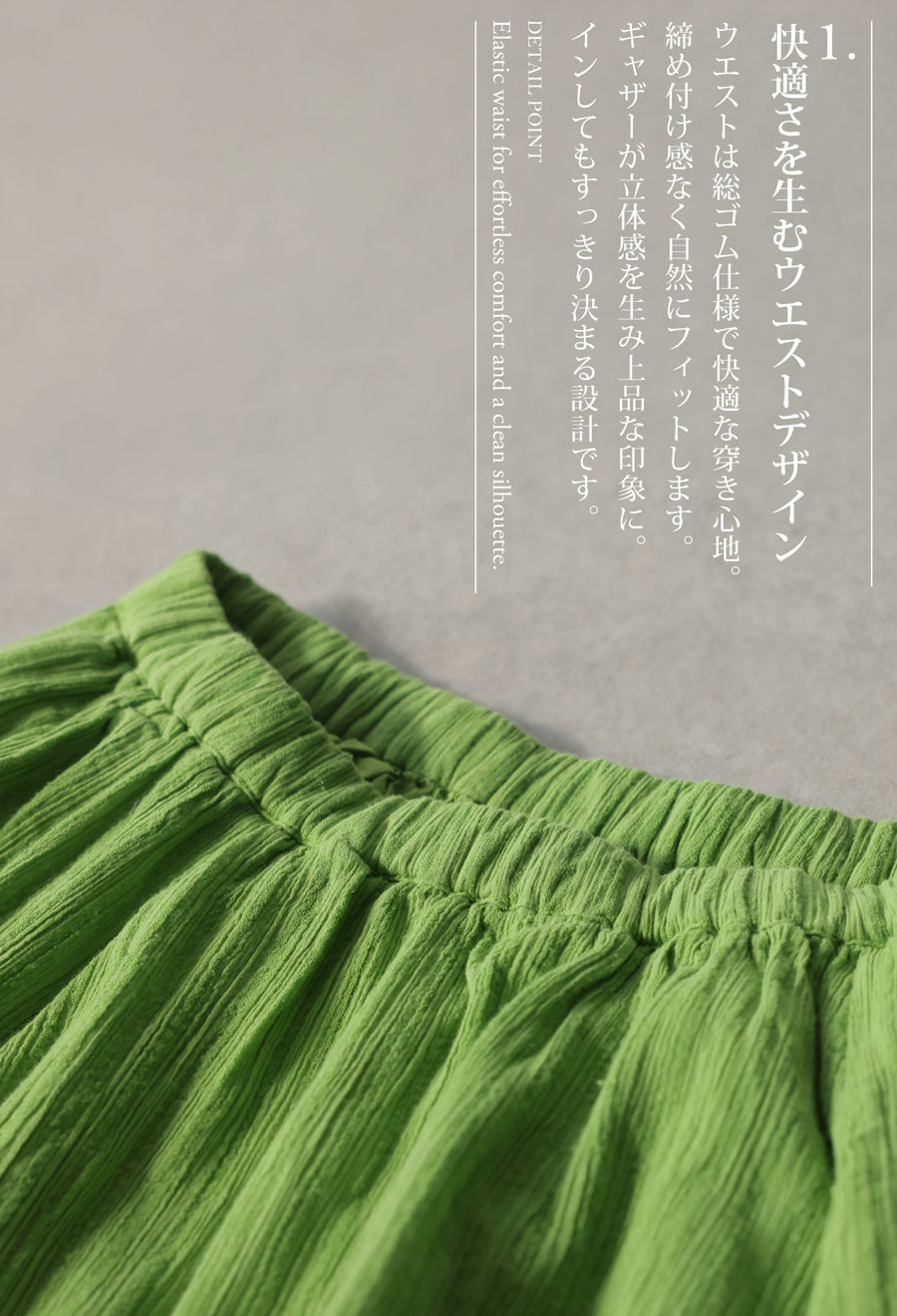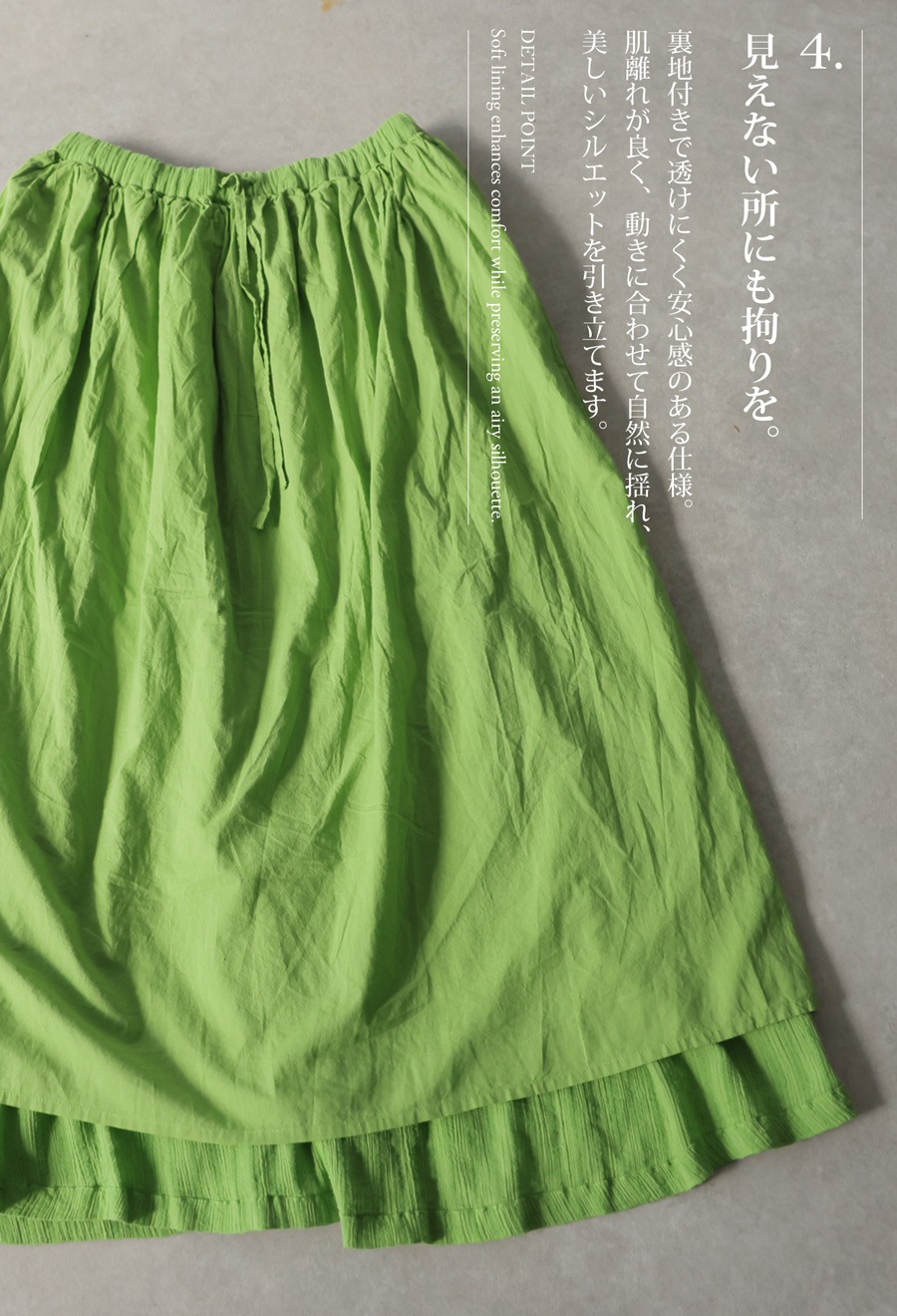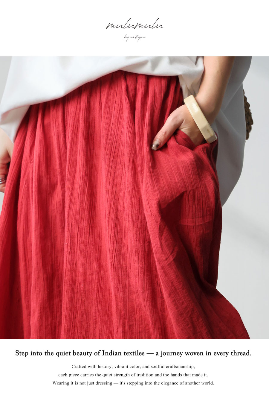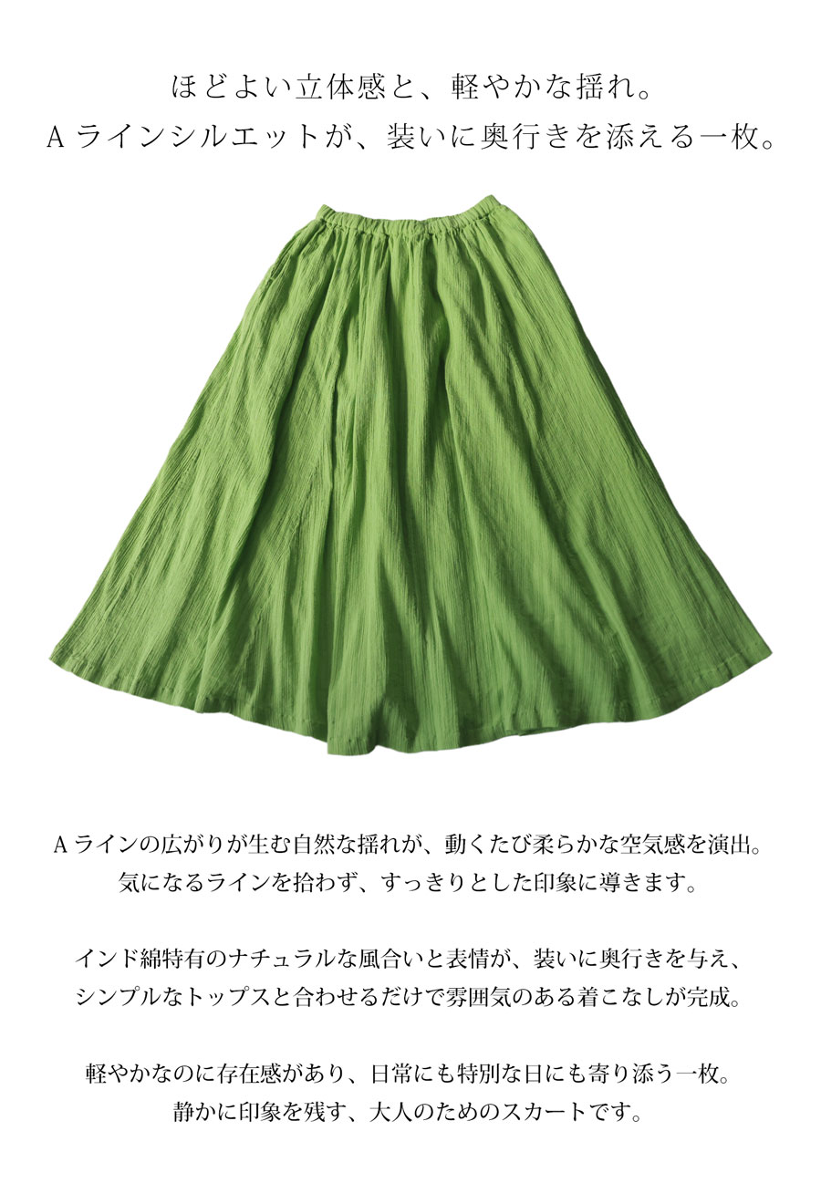 インド綿(コットン)100%の風合いが魅力のクレープドビースカートです。