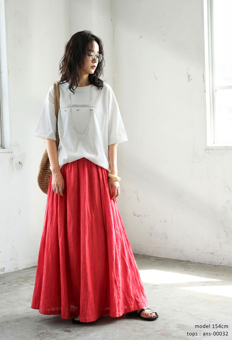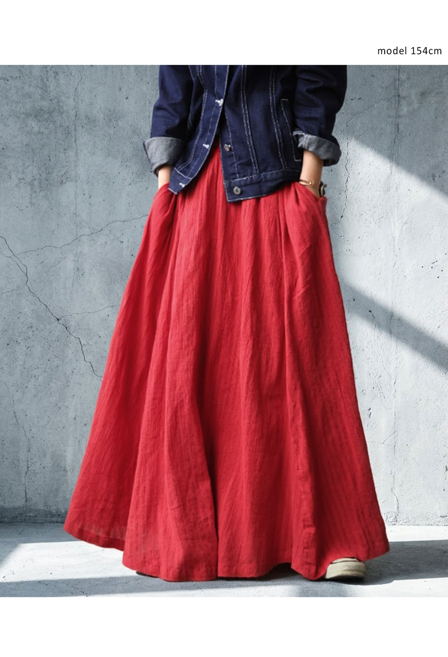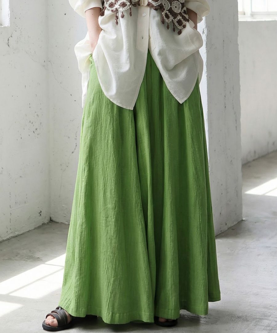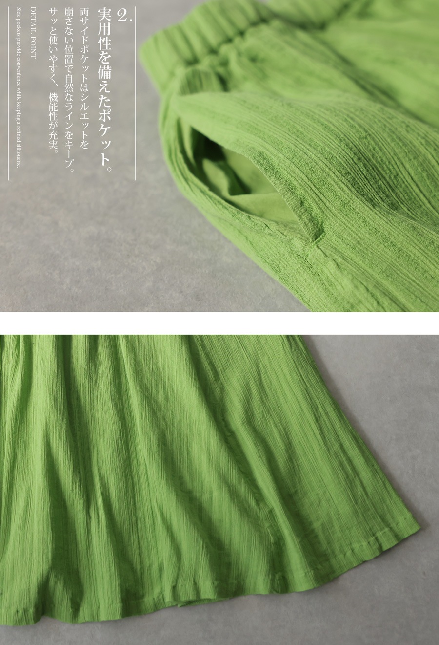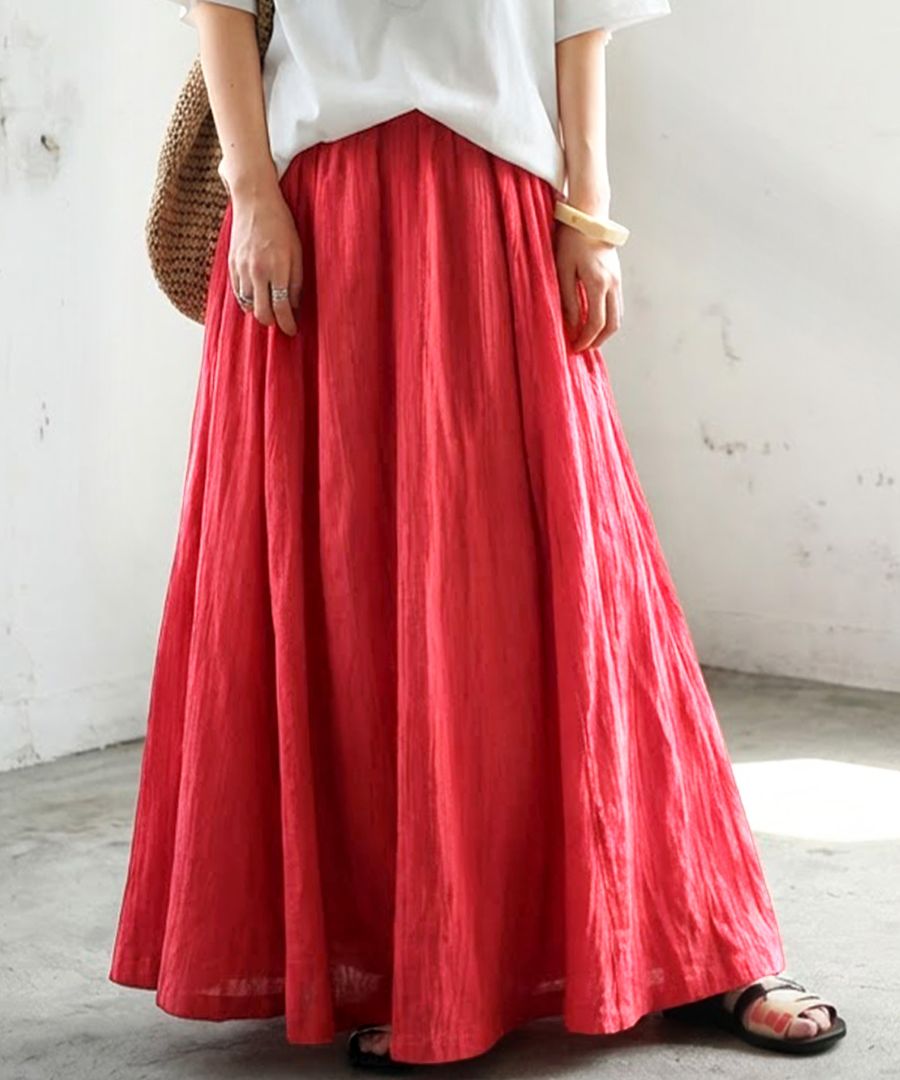 インド綿(コットン)100%の風合いが魅力のクレープドビースカートです。