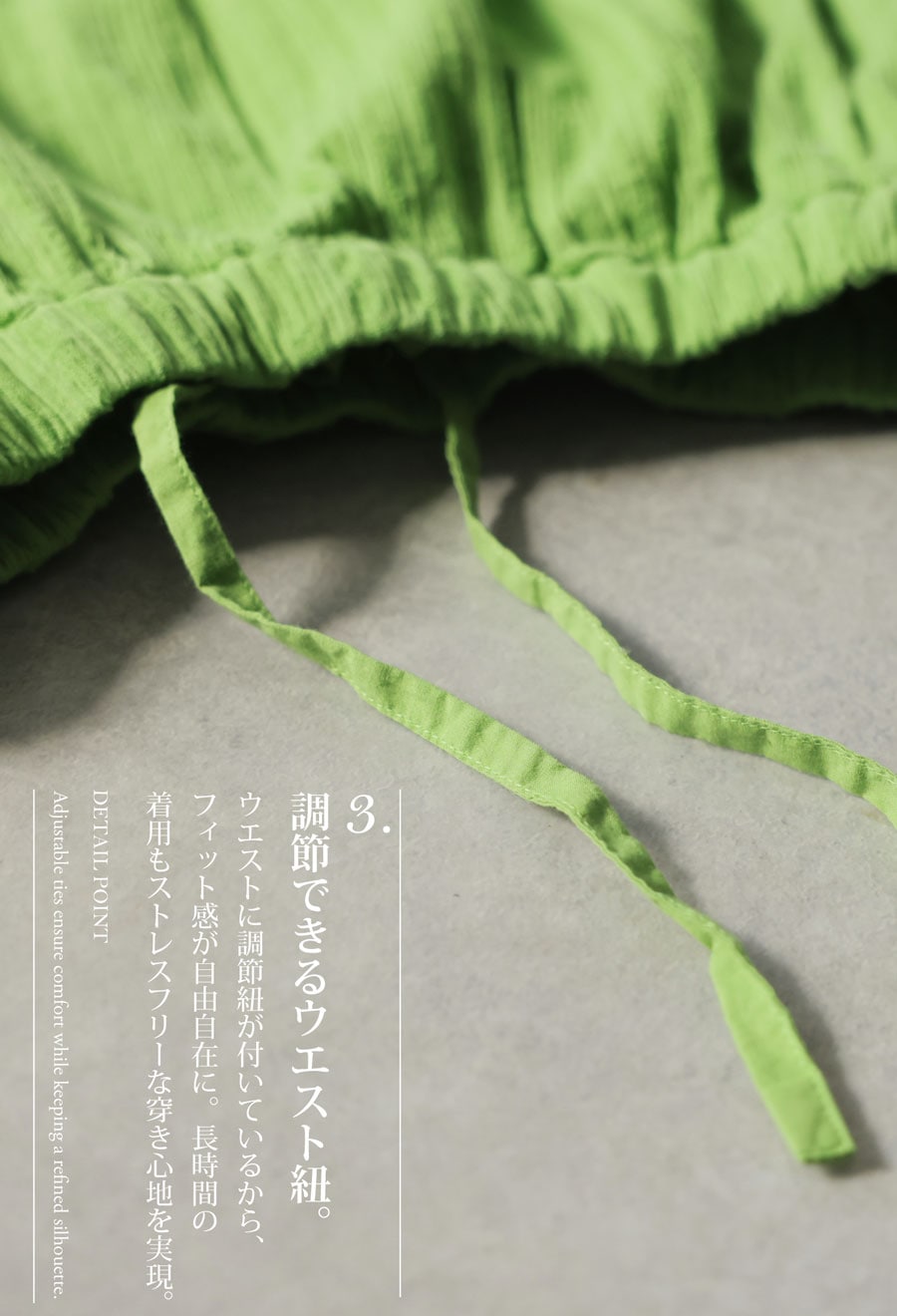 ウエストは総ゴム仕様で、内側の紐でサイズ調整が可能なイージーデザインです。