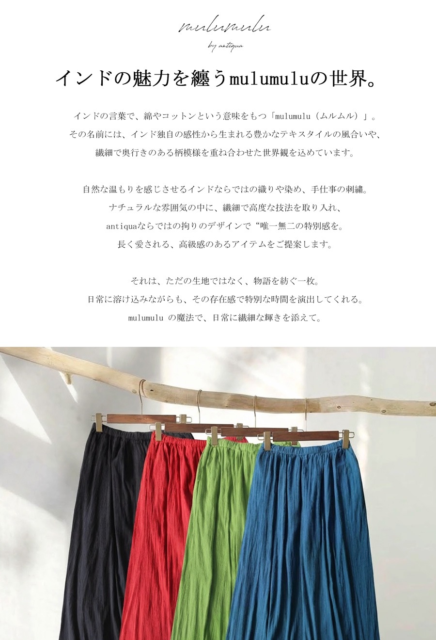 インドの伝統を感じる繊細な風合い、手仕事の刺繍にフォーカスを当てたantiqua発のブランド『mulumulu(ムルムル)』