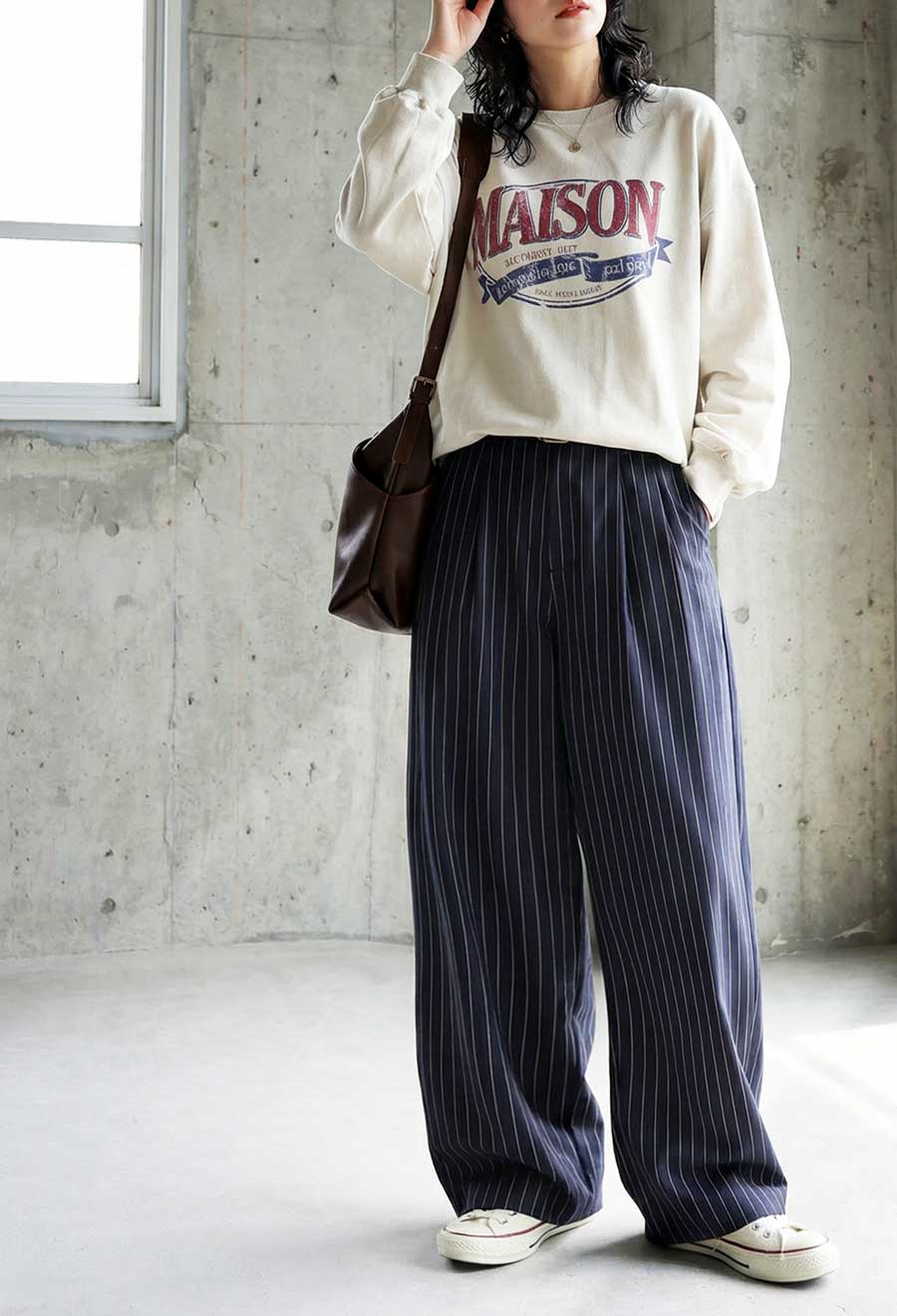 ポケット付きで実用性もあり、イージーパンツ感覚で気負わず穿けるのも嬉しいポイント。