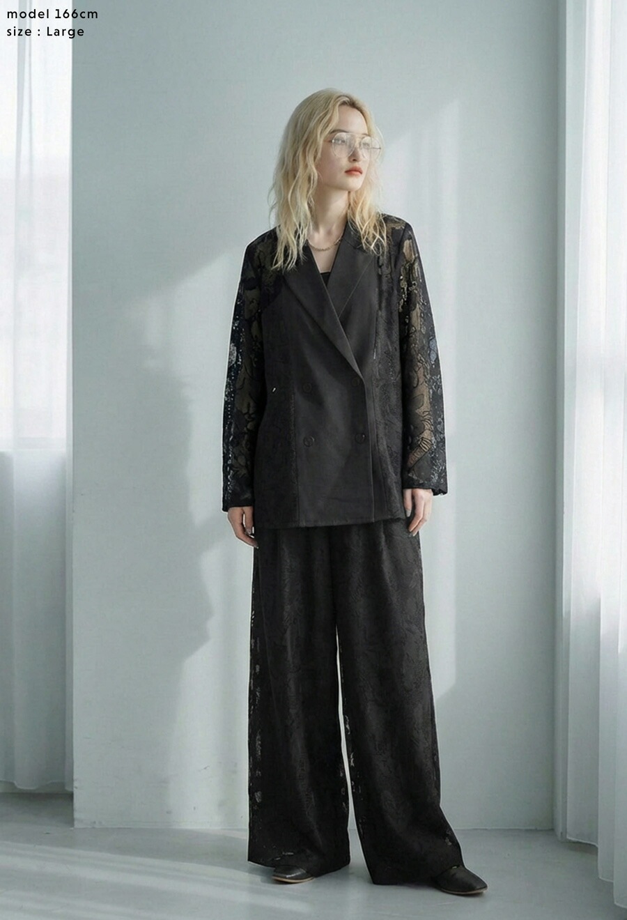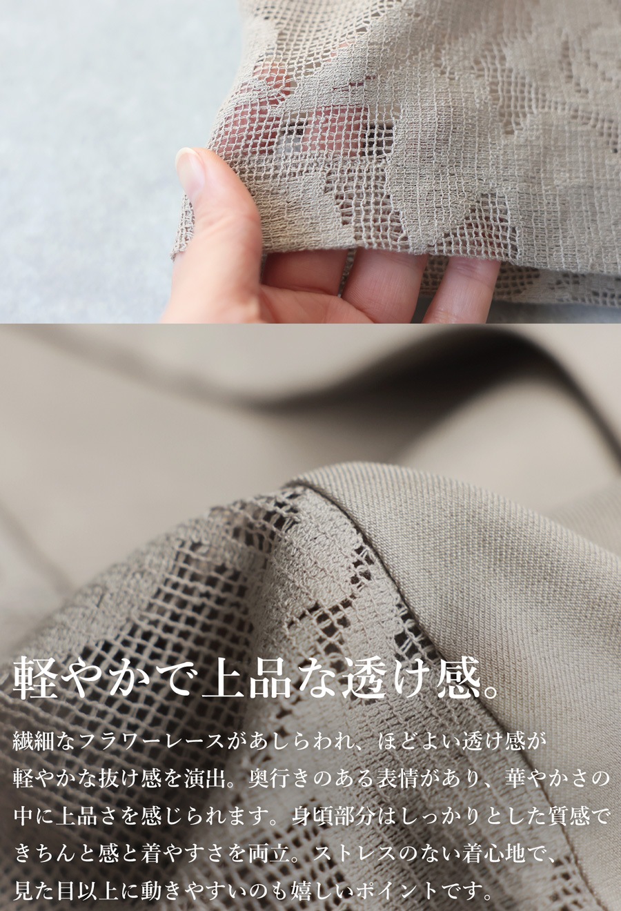 柄は繊細なフラワー(花柄)レースで、甘くなりすぎずモード感を添える絶妙なバランスに仕上げました。