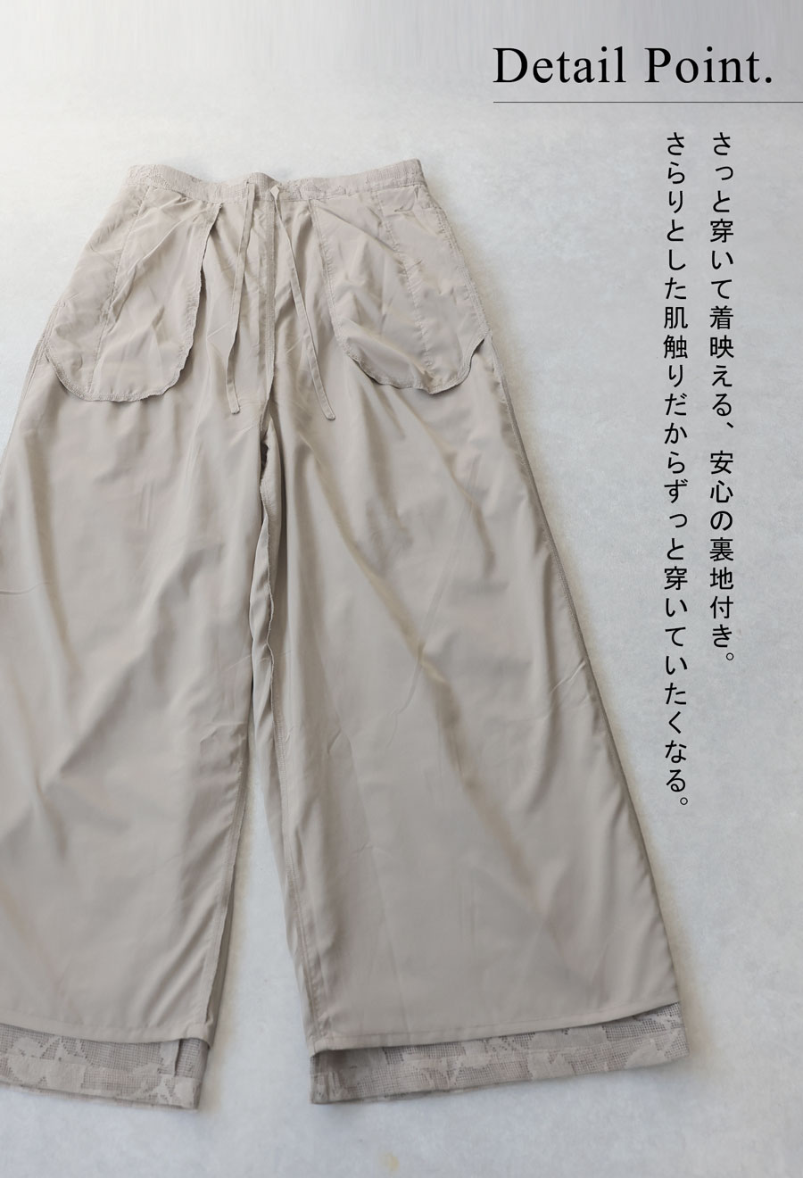 花柄レース ワイドパンツ レディース ロング 裏地付き 送料無料・メール便不可