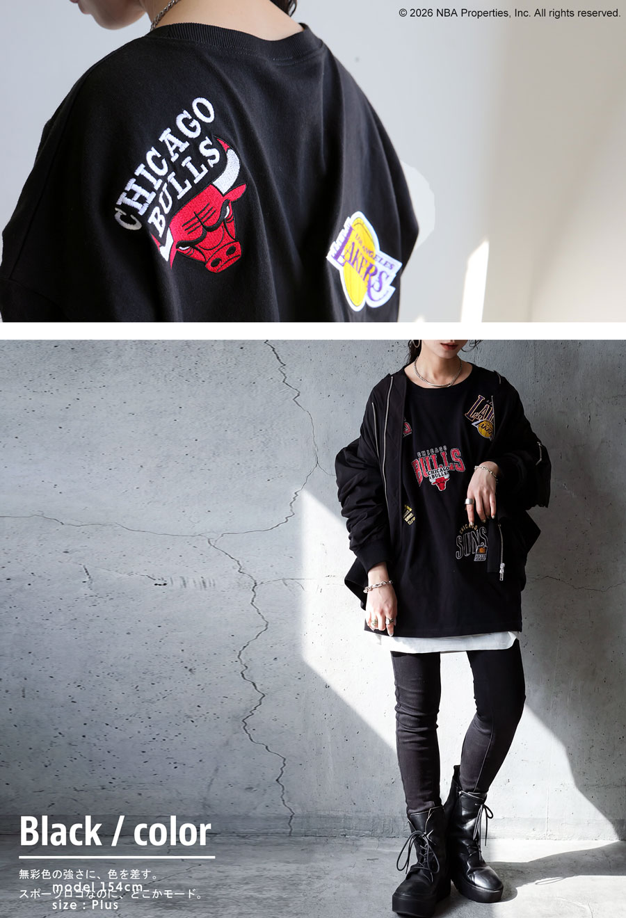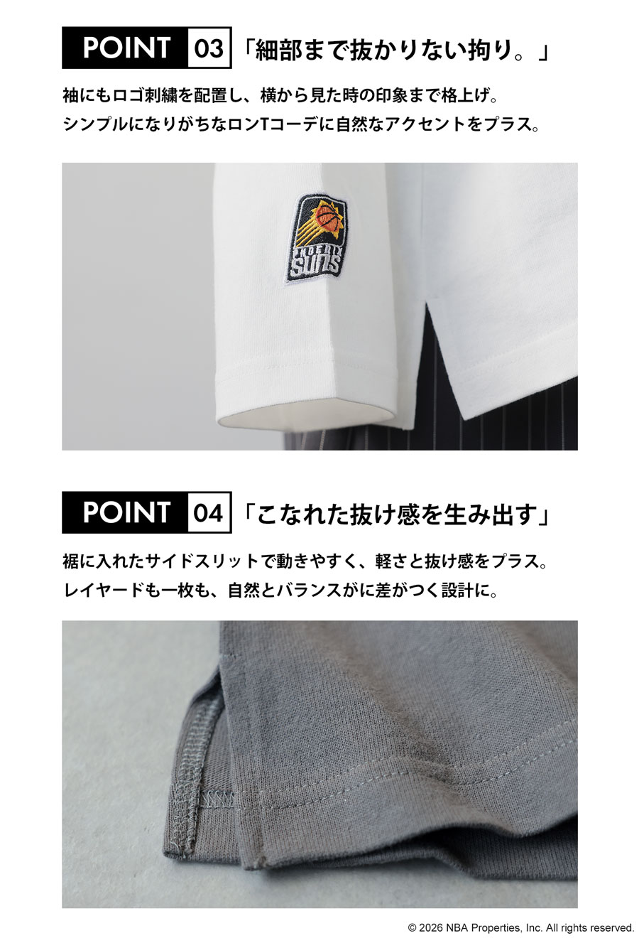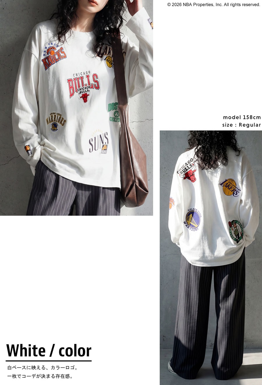 NBA公式 ロゴ刺繍 ロンT レディース クルーネック 送料無料・メール便不可