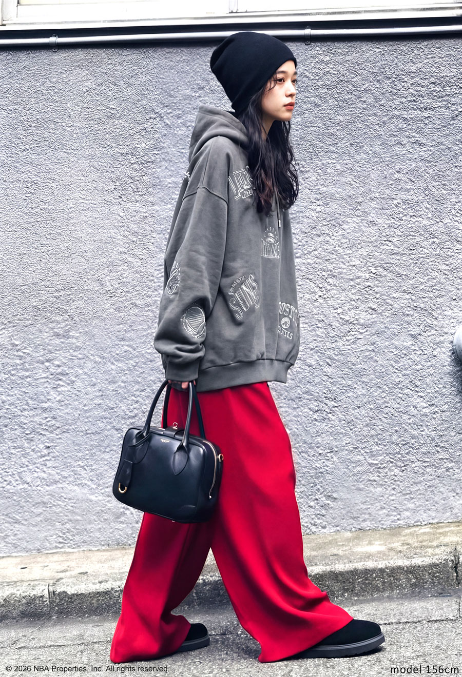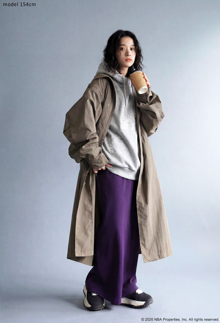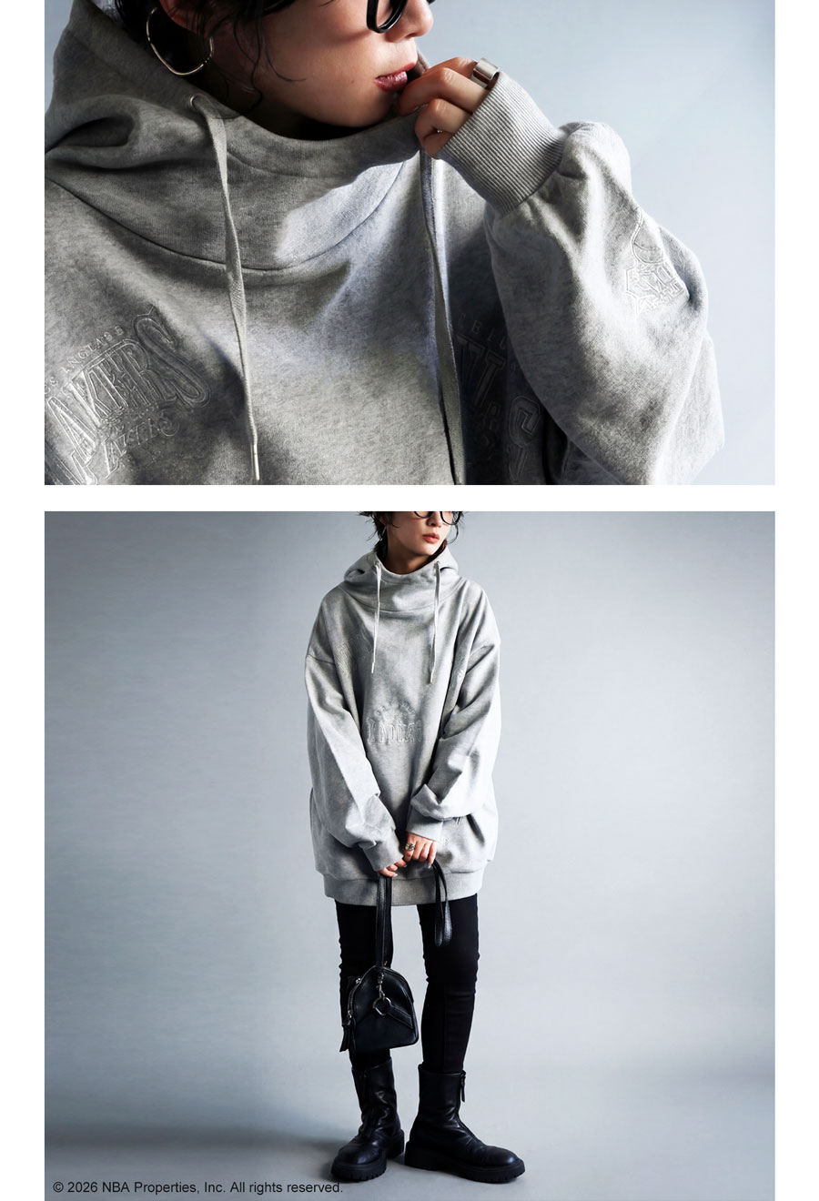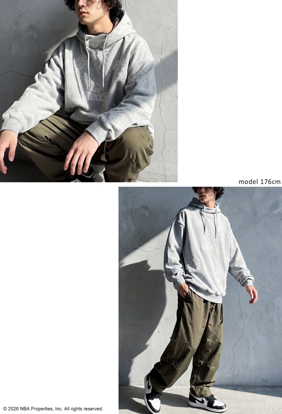 丈感はヒップまで隠れる長め設定で、ドロップショルダーとオーバーサイズの形状が体型カバーを叶えつつ、こなれたストリート感を演出します。