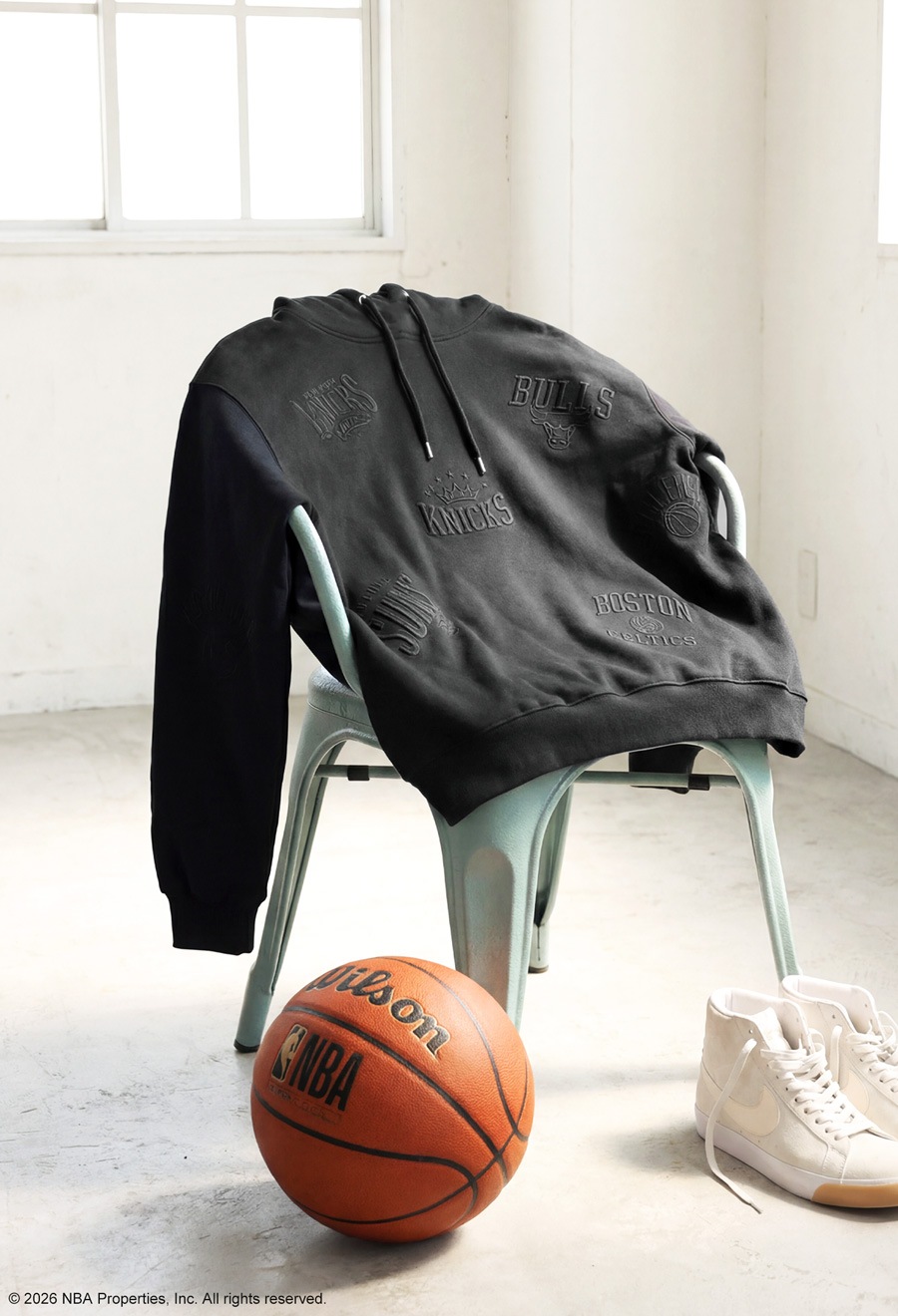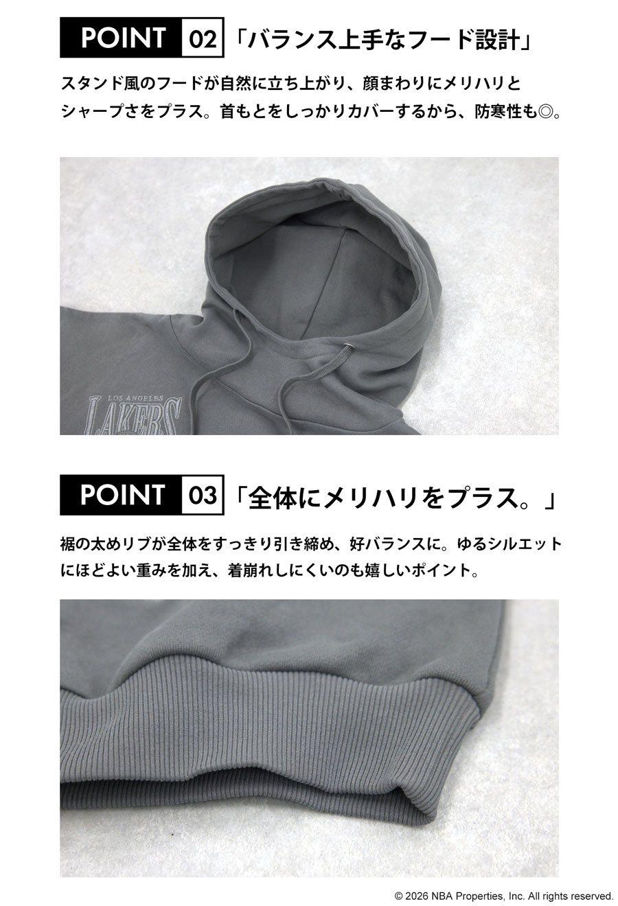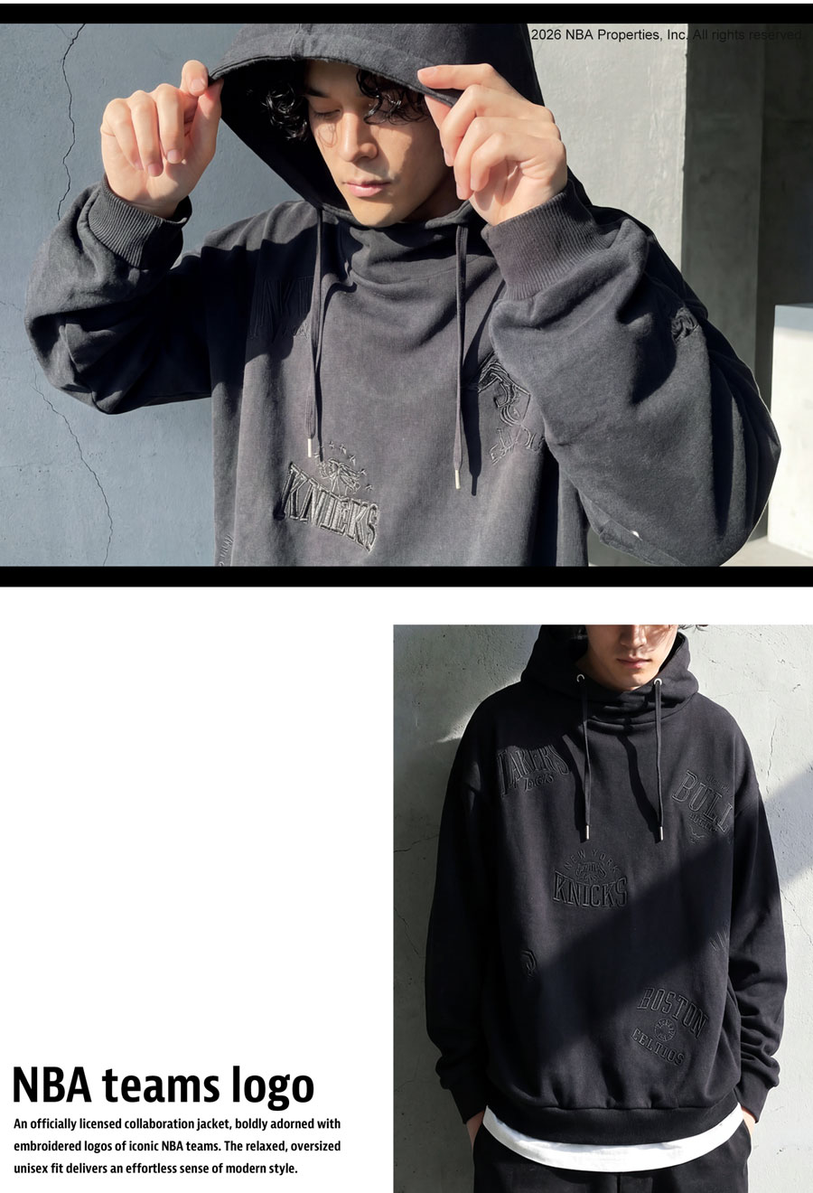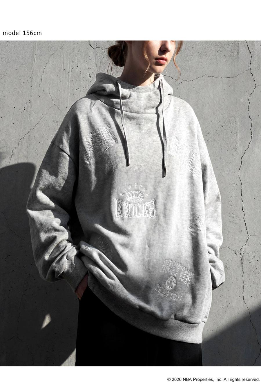 NBA公式の刺繍ロゴが存在感を放つ、綿100%(コットン)の裏毛スウェットパーカーです。