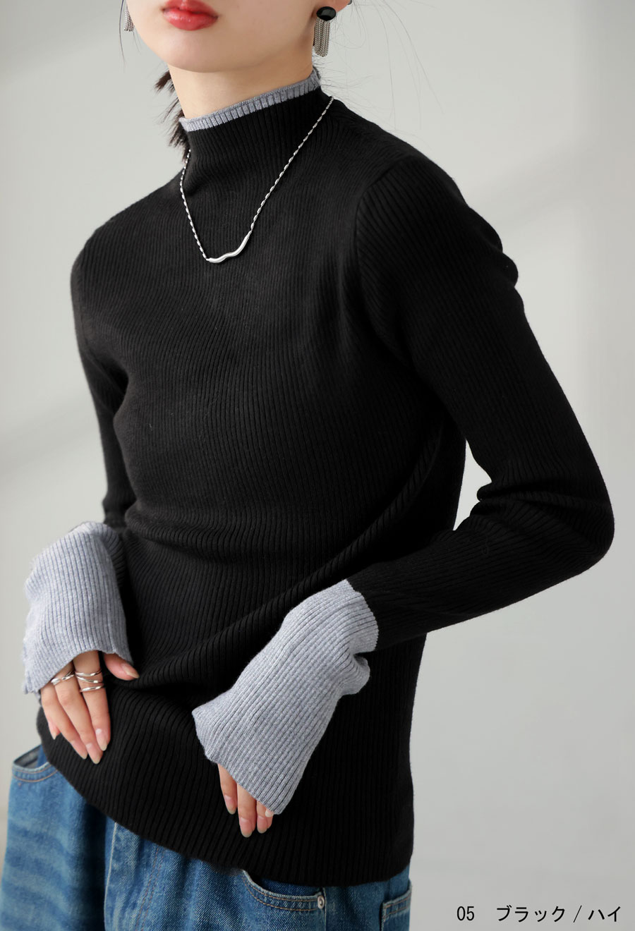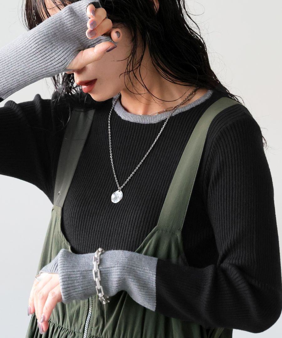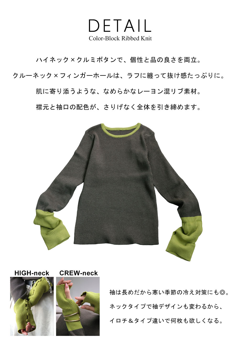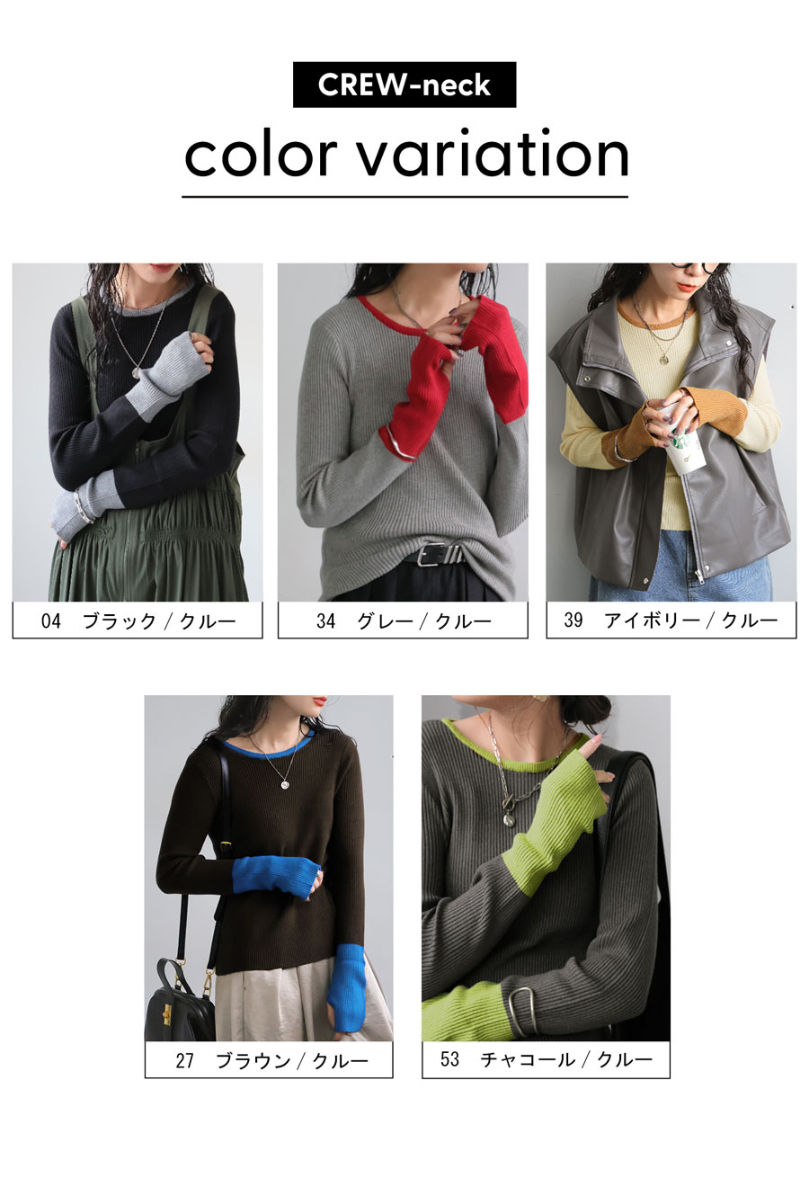 配色リブニット トップス レディース 長袖 2タイプ展開・再入荷 (100)メール便可