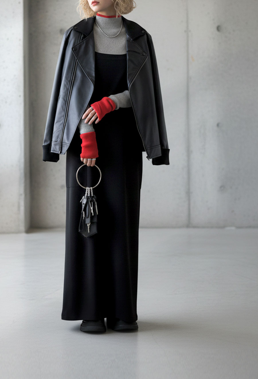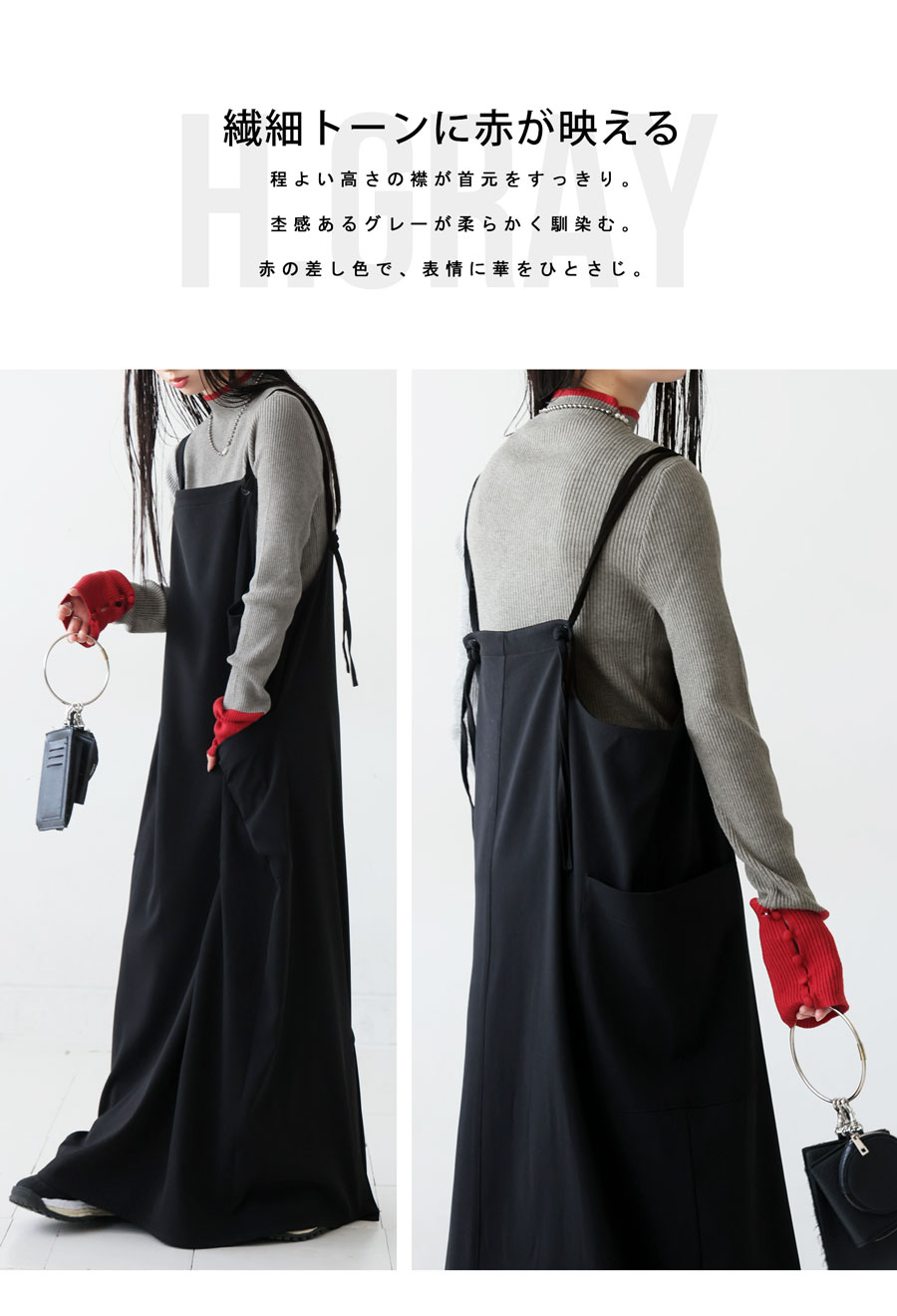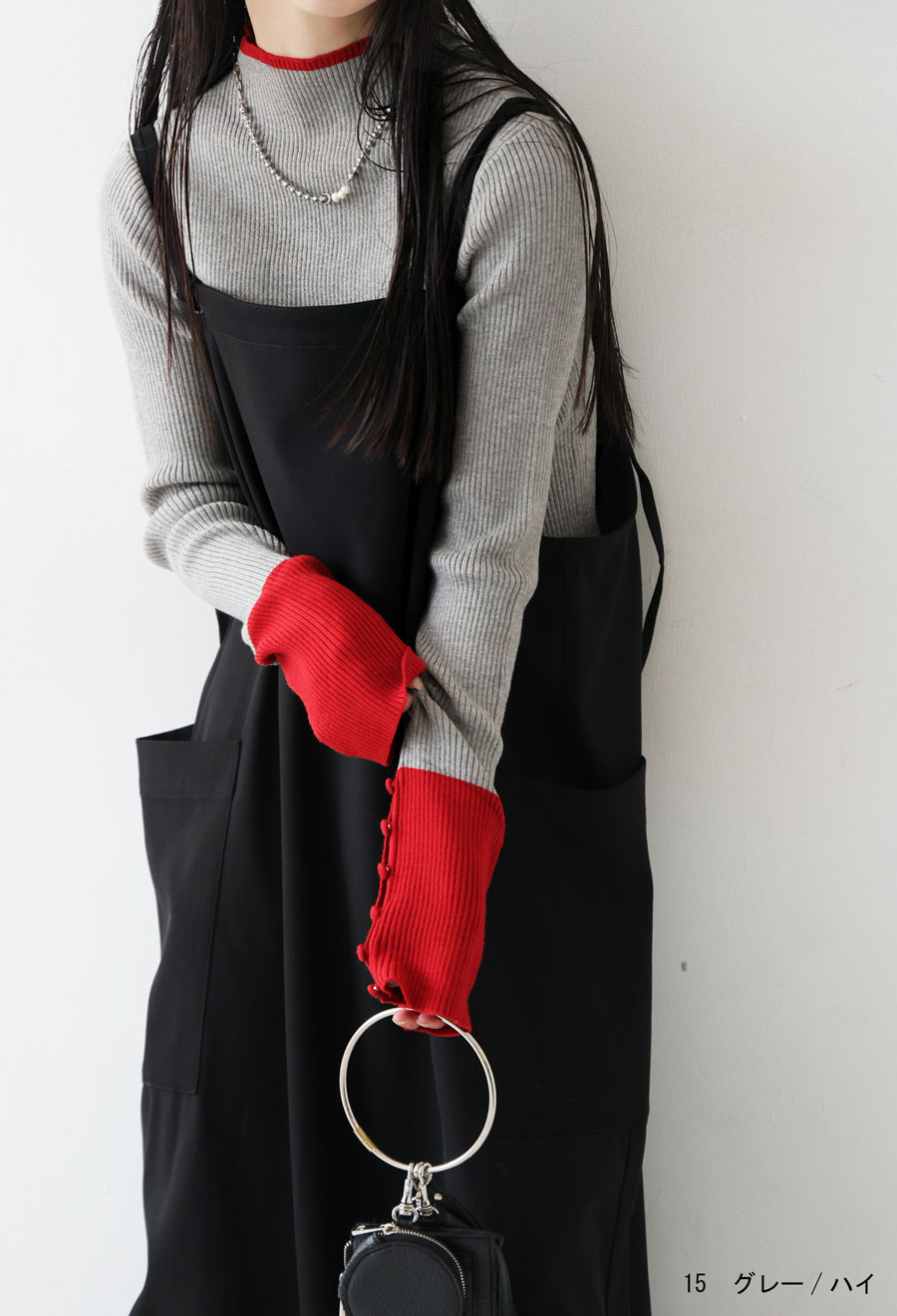 丈感は腰にかかる長さで、身体に優しく沿うリブ編みの形状が美しいシルエットを演出します。