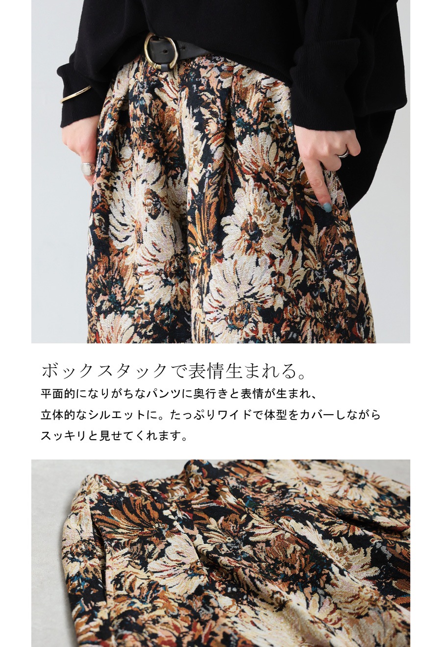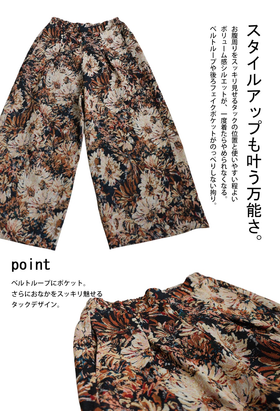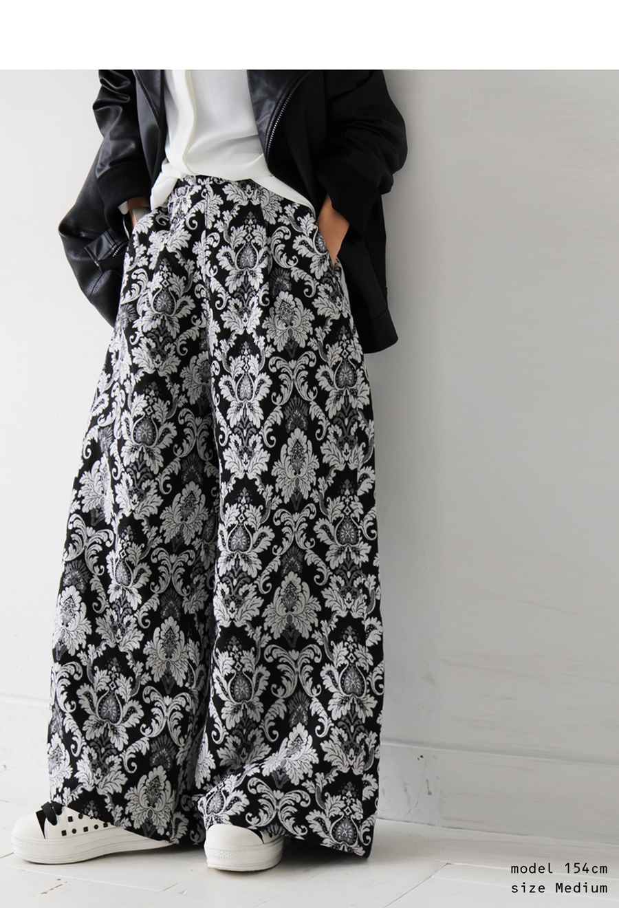 大柄 ジャガード ワイドパンツ レディース ロング 送料無料・再入荷 メール便不可